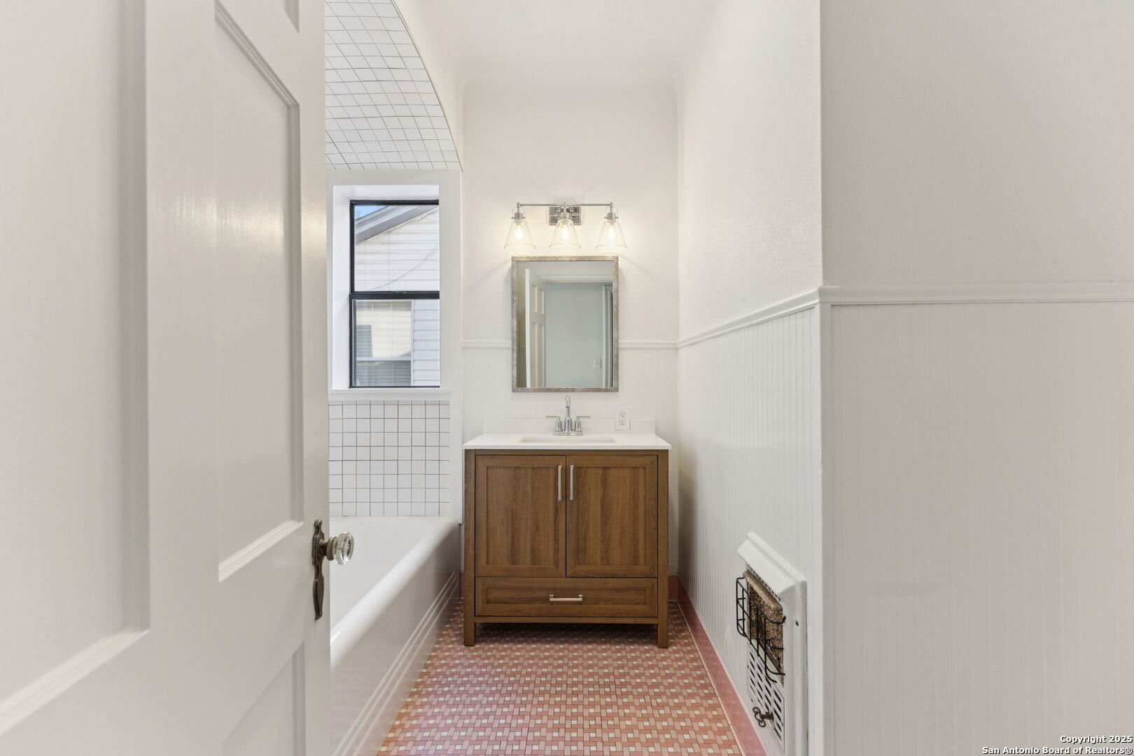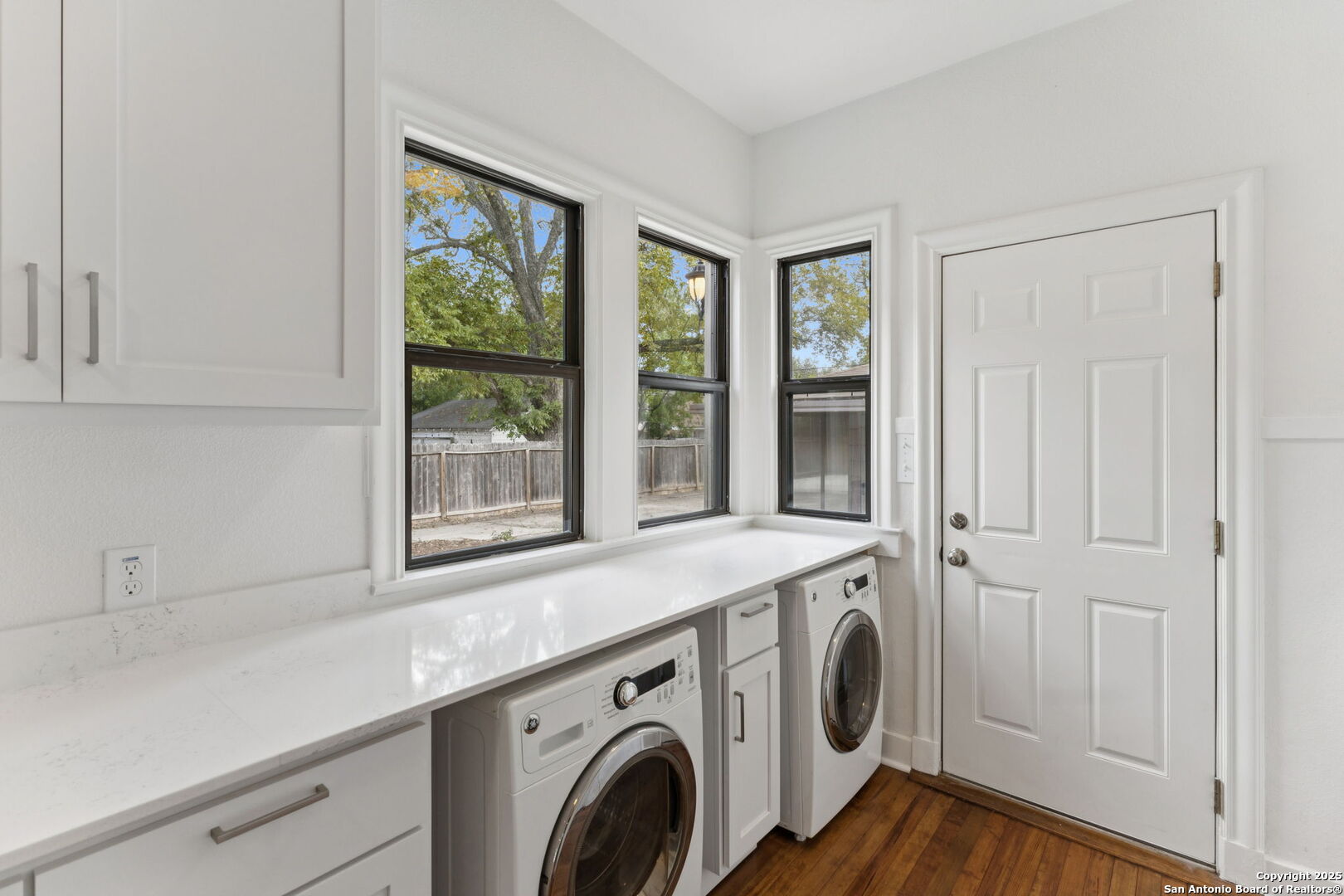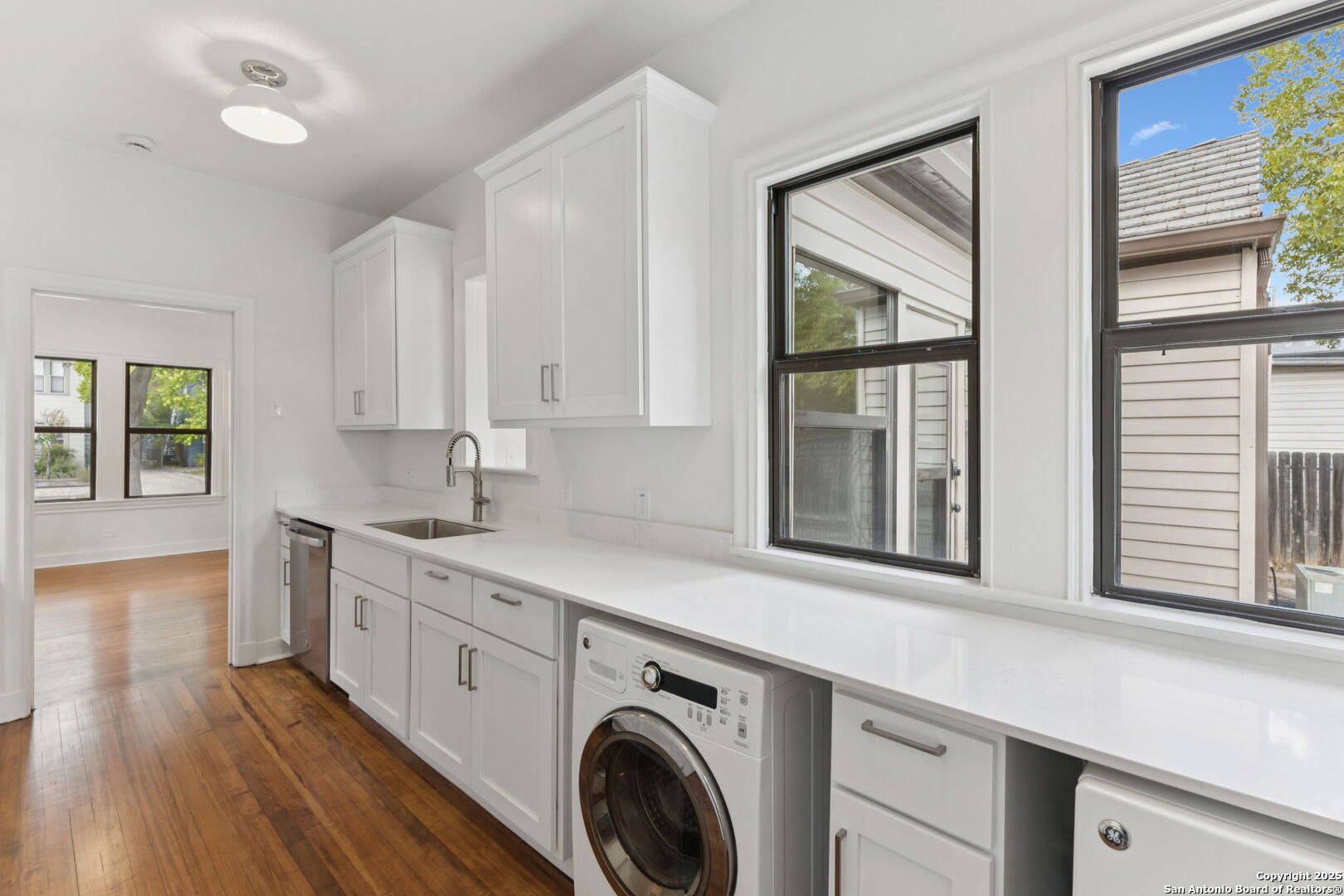 Welcome to this beautifully updated 2 bedroom, 1 bath home offering 1,295 square feet of character and charm. Built in the 1934, this residence blends original details with thoughtful upgrades. Step inside to find original hardwood floors throughout and plaster walls that gently curve into the ceiling, showcasing the craftsmanship of a bygone era. Double pane windows allow abundant natural light to fill every room. The inviting living room features a cozy fireplace and flows seamlessly into the separate dining room. The kitchen features custom cabinetry and cleverly integrated under counter laundry to maximize space and efficiency without compromising on style. Outside, this home sits on a generously sized lot with multiple spaces designed for entertaining, including a screened-in gazebo. The backyard is a true blank canvas, ready for a garage, a casita, a pool, or all three. There's plenty of room to make it your own. Located conveniently in Monte Vista Terrace, just minutes from Highway 281 and I-10, making commutes and travels a breeze. Enjoy being able to walk to local boutiques, neighborhood restaurants and coffee shops, and just a short drive to downtown. Classic yet updated, this home offers the best of both worlds, vintage charm and modern comforts.