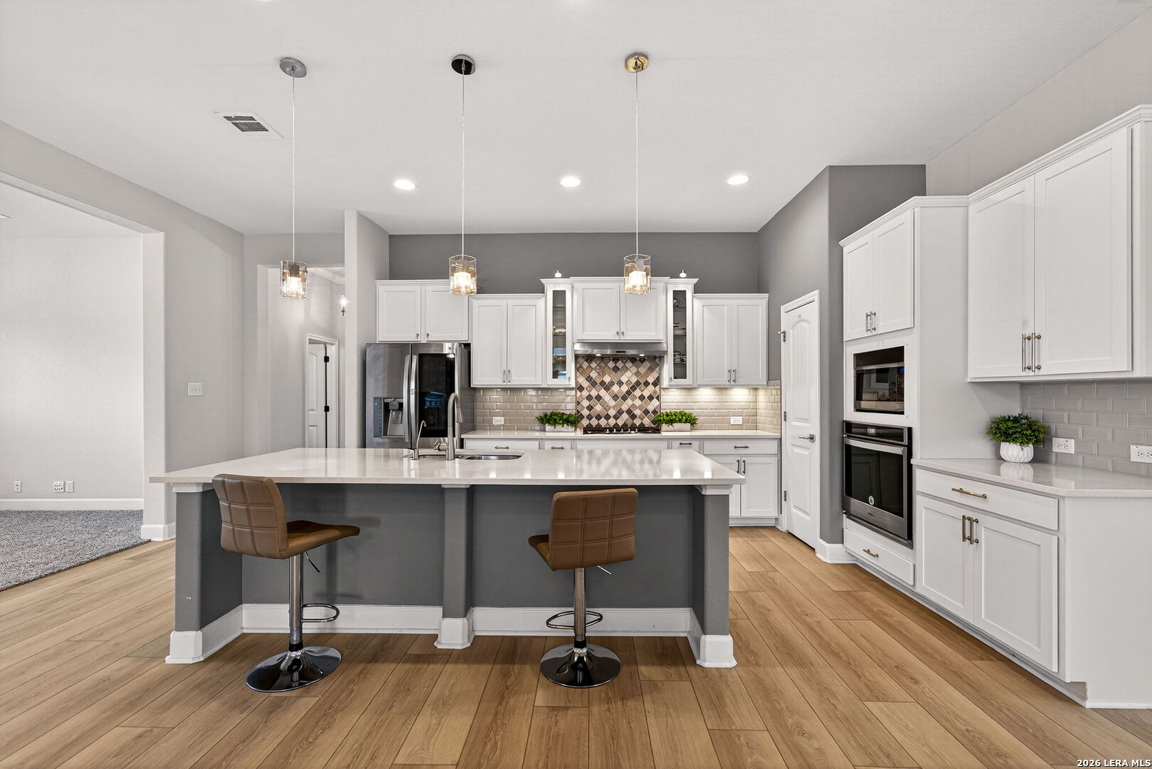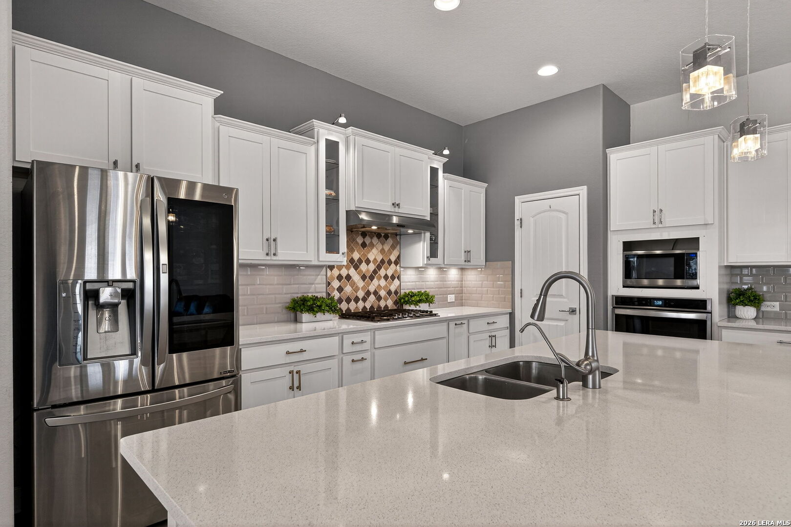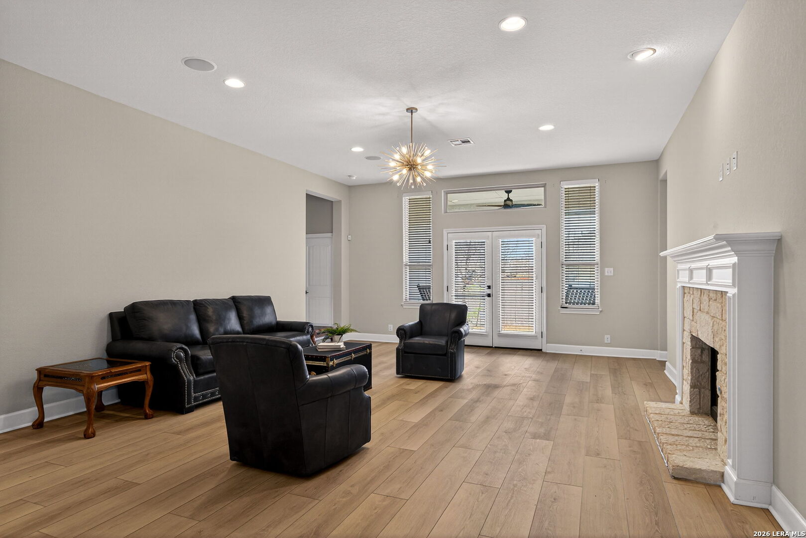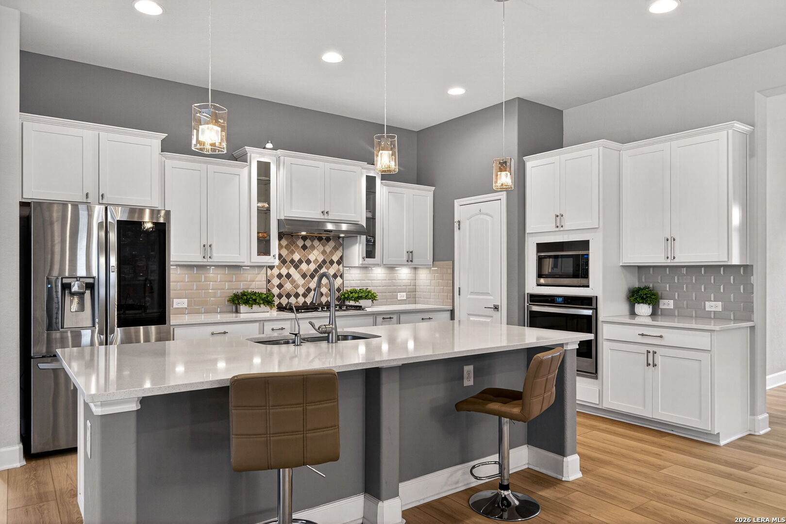 Welcome to 122 Noble Woods, an exquisitely upgraded Ashton Woods home nestled in a private, gated community within the award-winning Boerne ISD. Backing to a serene greenbelt, this stunning single-story residence offers the perfect blend of luxury, comfort, and functionality-all just minutes from the charm of historic Downtown Boerne and everyday conveniences along Highway 46. This thoughtfully designed home boasts an open-concept layout with wood-look tile flooring throughout, creating a seamless flow for everyday living and entertaining. The gourmet kitchen is a showstopper, featuring quartz countertops, under-cabinet lighting, reverse osmosis system, and sleek modern finishes. The spacious living area is pre-wired for 5.1 surround sound, and a flexible secondary living room-currently used as a media room-adds versatility to the space. With four bedrooms and three full baths, this home includes a desirable en suite guest bedroom, ideal for multi-generational living or hosting overnight visitors. The upgraded laundry room offers built-in cabinetry and a utility sink for added convenience. Step outside to a flat, generously sized backyard offering privacy and space-perfect for gatherings, play, or peaceful relaxation. Enjoy a covered patio, epoxy-finished garage floors, RV and generator outlets, and thoughtfully placed outdoor plugs for holiday lighting. Additional features include a Pelican whole-home water softening system, gutters, and full front and back irrigation system. Located just minutes from Boerne schools, H-E-B, shopping, and dining, this home offers both luxury and lifestyle in one of Boerne's most sought-after communities.