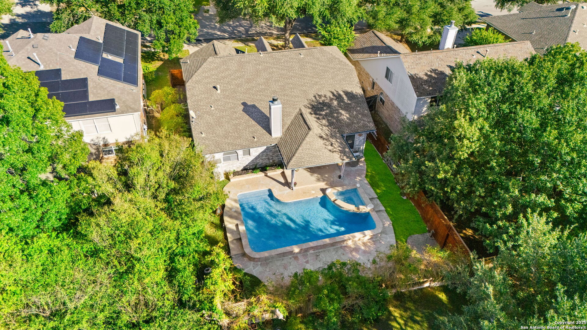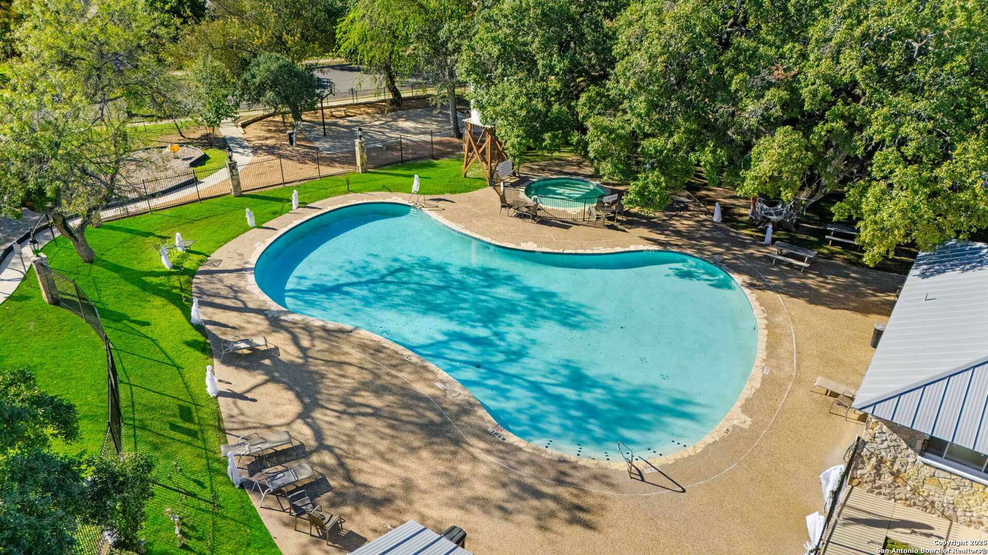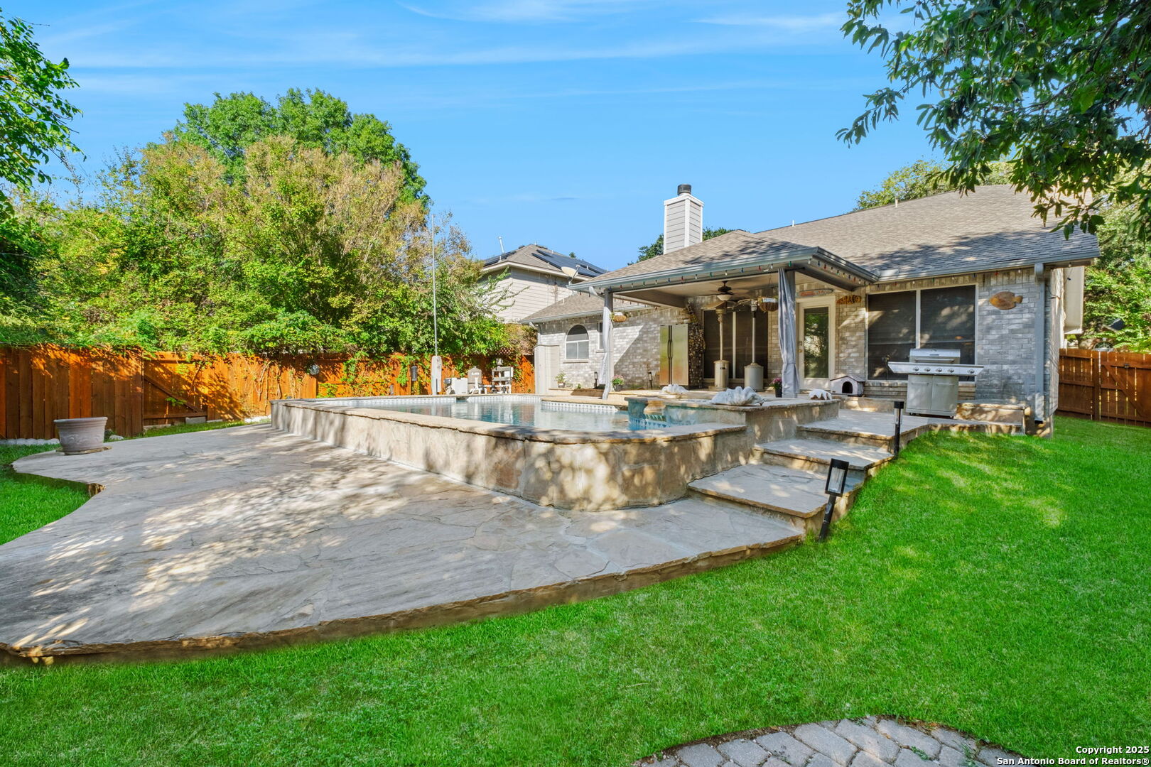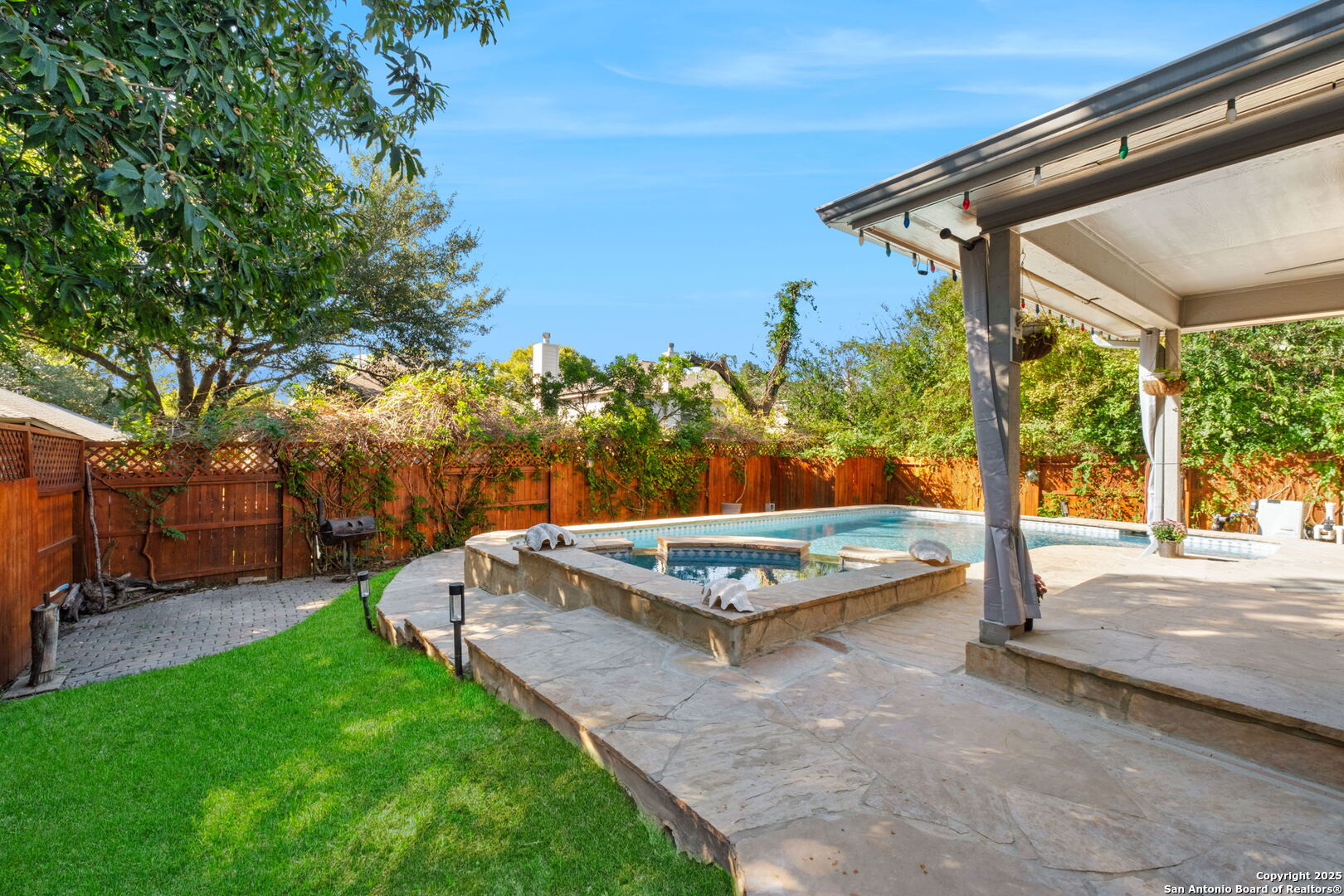 Located in the desirable Hart Ranch neighborhood, this well-maintained home features an open-concept floor plan with elegant design touches throughout. The spacious living room offers vaulted ceilings, a cozy fireplace, and architectural arch niches that add timeless character. The kitchen is equipped with quartz countertops, stainless steel appliances, and a breakfast bar that opens to the dining area, creating a seamless space for everyday living and entertaining. The primary suite is conveniently located downstairs and includes a walk-in closet, soaking tub, and separate shower. Upstairs offers a versatile loft area along with two additional bedrooms. Step outside to enjoy your private backyard retreat with a pool, hot tub, and covered stone patio surrounded by privacy walls. Additional highlights include a water softener, two-car garage, and downstairs laundry room. The neighborhood provides access to a community pool, basketball court, clubhouse, and playground, all within a community that features only one entrance and exit. Centrally located with easy access to I-10, this home offers a quick drive to the Medical Center, USAA, downtown San Antonio, and the La Cantera area.