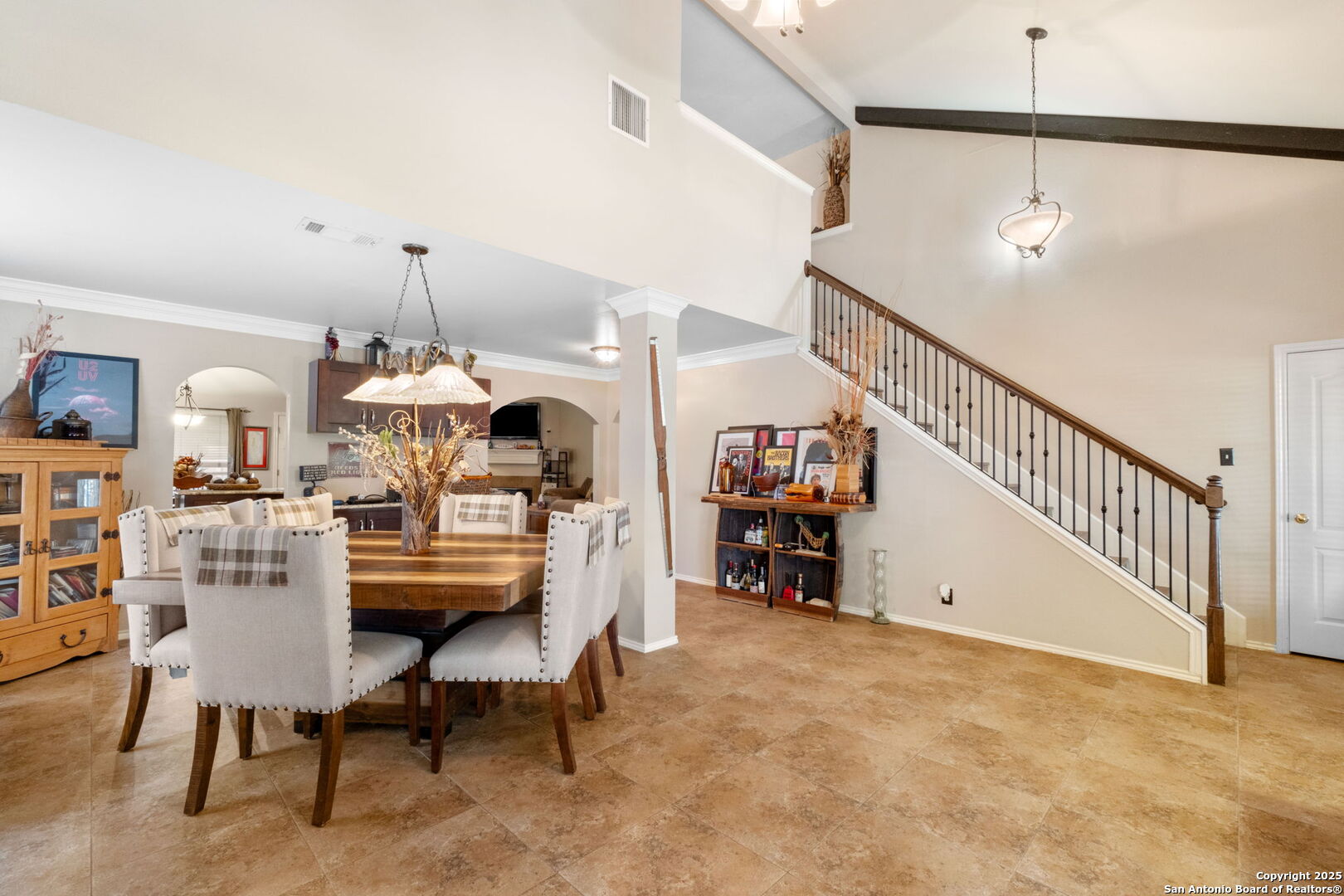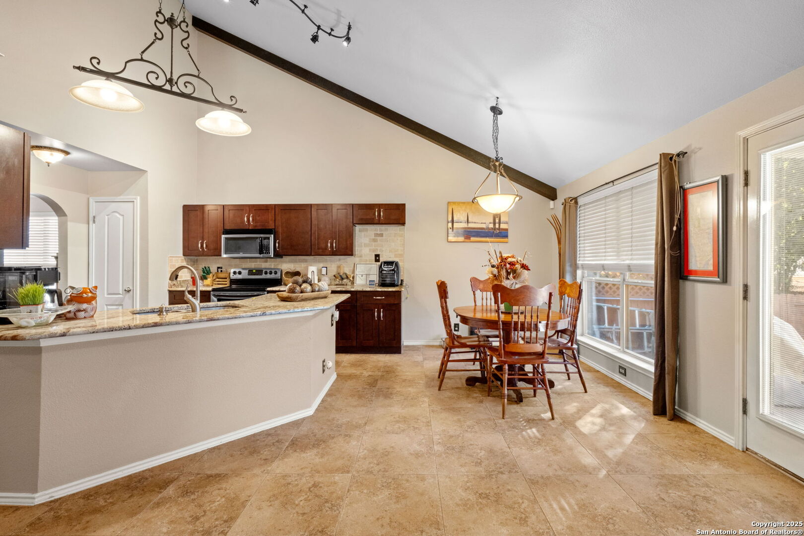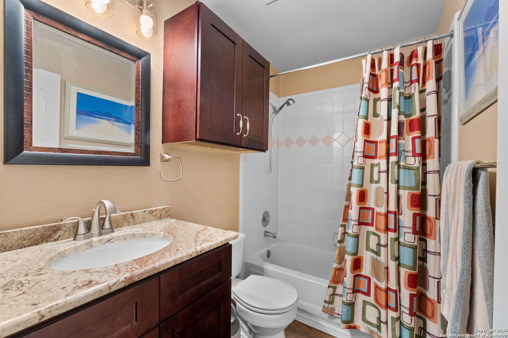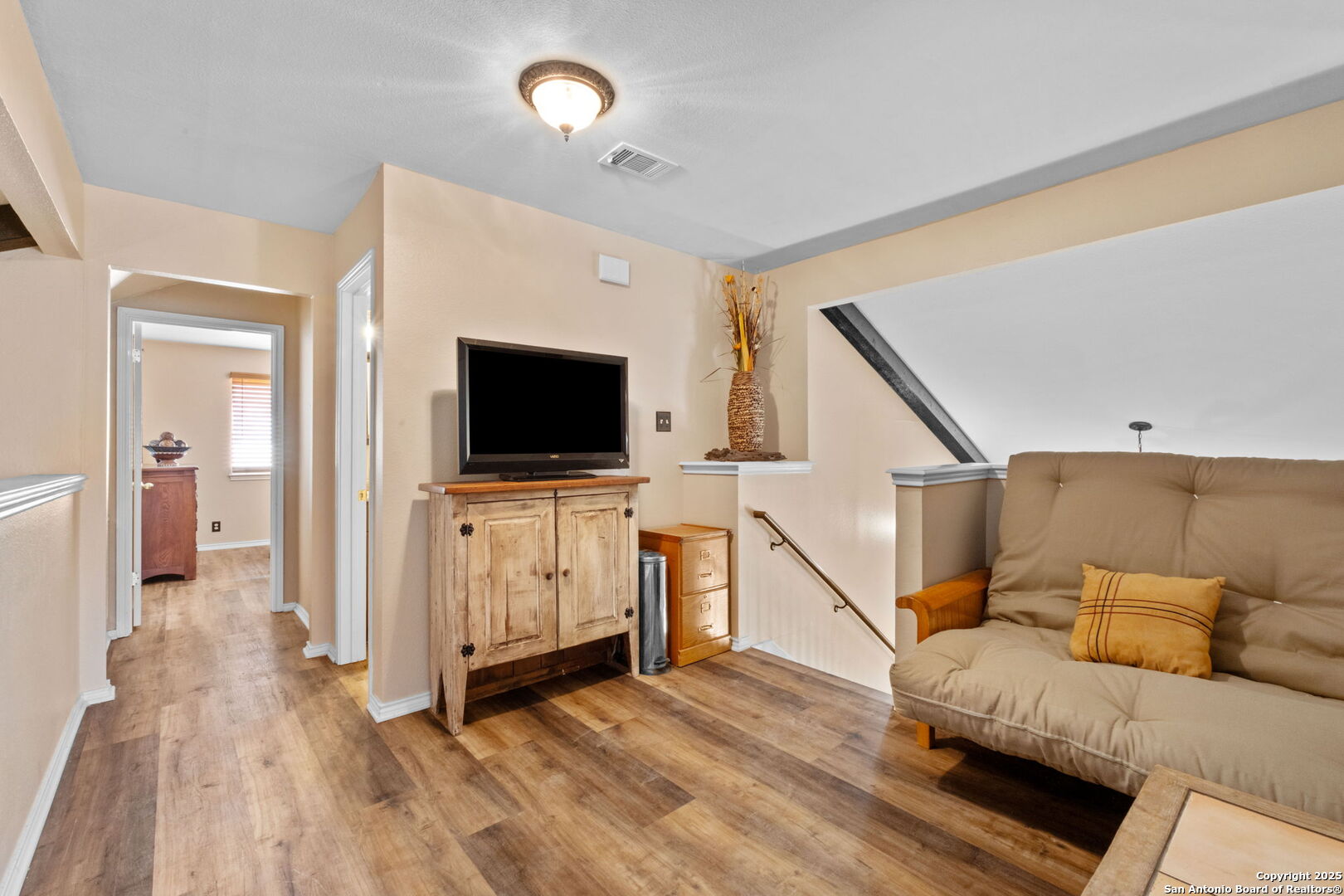 Located in the desirable Hart Ranch neighborhood, this well-maintained home features an open-concept floor plan with elegant design touches throughout. The spacious living room offers vaulted ceilings, a cozy fireplace, and architectural arch niches that add timeless character. The kitchen is equipped with quartz countertops, stainless steel appliances, and a breakfast bar that opens to the dining area, creating a seamless space for everyday living and entertaining. The primary suite is conveniently located downstairs and includes a walk-in closet, soaking tub, and separate shower. Upstairs offers a versatile loft area along with two additional bedrooms. Step outside to enjoy your private backyard retreat with a pool, hot tub, and covered stone patio surrounded by privacy walls. Additional highlights include a water softener, two-car garage, and downstairs laundry room. The neighborhood provides access to a community pool, basketball court, clubhouse, and playground, all within a community that features only one entrance and exit. Centrally located with easy access to I-10, this home offers a quick drive to the Medical Center, USAA, downtown San Antonio, and the La Cantera area.