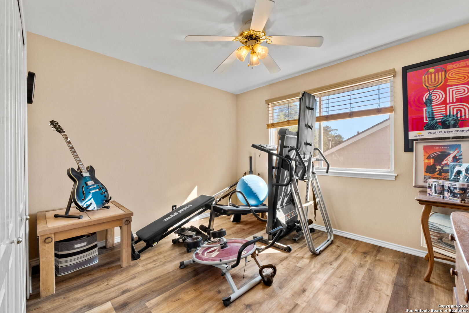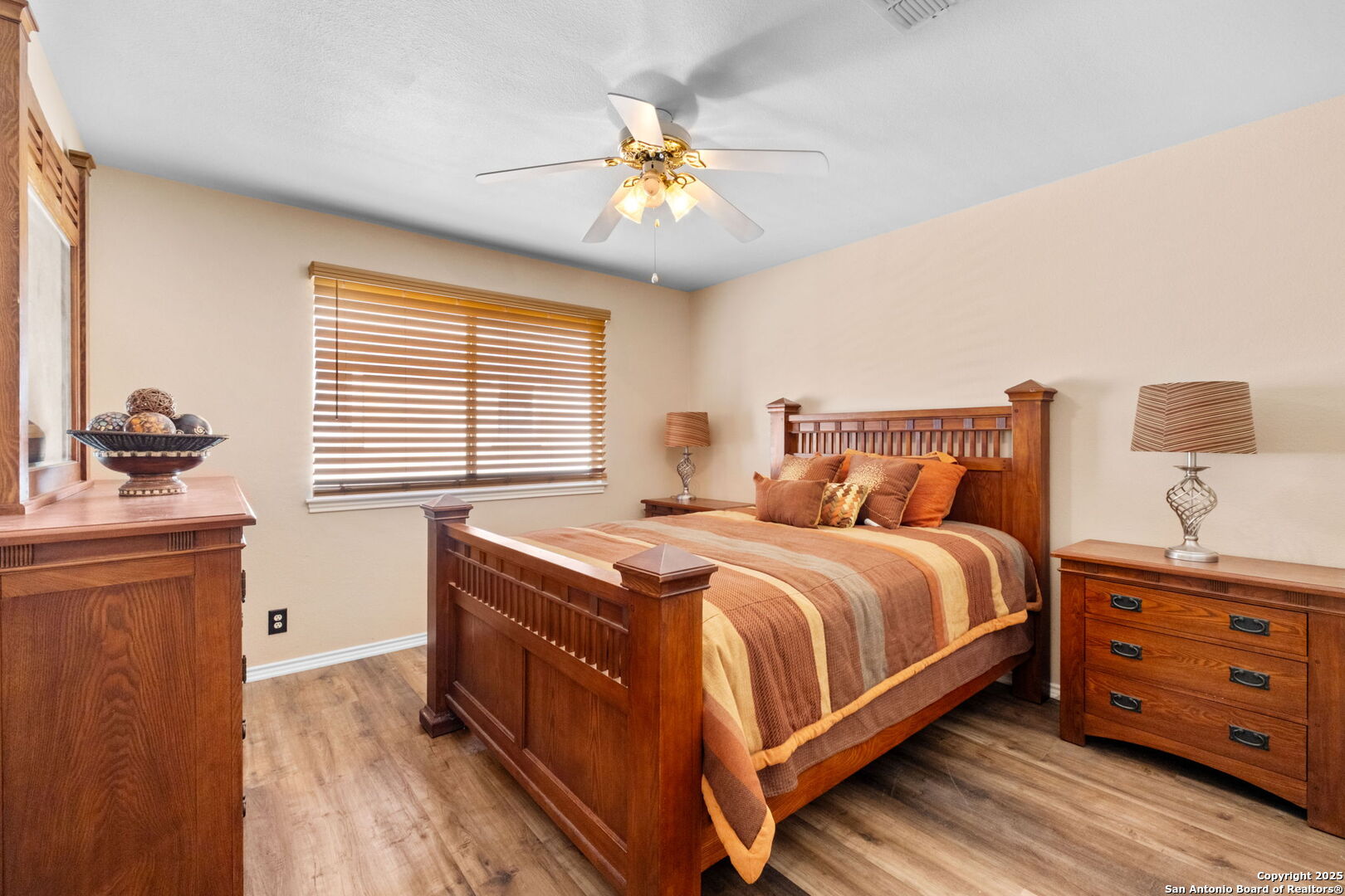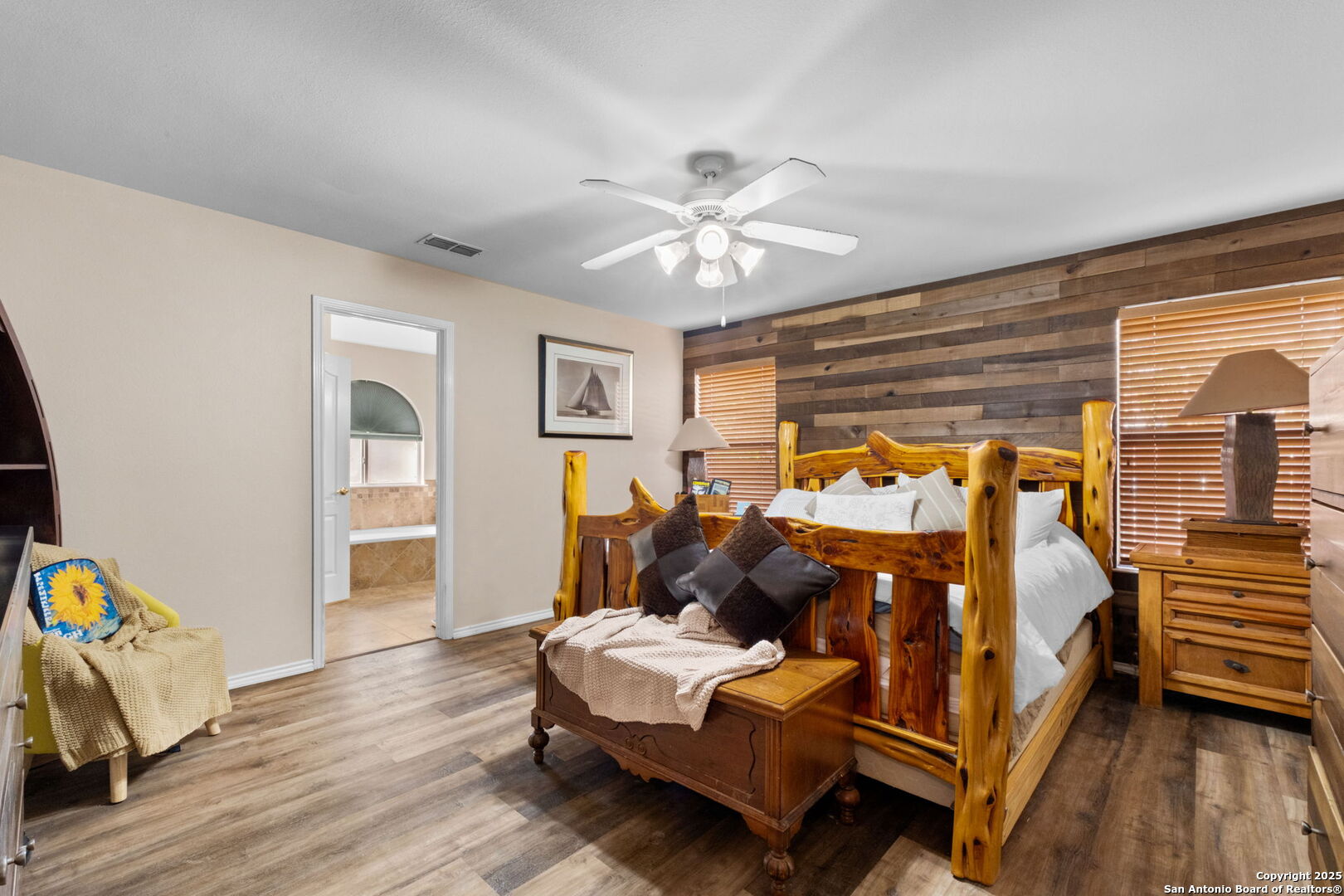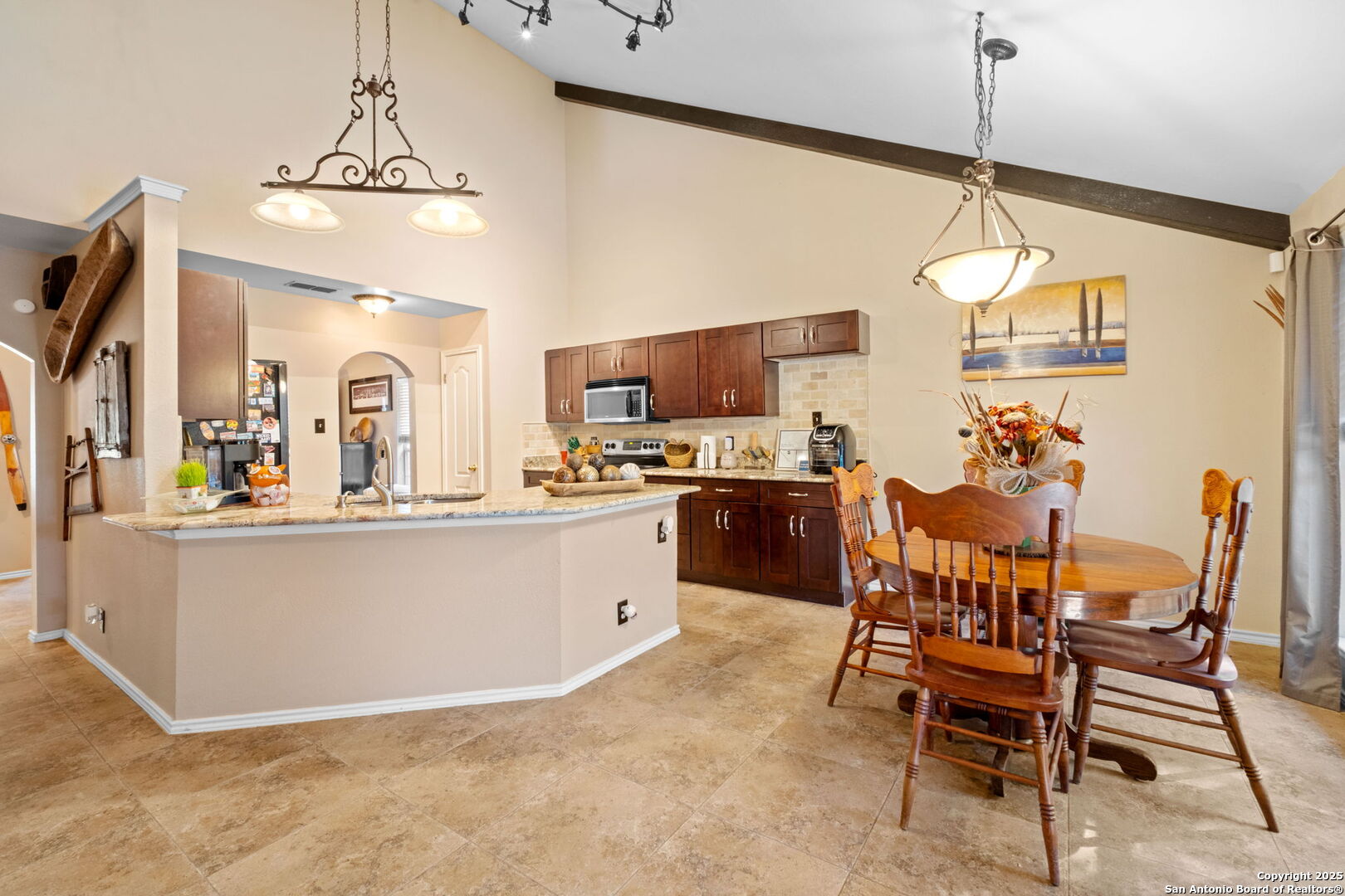 Located in the desirable Hart Ranch neighborhood, this well-maintained home features an open-concept floor plan with elegant design touches throughout. The spacious living room offers vaulted ceilings, a cozy fireplace, and architectural arch niches that add timeless character. The kitchen is equipped with quartz countertops, stainless steel appliances, and a breakfast bar that opens to the dining area, creating a seamless space for everyday living and entertaining. The primary suite is conveniently located downstairs and includes a walk-in closet, soaking tub, and separate shower. Upstairs offers a versatile loft area along with two additional bedrooms. Step outside to enjoy your private backyard retreat with a pool, hot tub, and covered stone patio surrounded by privacy walls. Additional highlights include a water softener, two-car garage, and downstairs laundry room. The neighborhood provides access to a community pool, basketball court, clubhouse, and playground, all within a community that features only one entrance and exit. Centrally located with easy access to I-10, this home offers a quick drive to the Medical Center, USAA, downtown San Antonio, and the La Cantera area.