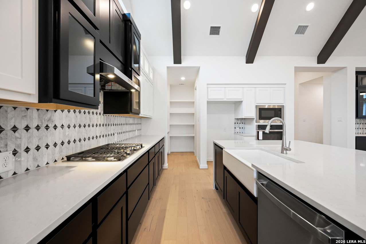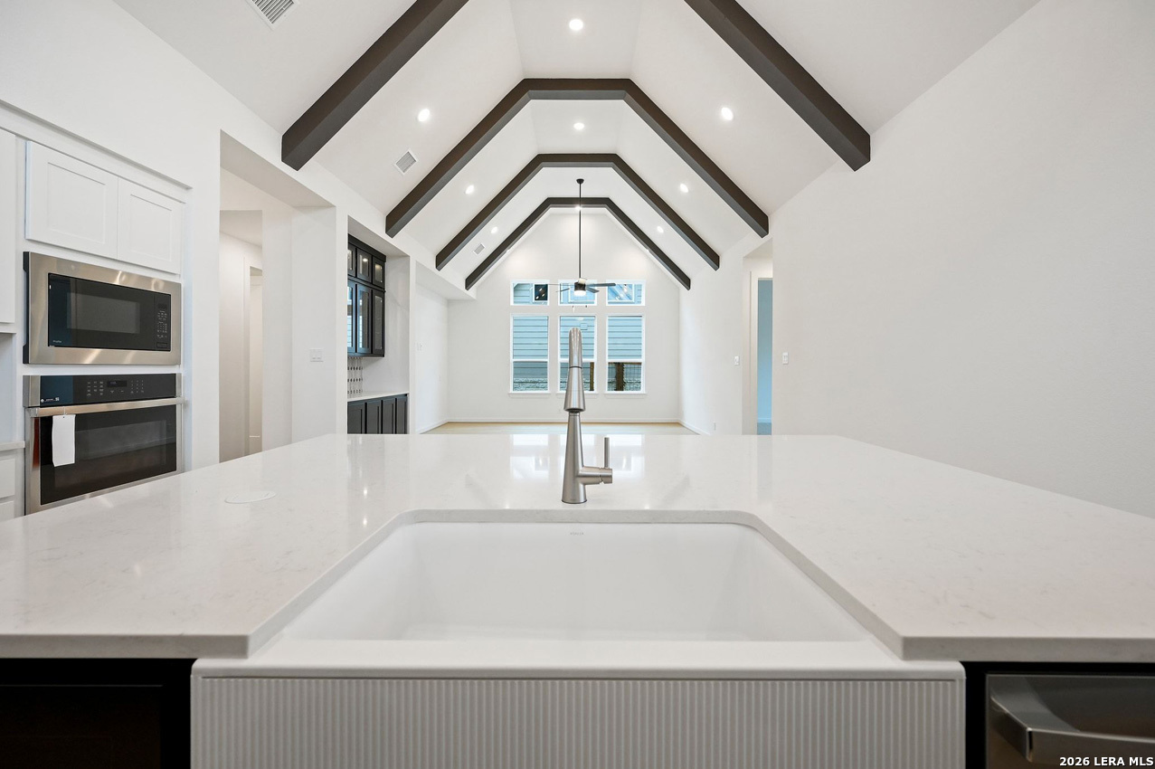 1 story home with 4 bdrms, 3.5 baths, study, extended covered patio, extended primary bdrm, enhanced pantry cabinets with large walk in pantry. Boast with custom cabinets in kitchen, enhanced pantry, dining and family room. Oversize 2 car garage. Community offers 2 amenity centers with pool, basketball court, amphitheater and close by parks.