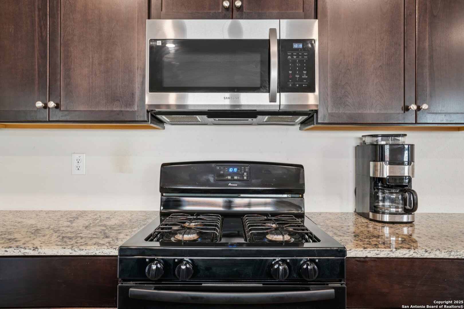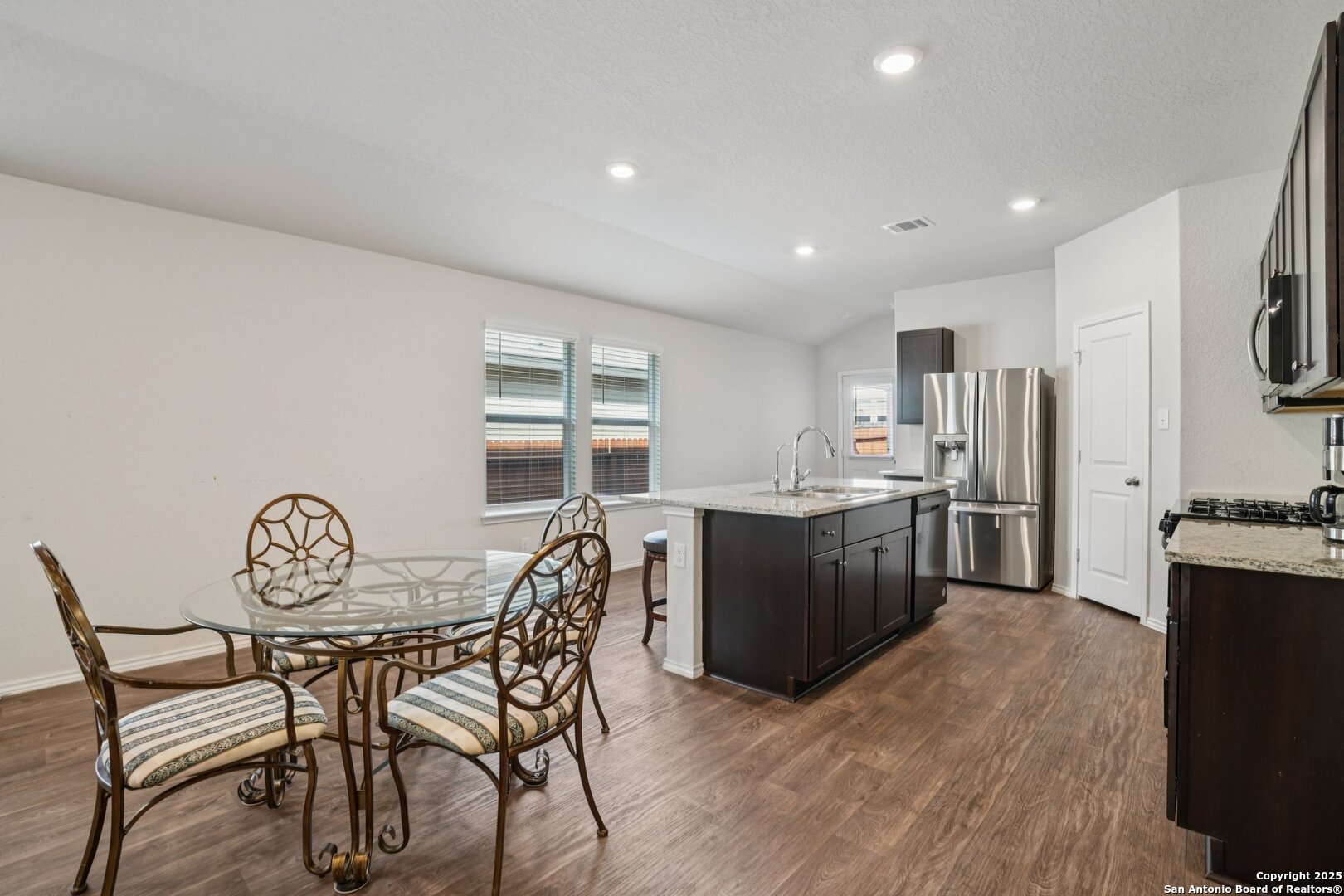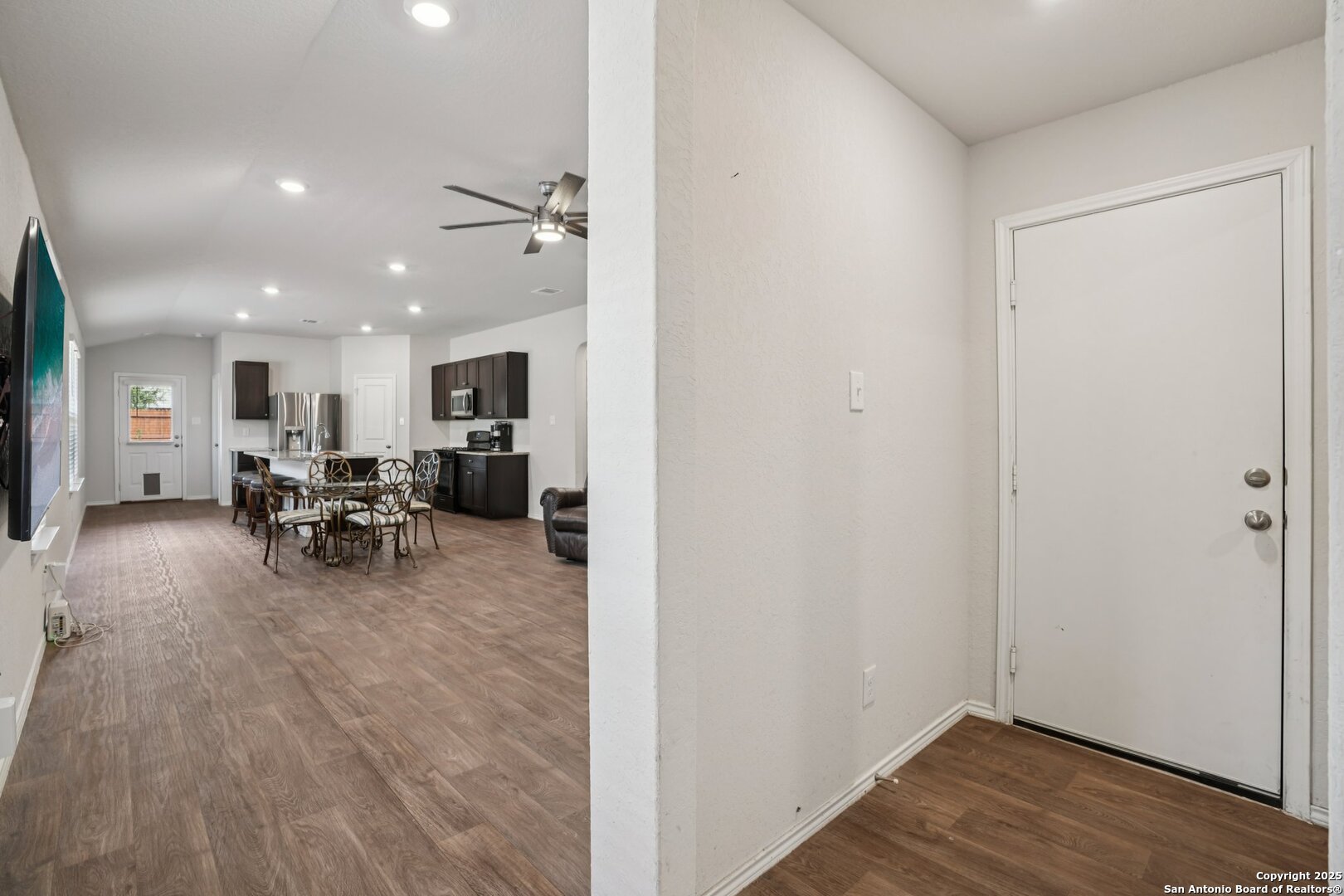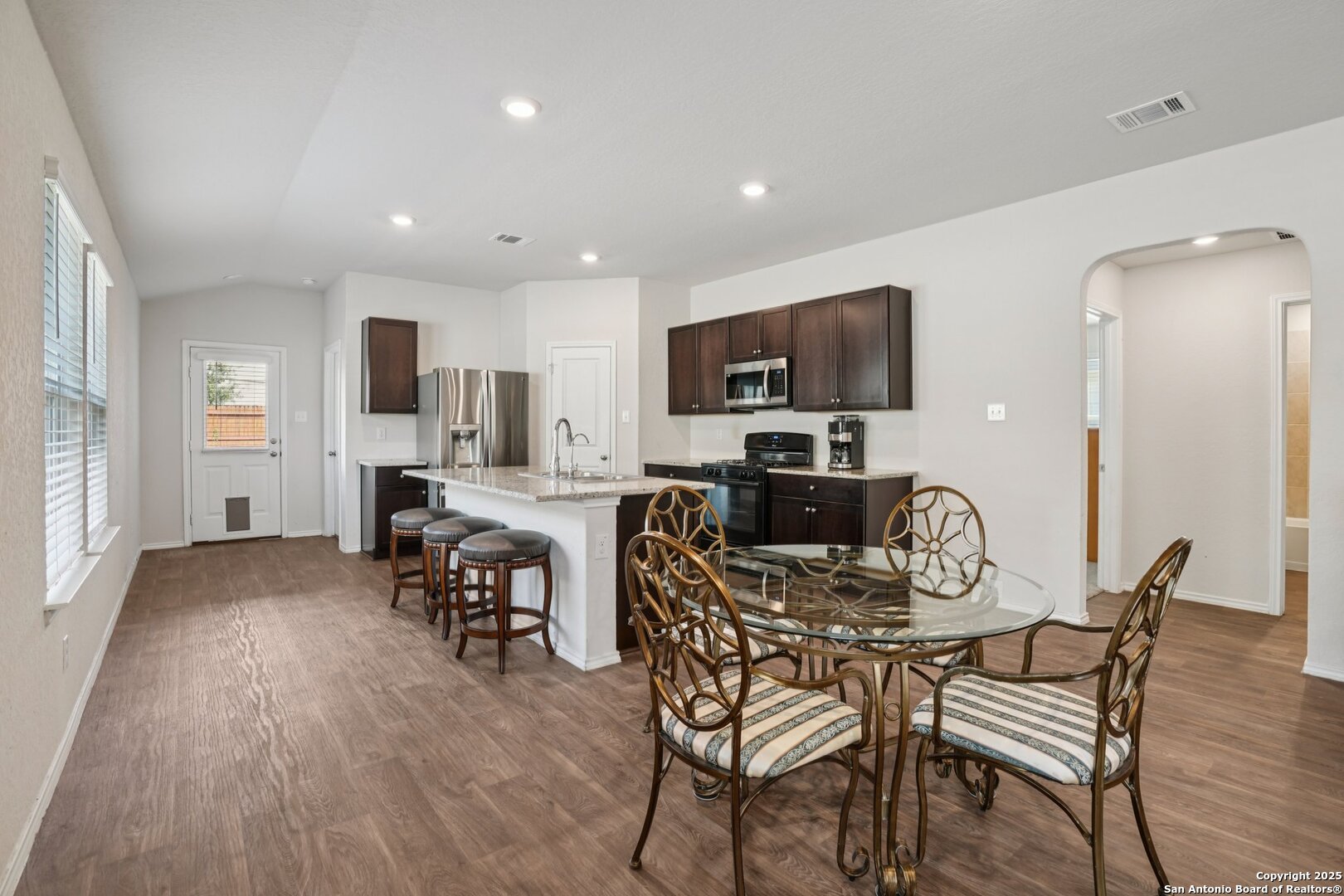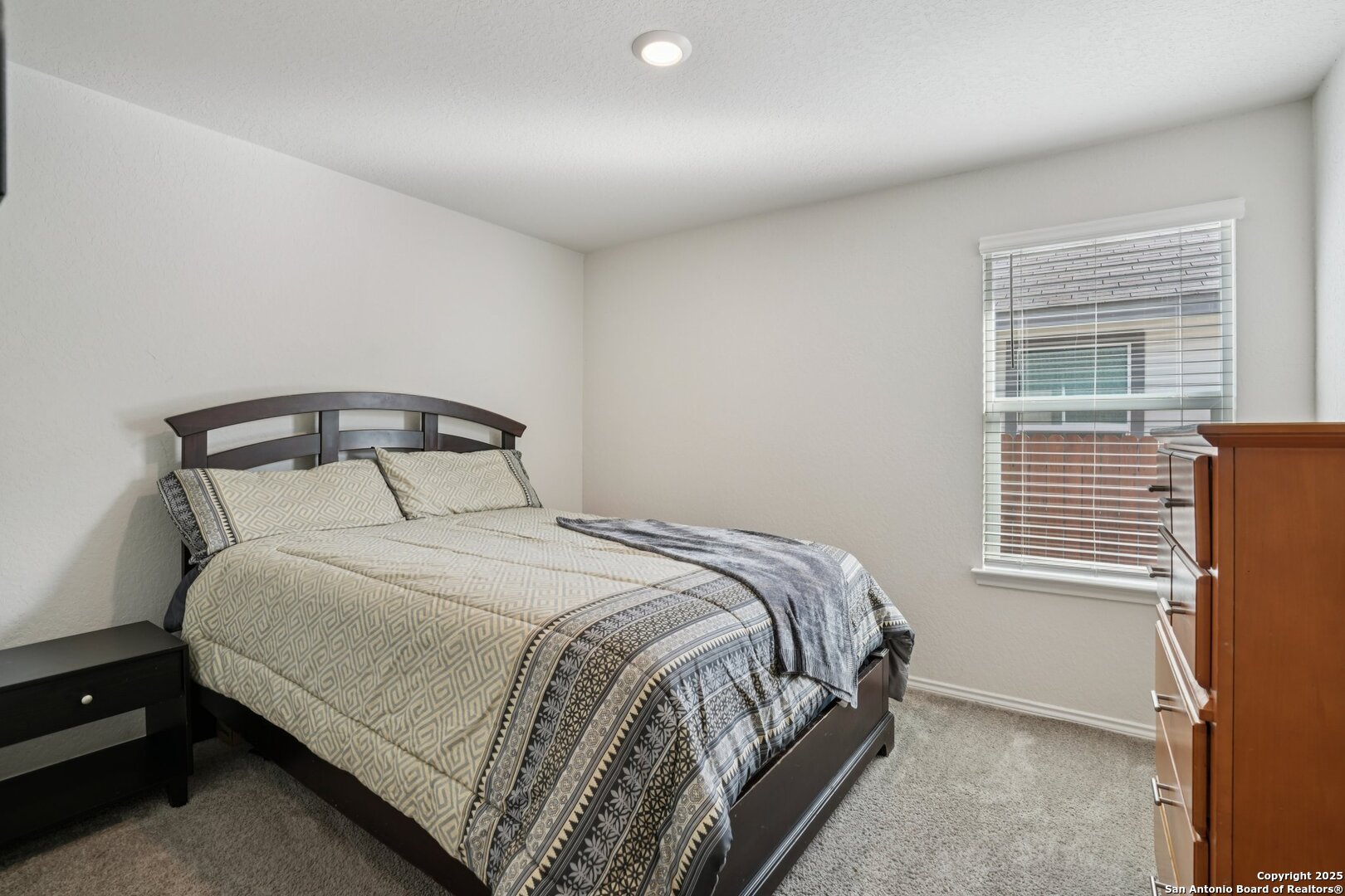 Welcome to this charming one-story home featuring 3 bedrooms, 2 baths, and a 2-car garage. A long foyer leads you past the utility room and into a spacious, open living and dining area that seamlessly flows into the stunning corner kitchen. The kitchen highlights include a breakfast bar with beautiful granite countertops, stainless steel appliances, and a convenient corner pantry-perfect for both everyday meals and entertaining. The primary bedroom is thoughtfully located just off the kitchen and offers a stylish ensuite with a separate water closet and a generous walk-in closet. Enjoy easy access to the covered patio from both the kitchen and the primary bedroom-an ideal spot to relax outdoors. Additional features include durable sheet vinyl flooring in the entry, living room, and all wet areas, granite bathroom countertops, full-yard landscaping with irrigation, and the Home Is Connected smart-home package. With one central hub, you can control the lights, thermostat, and locks right from your smartphone. This home also comes with valuable upgrades: a water softener, water purifier, garage door opener with two remotes, and a Samsung microwave. Located just minutes from Lackland AFB, H-E-B, SeaWorld, Walmart, Costco, and much more, with convenient access to Hwy 1604, Hwy 90, and Loop 410. This beautiful home offers exceptional value and convenience-truly a must-see!