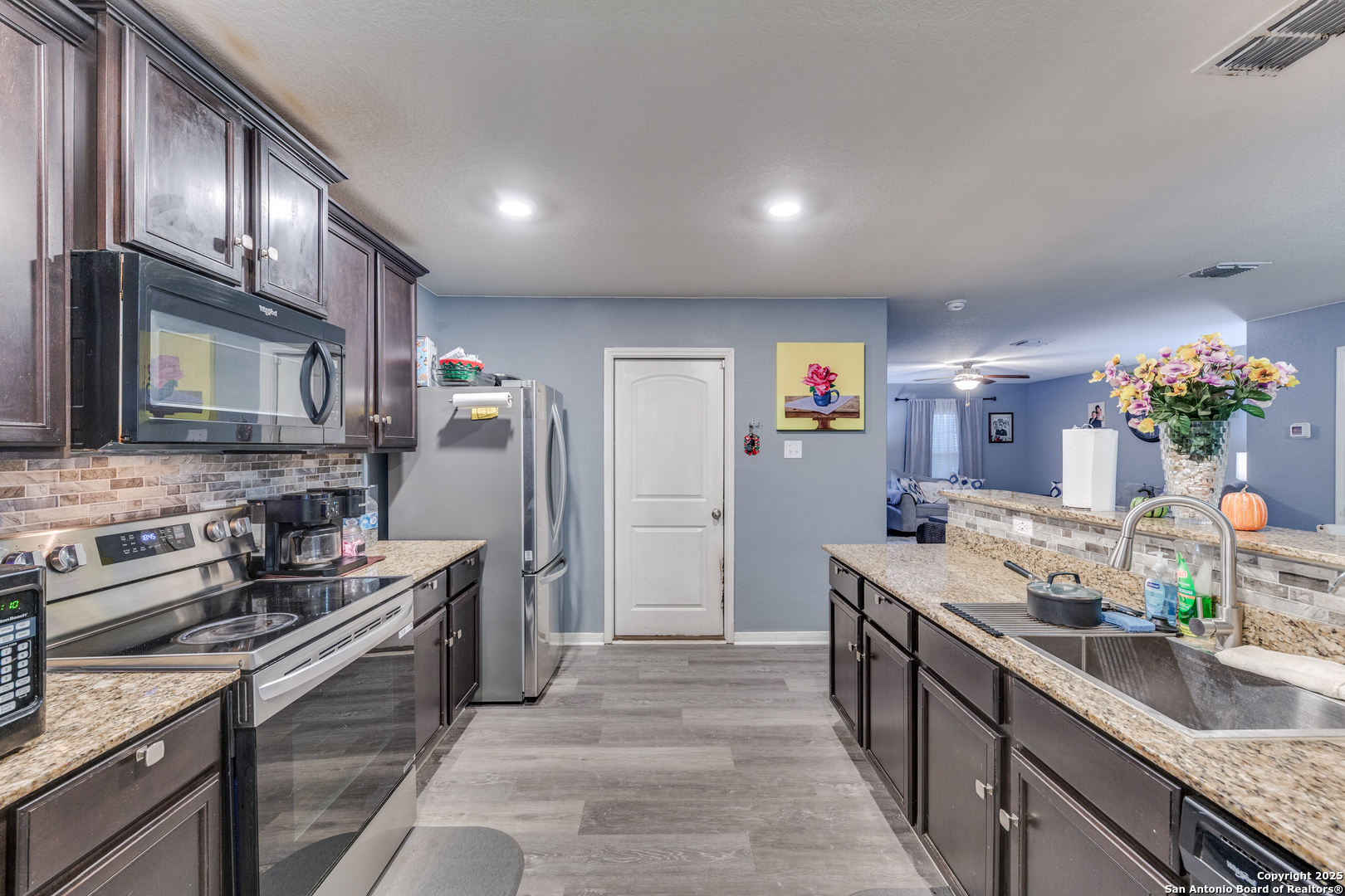 Welcome to Luckey Ranch. Come see this well maintained beauty in person. Just a few minutes from 1604 off HWY 90. This home features 3 bedrooms 2.5 baths. An open floor plan with new LVP floors installed in 2024. The kitchen has custom backsplash with plenty of counter space. A new stove was added in 2024 and a new kitchen sink just add to all the wonderful improvements the seller has done. The refrigerator, along with the washer and dryer can convey with reasonable offer. Upstairs you`ll find 3 bedrooms and 2 full bathrooms. Outside a 12/20 covered concrete patio was added in 2024 with HOA approval. The original side gate was replaced in September. The backyard is way larger than its neighbors due to how the house is positioned on the circular street. The pictures on MLS are nice but this gem is better seen in person. The home and upstairs carpet will be professionally cleaned prior to closing. Schedule your showing today.