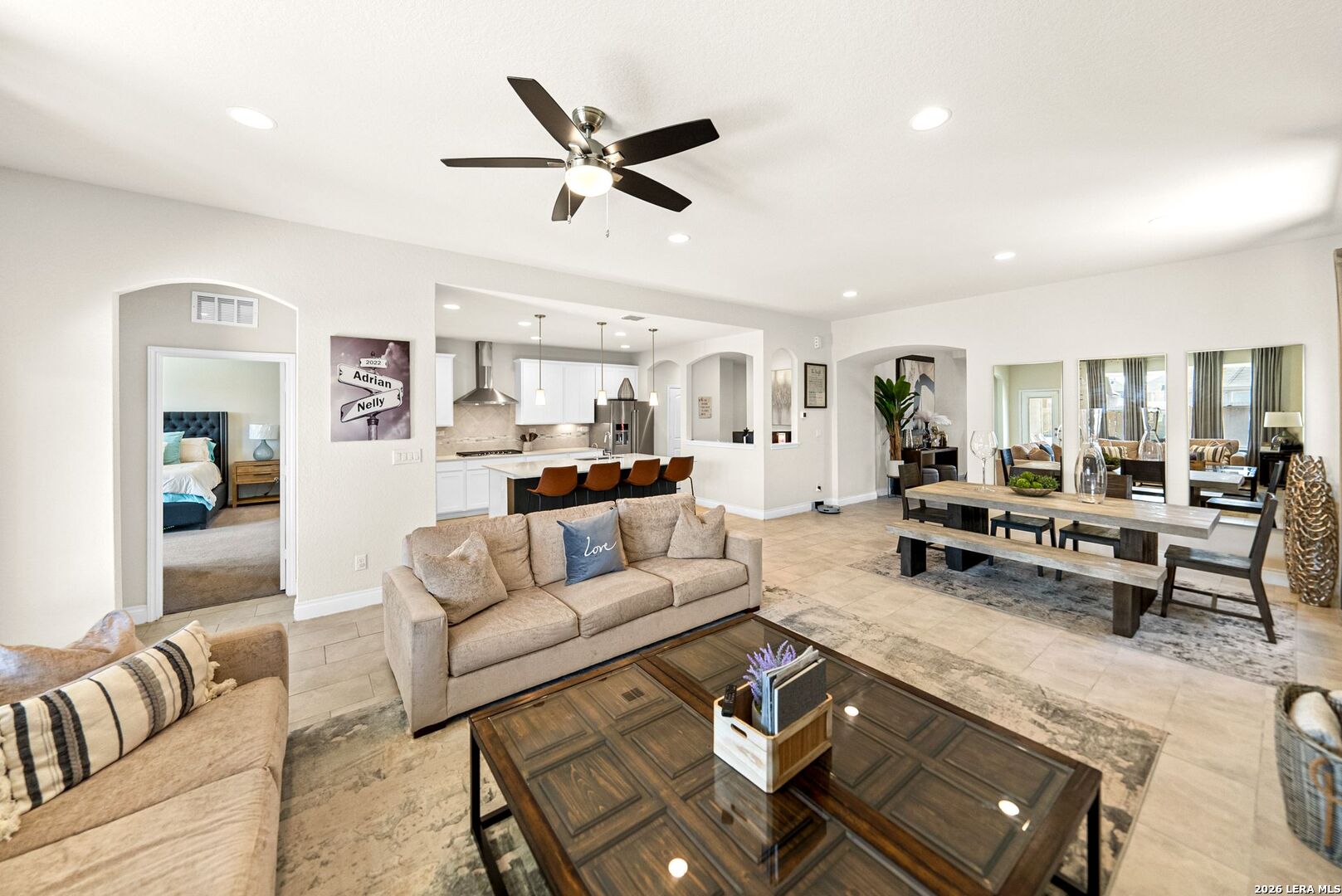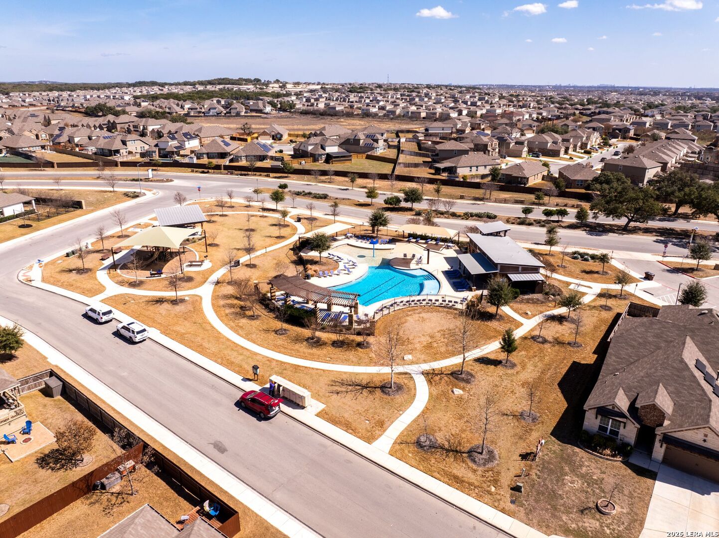 POOL!!! DUAL PRIMARY CLOSETS. SECONDARY GUEST SUITE DOWN. MEDIA ROOM AND GAMEROOM. Welcome to a home that doesn't just check boxes, it creates moments. From the moment you arrive, the beautifully crafted custom front door opens into a breathtaking two-story entry where natural light pours in, and a stunning catwalk overlooks the space below. It's the kind of entrance that immediately feels grand yet inviting, the perfect place to welcome friends, family, and celebrations for years to come. A kitchen designed for connection. Picture mornings beginning at the coffee bar as sunlight filters through the windows, while the expansive 12-foot island becomes the gathering place for everything from pancake breakfasts to evening conversations. The elegant white shaker cabinets, sleek Silestone countertops, and built-in stainless oven create a clean and timeless aesthetic, while the butler's pantry makes hosting effortless whether it's a quiet dinner or a full house during the holidays. Just off the main living space is a secondary bedroom with a full bath on the first floor, perfect for visiting family, long-term guests, or a comfortable in-law suite. Nearby, a thoughtfully designed planning center or home office provides a quiet spot to organize the day, manage school schedules, or work from home while staying connected to the activity of the house. Your private retreat awaits in the spacious primary suite, where a beautiful bay window frames peaceful views and invites you to slow down at the end of the day. The spa-style bathroom feels like a personal getaway, featuring a walk-in shower with bench seating, a relaxing garden tub, and an extended dual vanity with abundant storage. And the dual primary closets offer the kind of space and organization most homeowners only dream about. Upstairs, entertainment takes center stage. Movie nights come alive in the dedicated media room, while the oversized game room becomes the hub for everything from game-day gatherings to family tournaments and late-night laughs. Step outside and imagine summer afternoons spent by your private pool, where the Texas sun meets cool water and weekends feel like a vacation in your own backyard. The lifestyle extends beyond the home as well. Located in Northside ISD with both an elementary and middle school conveniently within the community, daily routines become simpler for families. Residents enjoy access to incredible neighborhood amenities including two resort-style pools with cabanas, a children's playground, shaded picnic pavilion, and pickleball court. All perfect for meeting neighbors and making memories. Nature lovers will appreciate being right next door to Government Canyon State Natural Area, where hundreds of acres of protected land offer miles of hiking and biking trails. It's the ideal escape for sunrise hikes, weekend adventures, or simply reconnecting with the outdoors. And with no city taxes, this home offers not only an exceptional lifestyle but also long-term value.