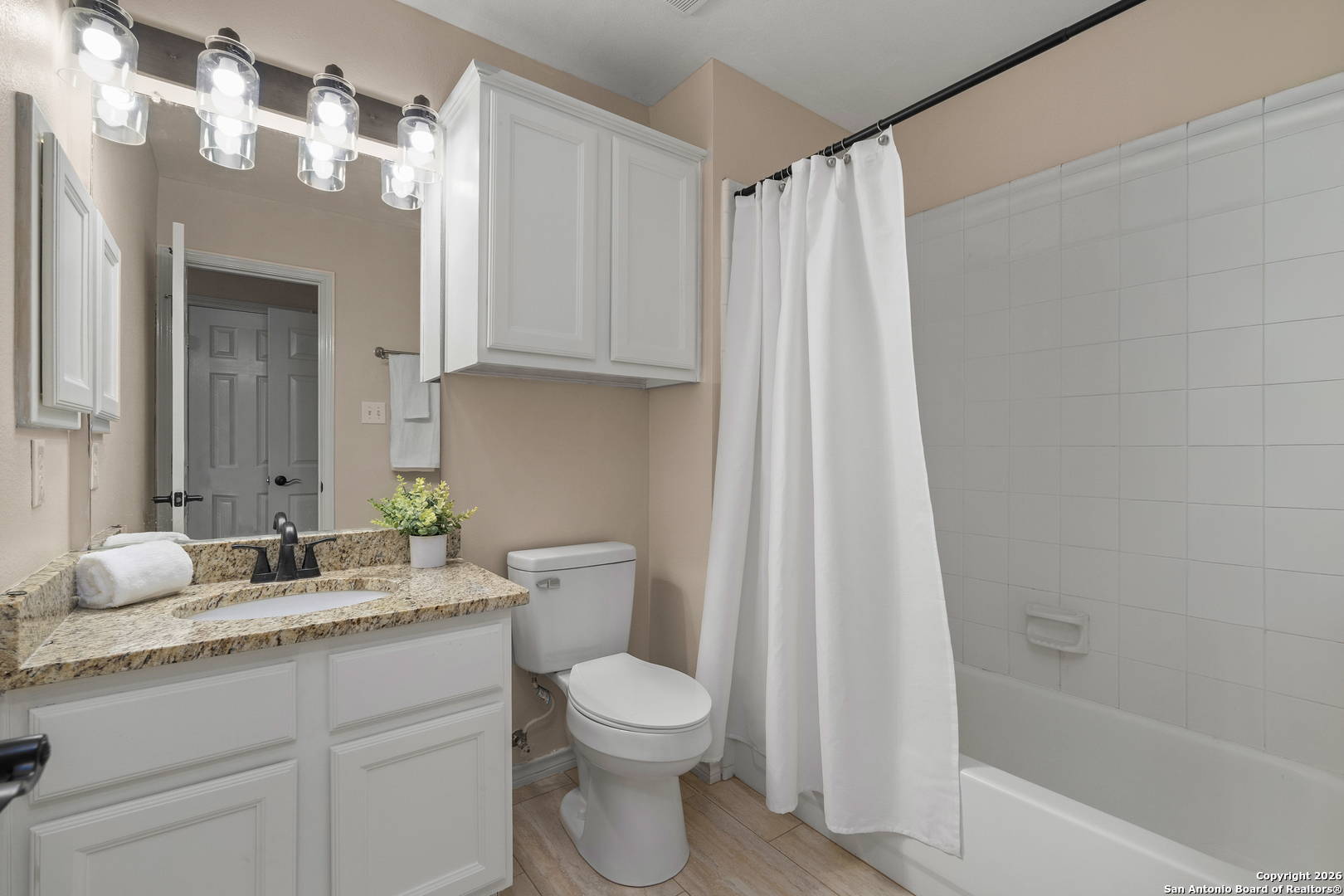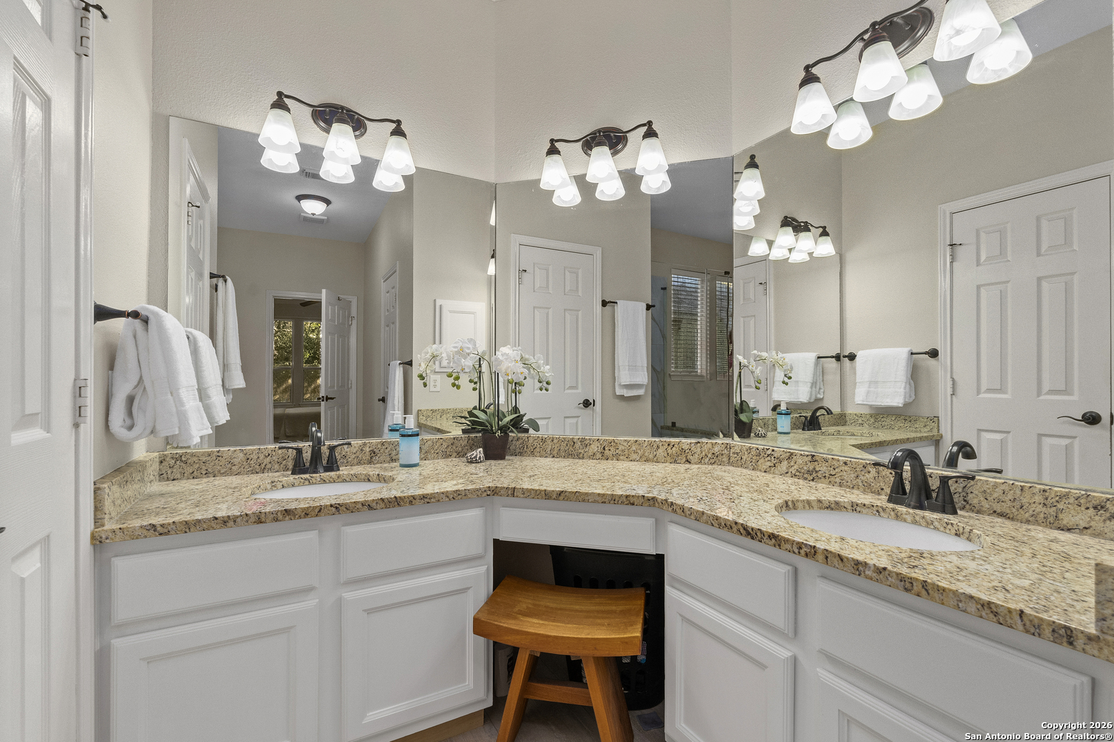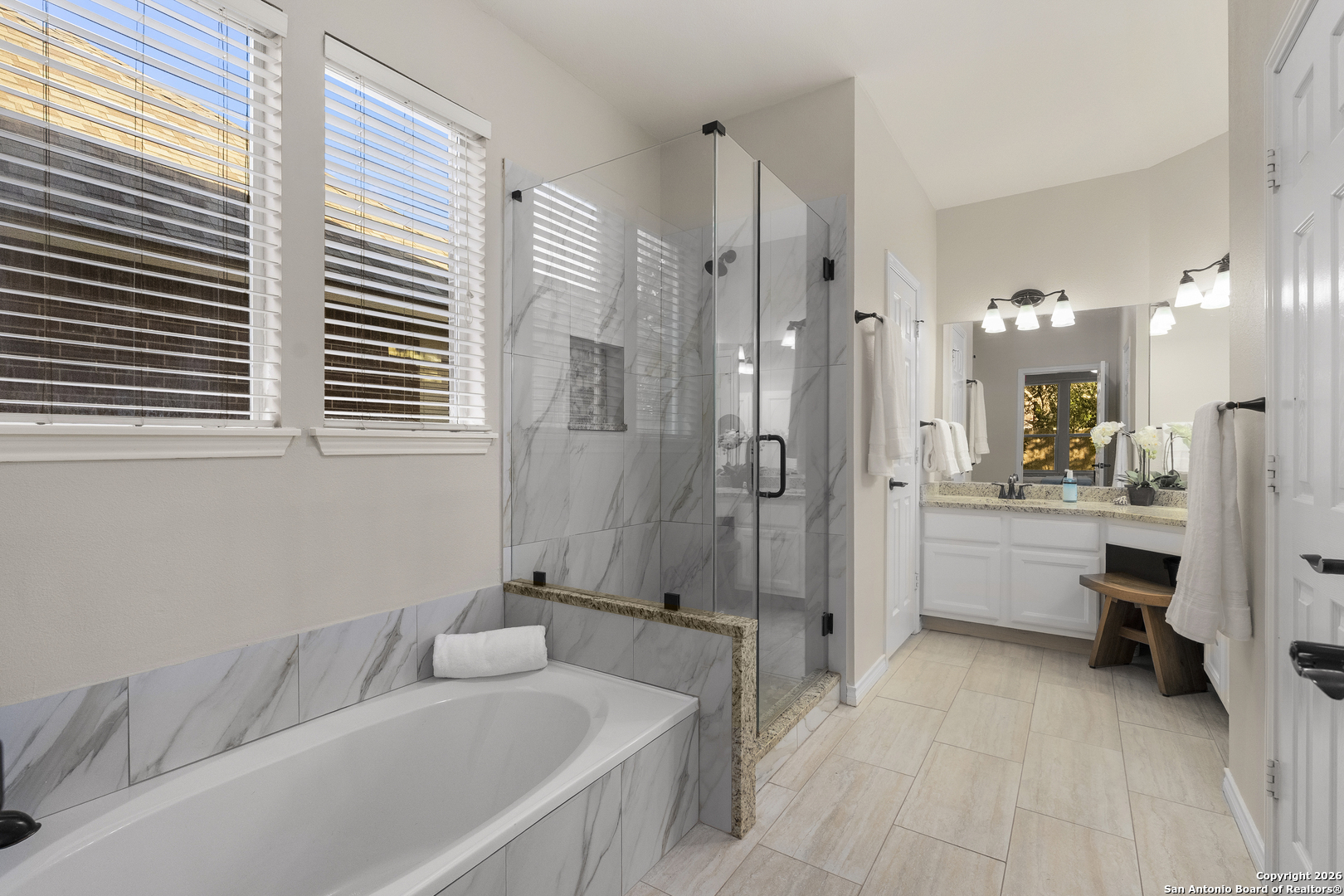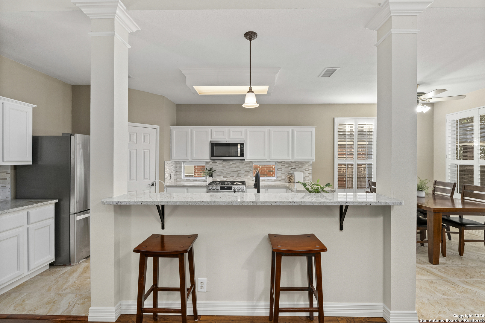 Located in the gated community of Stone Valley, this updated home offers comfort, functionality, and a prime Stone Oak location in North Central San Antonio. Just off the entry, a private home office with French doors provides an ideal work from home space, complemented by a formal dining room perfect for entertaining. The main living area features tall ceilings and a cozy fireplace and overlooks the backyard, creating a light-filled and inviting space for everyday living. The updated kitchen showcases granite countertops, stainless steel appliances, and gas cooking. The primary bedroom is located on the main level and features a renovated ensuite bathroom. Upstairs, four secondary bedrooms and a spacious game room offer flexible living options for guests, family, or bonus space. Residents of Stone Valley enjoy access to community amenities including a pool, playground, and sports court. This move-in ready home is conveniently located with easy access to 1604, near shopping, dining, walking trails, and the Parman Library, and is zoned to highly rated North East Independent School District schools.
