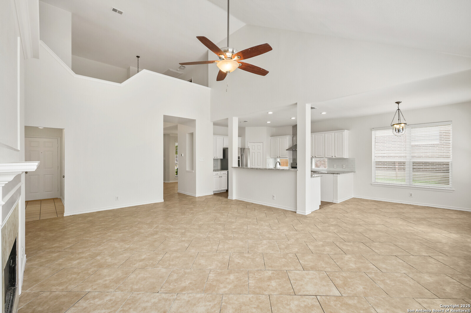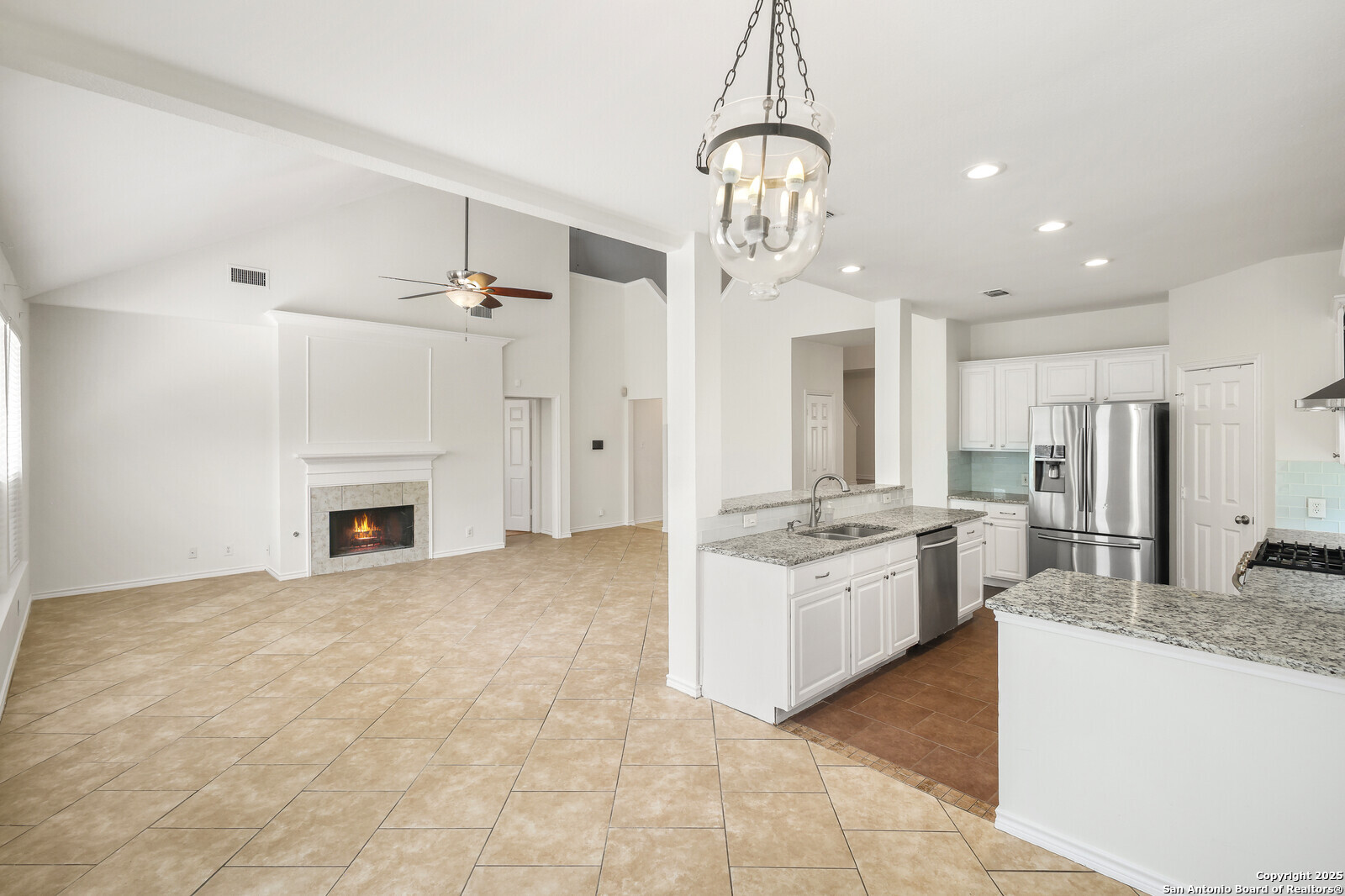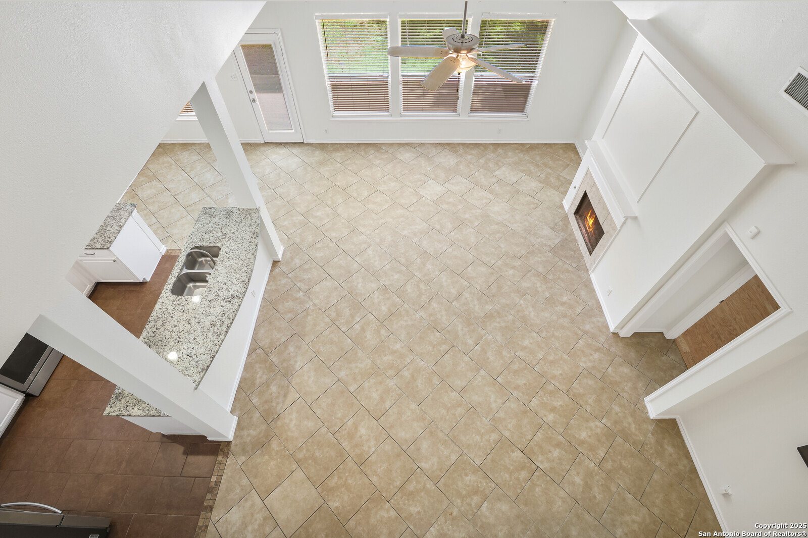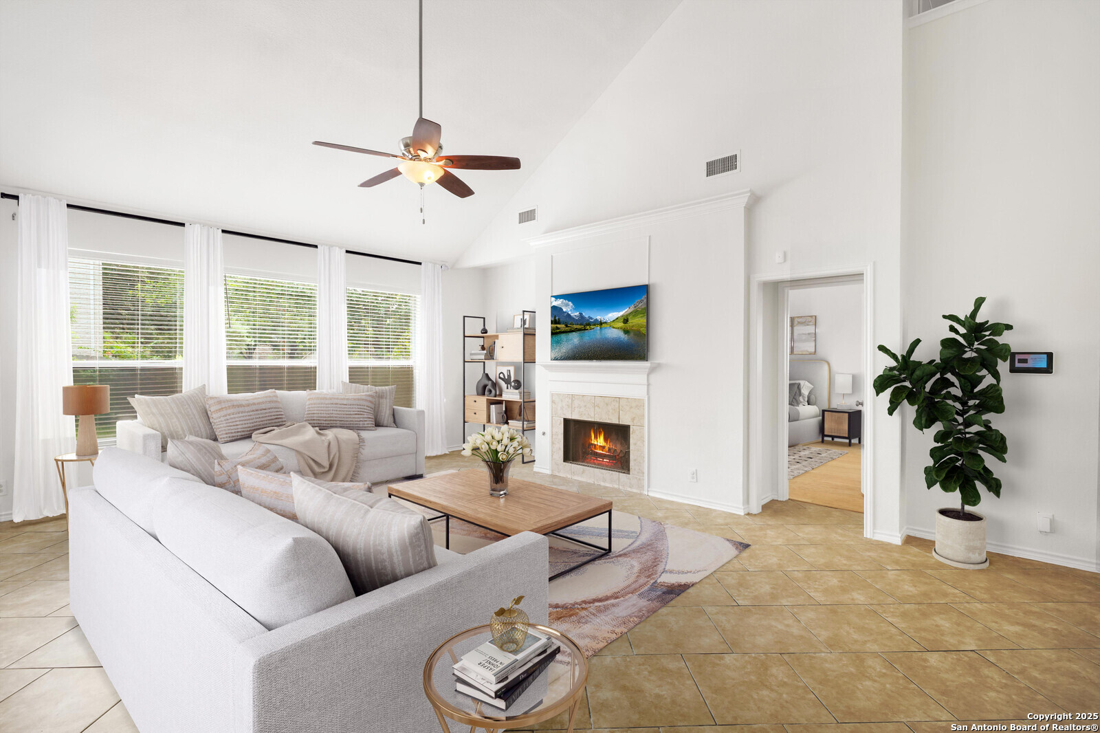 Graceful Home Near UTSA, Six Flags, Medical Center & La Cantera! Welcome to this beautifully maintained home in established neighborhood known for its mature trees, walkable sidewalks, and community amenities including a pool, park, BBQ/Picnic area, clubhouse, and basketball court. This pristine home offers thoughtful upgrades such as: -Smart Home Technology Features -Impressive 19' High Ceilings -Stylish kitchen upgrade -Eatery kitchen bar -Painted interior & exterior, -Fireplace -Upgraded bathrooms -Large Windows This open and inviting layout includes Foyer entryway with sky-high ceilings, Formal living area and formal dining area Spacious family room, and breakfast nook. Tile and hardwood flooring throughout - no carpet. Upstairs loft/den with potential to enclose as a 5th bedroom. Walk-in closets in most bedrooms. The exterior is equally appealing with manicured landscaping, roof gutters, and a spacious front porch enhanced with stylish patio tile for a warm welcome. Big backyard for entertaining and equally quite for relaxing. This move-in ready home offers comfort, style, and flexibility in a prime location near top attractions and shopping.