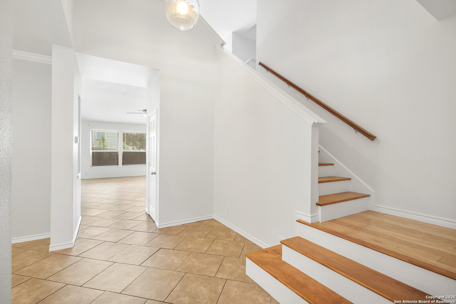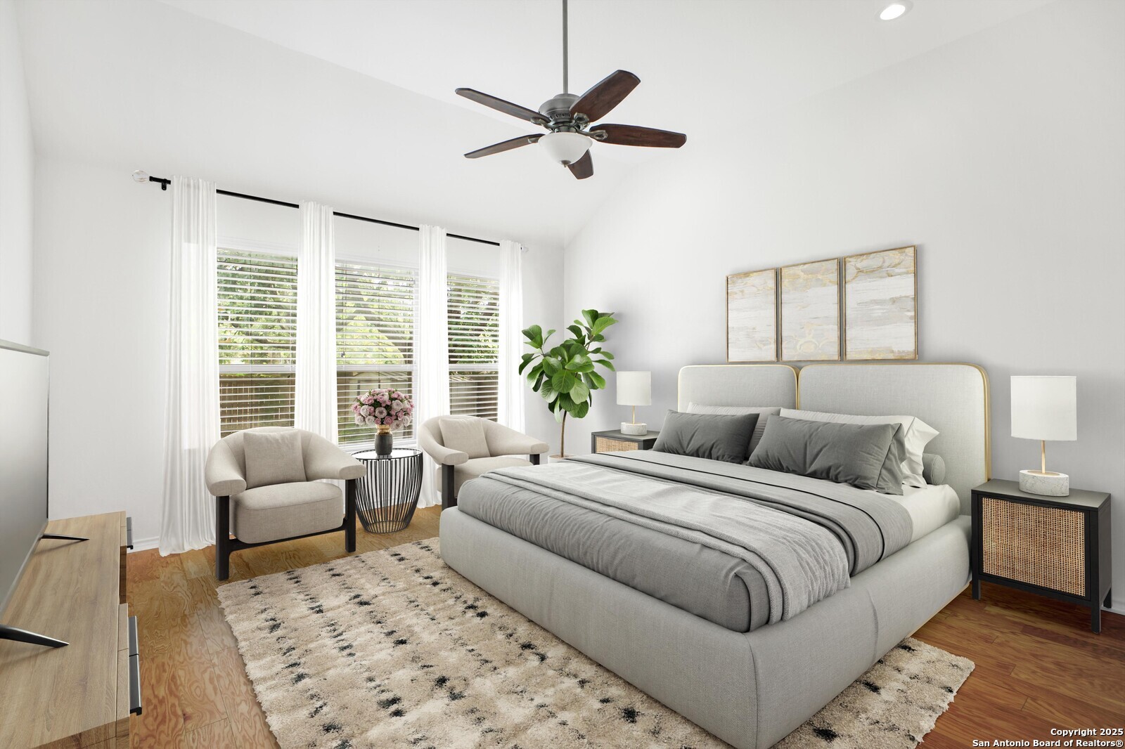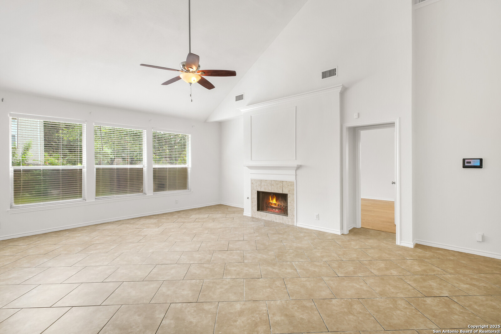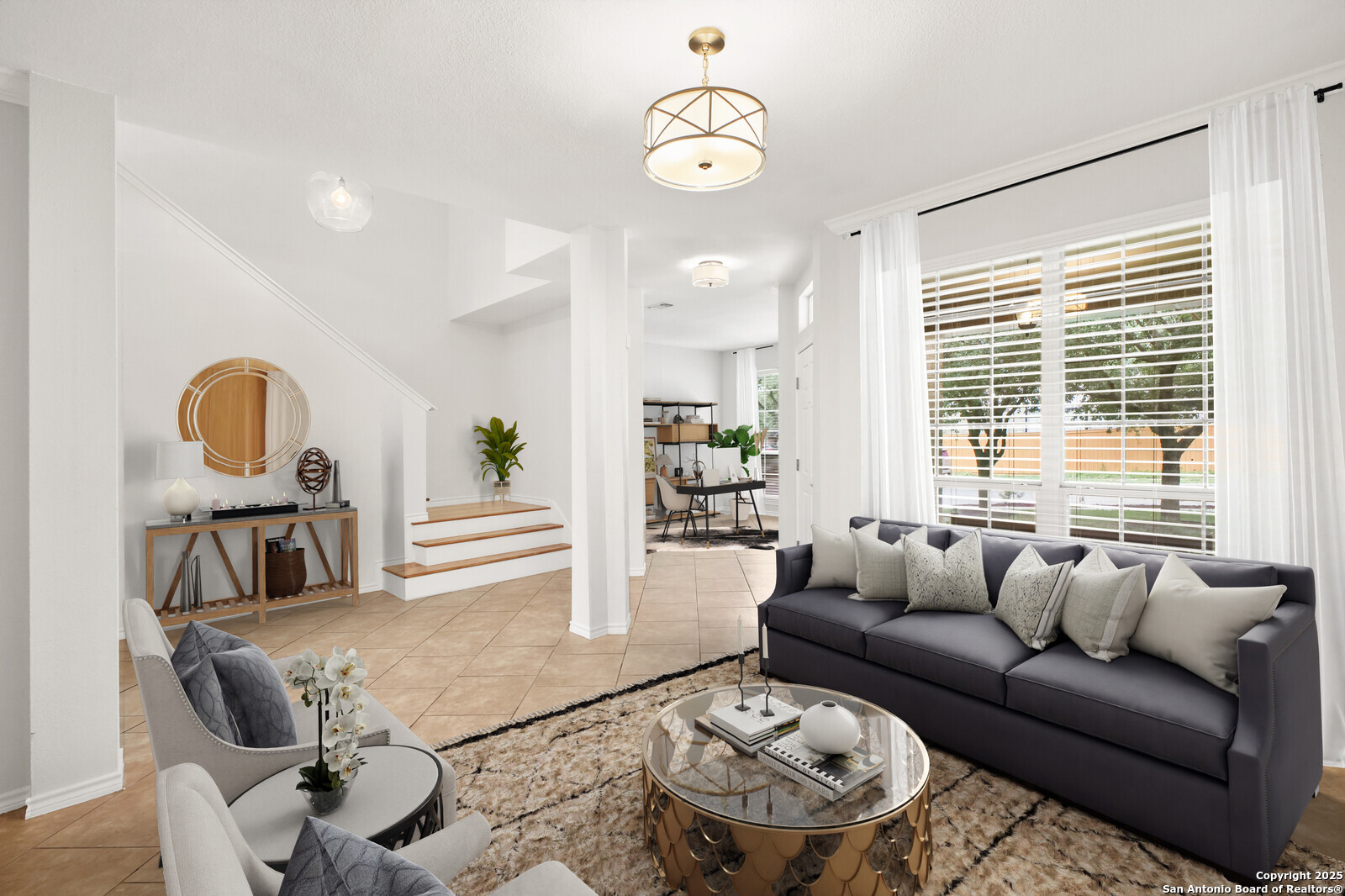 Graceful Home Near UTSA, Six Flags, Medical Center & La Cantera! Welcome to this beautifully maintained home in established neighborhood known for its mature trees, walkable sidewalks, and community amenities including a pool, park, BBQ/Picnic area, clubhouse, and basketball court. This pristine home offers thoughtful upgrades such as: -Smart Home Technology Features -Impressive 19' High Ceilings -Stylish kitchen upgrade -Eatery kitchen bar -Painted interior & exterior, -Fireplace -Upgraded bathrooms -Large Windows This open and inviting layout includes Foyer entryway with sky-high ceilings, Formal living area and formal dining area Spacious family room, and breakfast nook. Tile and hardwood flooring throughout - no carpet. Upstairs loft/den with potential to enclose as a 5th bedroom. Walk-in closets in most bedrooms. The exterior is equally appealing with manicured landscaping, roof gutters, and a spacious front porch enhanced with stylish patio tile for a warm welcome. Big backyard for entertaining and equally quite for relaxing. This move-in ready home offers comfort, style, and flexibility in a prime location near top attractions and shopping.
