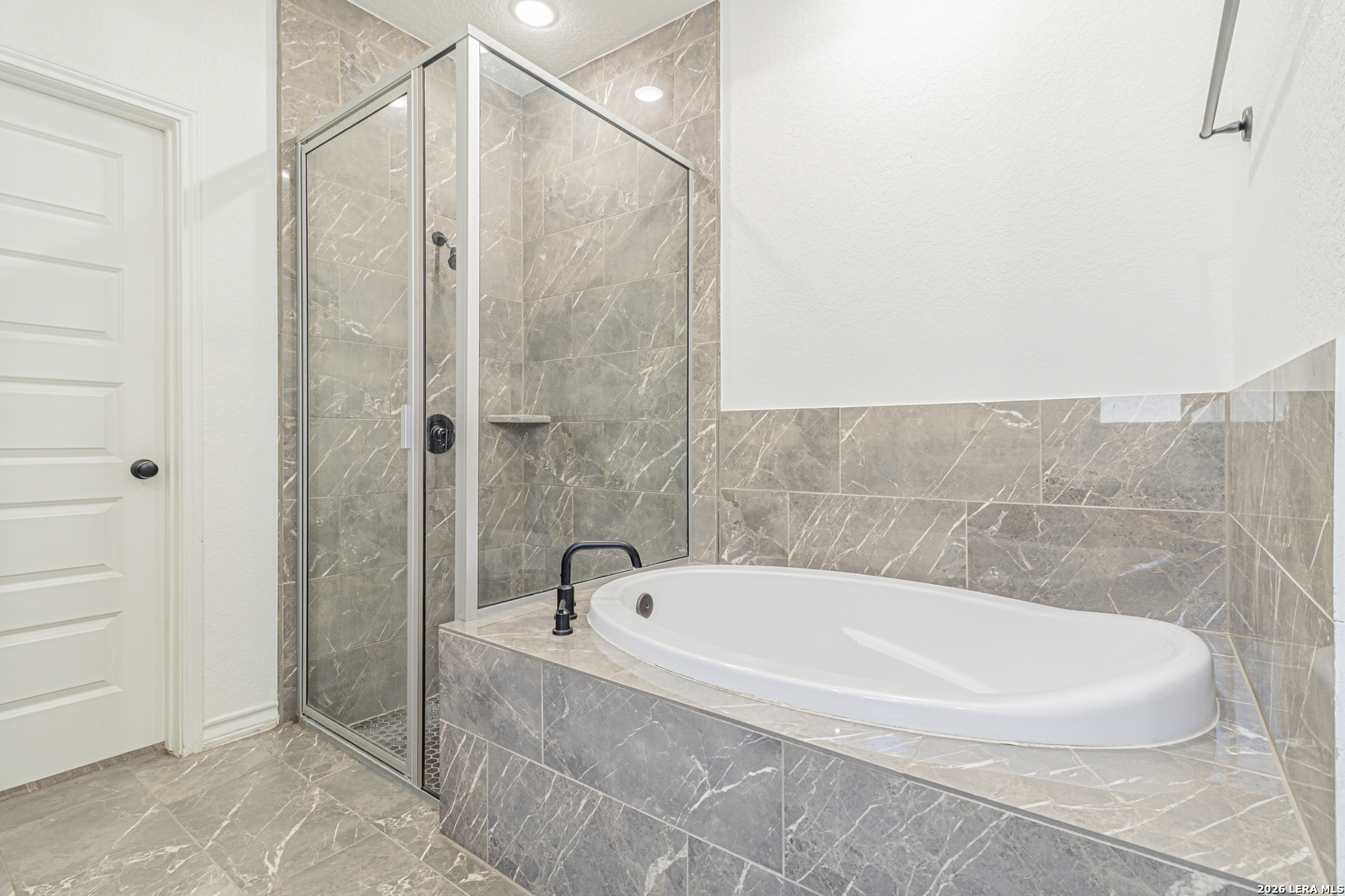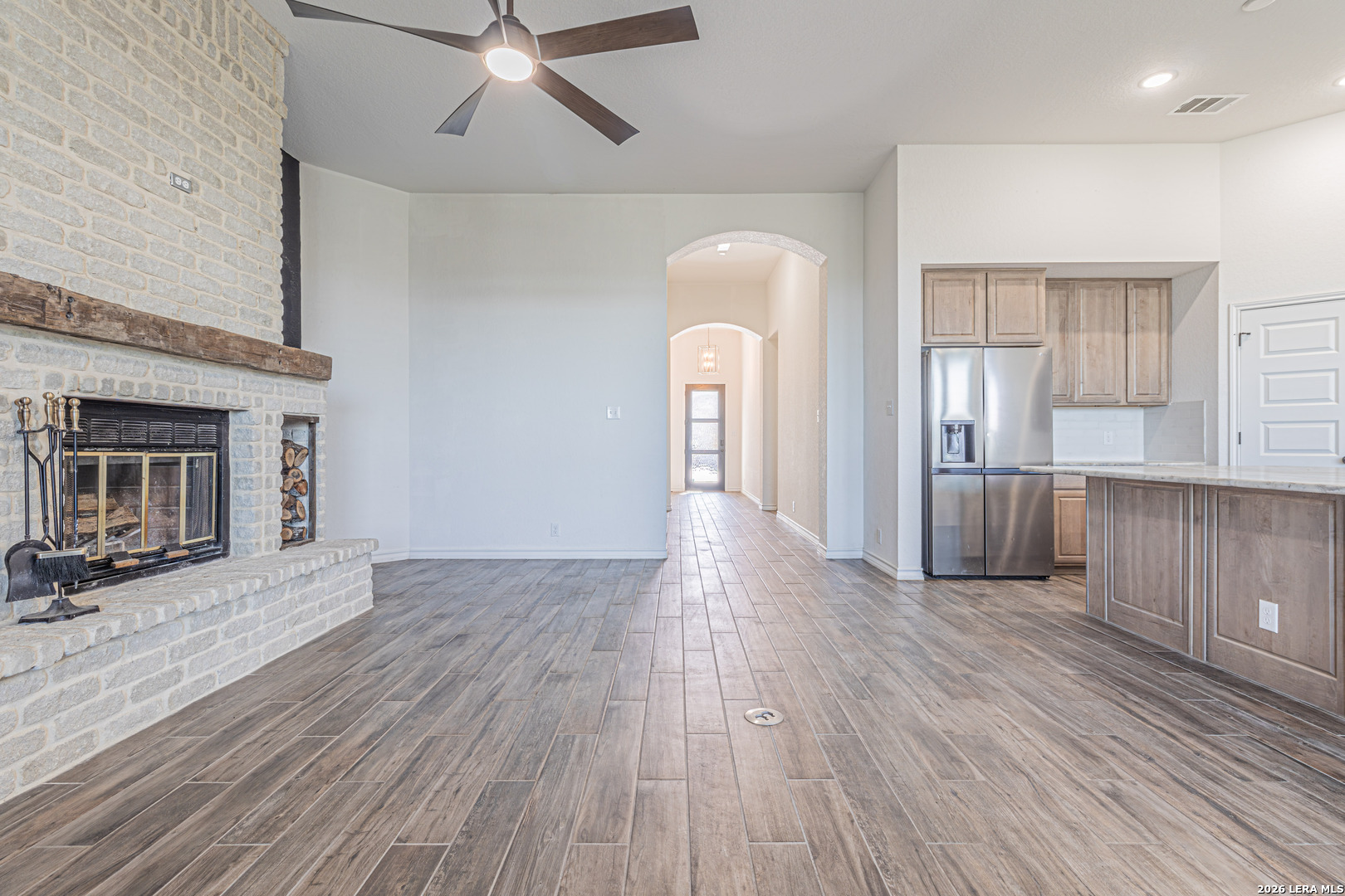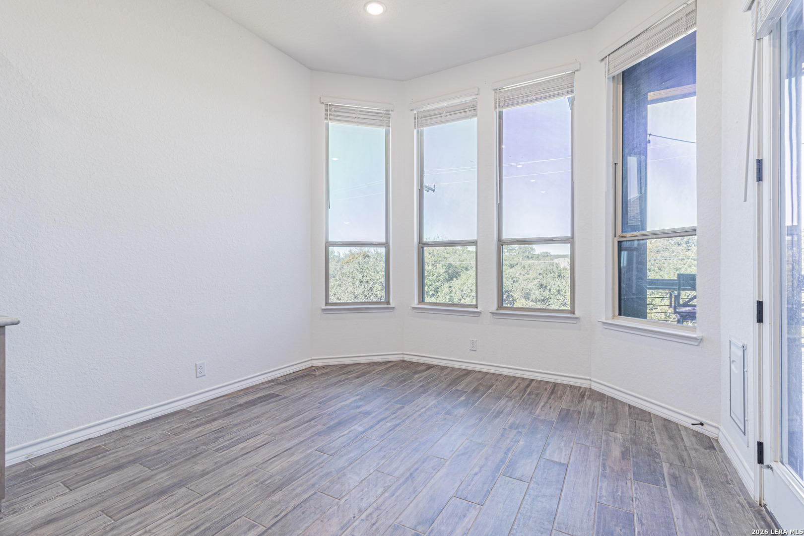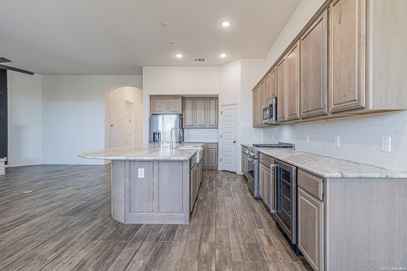 Built by Highland Homes - You will fall in love with this beautiful floorplan seated on a 50ft lot with open greenspace in the back. The treetop views from the primary bedroom and kitchen bay windows are unbeatable. This home features gorgeous granite countertops with a weathered-textured touch that makes this kitchen unique and timeless. The large, paneled island allows for ample seating and countertop space with a true farmhouse sink. Top of the line Kitchen aid gas stove, Wine refrigerator, Bosch Dishwasher, LG refrigerator, Custom built brick fireplace with Log storage. Wood tile throughout (no carpet in this home!) and black hardware throughout makes this home modern and versatile. Tankless water heater. Koi pond upfront. Two tier outside deck built with Trex decking. Built-in Gas grill hookup on patio. Backyard is perfect for low maintenance yet large enough for pets to run around. Do not miss these must-see views!