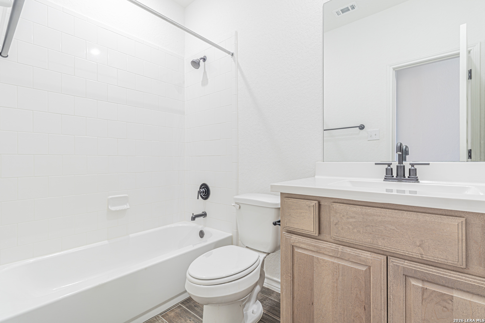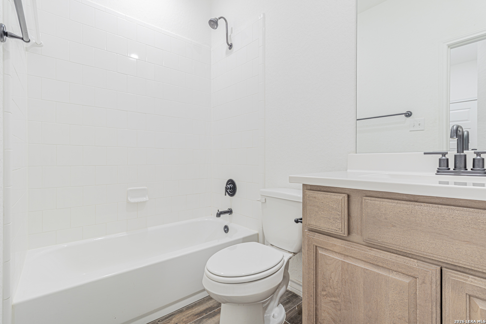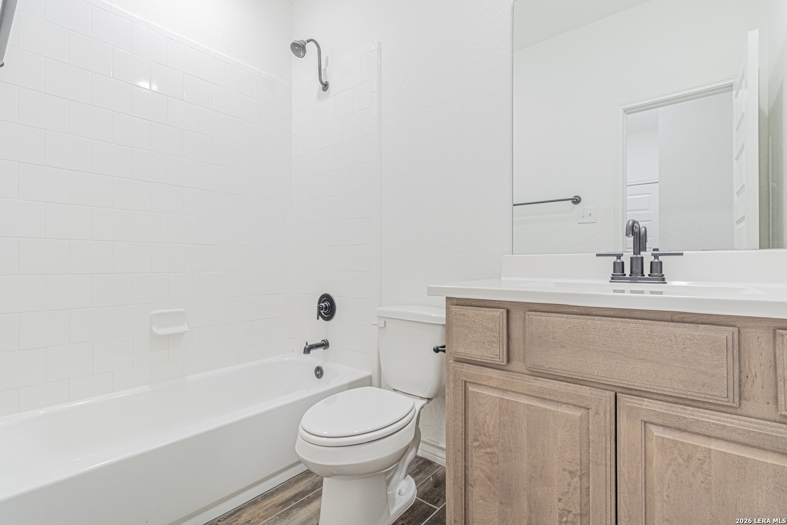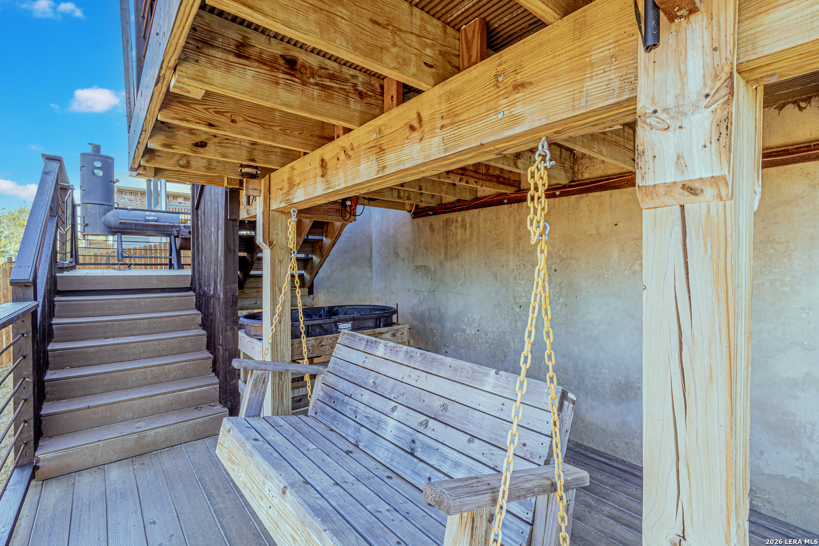 Built by Highland Homes - You will fall in love with this beautiful floorplan seated on a 50ft lot with open greenspace in the back. The treetop views from the primary bedroom and kitchen bay windows are unbeatable. This home features gorgeous granite countertops with a weathered-textured touch that makes this kitchen unique and timeless. The large, paneled island allows for ample seating and countertop space with a true farmhouse sink. Top of the line Kitchen aid gas stove, Wine refrigerator, Bosch Dishwasher, LG refrigerator, Custom built brick fireplace with Log storage. Wood tile throughout (no carpet in this home!) and black hardware throughout makes this home modern and versatile. Tankless water heater. Koi pond upfront. Two tier outside deck built with Trex decking. Built-in Gas grill hookup on patio. Backyard is perfect for low maintenance yet large enough for pets to run around. Do not miss these must-see views!