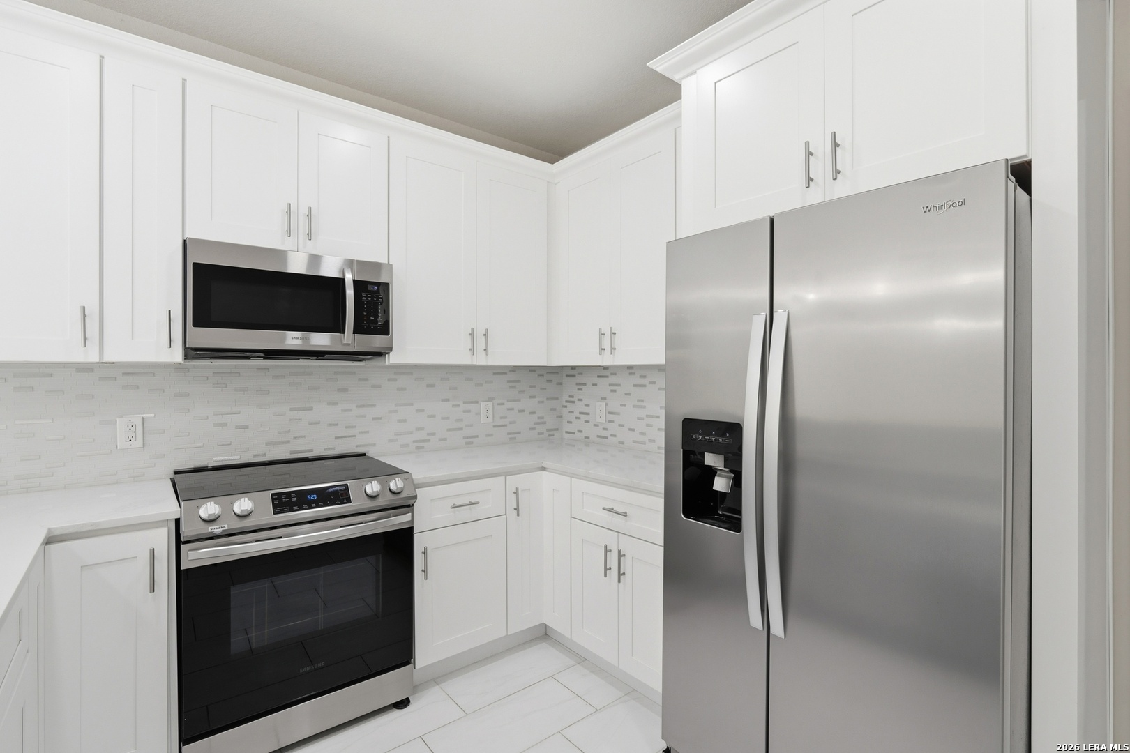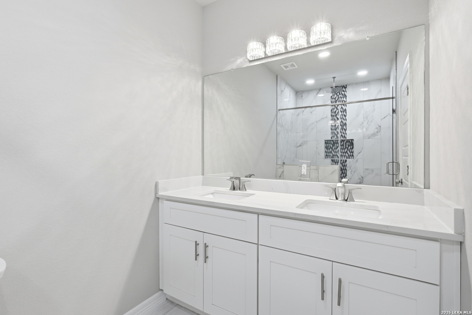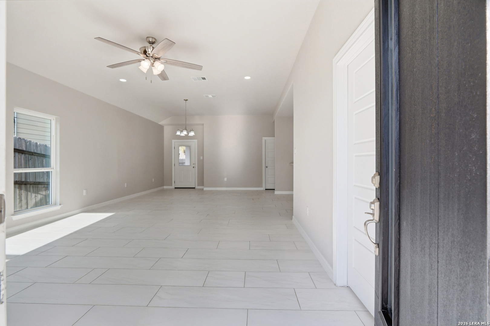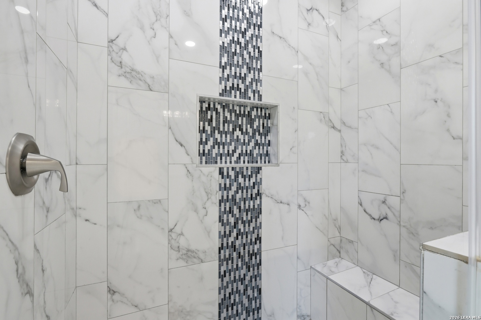 Single-story modern home in Canyon Lake featuring an open floor plan with recessed lighting throughout and abundant windows allowing natural light to fill the space. The kitchen showcases stainless steel appliances, a stylish tile backsplash, and a convenient breakfast bar. The primary bathroom offers a double vanity and a beautifully tiled shower. This home is designed with a metal roof, double-pane windows, and a programmable thermostat for comfort and efficiency. Enjoy country living just minutes from Canyon Lake with easy access to nearby boat ramps 6 and 7, plus many additional amenities. Flooring throughout is low-maintenance, with no carpet, providing a clean and modern feel.