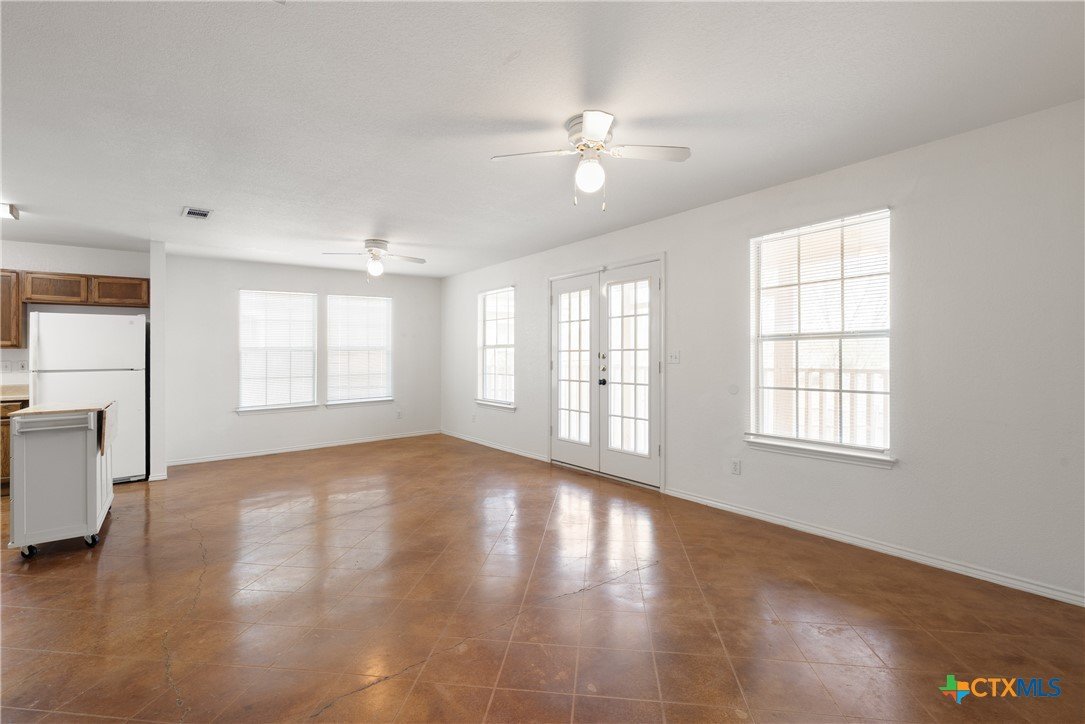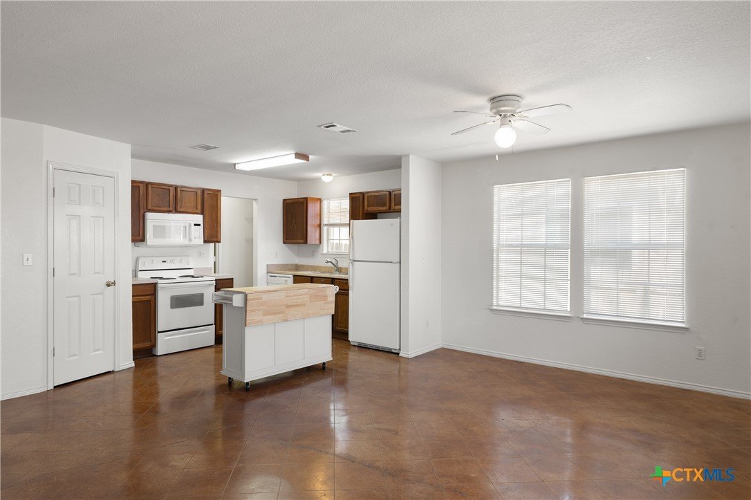 Charming and move-in ready 2-bedroom, 2 full bath home in the desirable Hills of Hays Phase 2 subdivision in San Marcos. Designed for easy living, this home features concrete stained flooring throughout — no carpet — making maintenance simple and stress-free. The open-concept layout creates a welcoming flow between the living room, dining area, and kitchen, perfect for everyday comfort or hosting friends and family. The kitchen comes fully equipped with dishwasher, electric range/oven, built-in microwave, and refrigerator — all conveying with the home. Step outside to your screened-in back porch — the perfect spot for morning coffee or evening relaxation — overlooking peaceful country views and a large, private fenced backyard with plenty of room to garden, entertain, or simply unwind under the Texas sky. An excellent opportunity for first-time buyers looking for affordability and low maintenance, or for investors seeking a strong rental property in a growing San Marcos market. Comfort, privacy, and relaxed Hill Country living — all just minutes from shopping, dining, and local amenities.