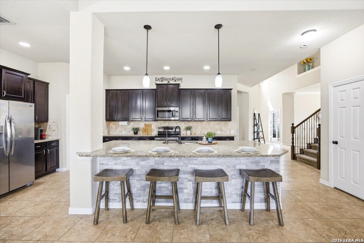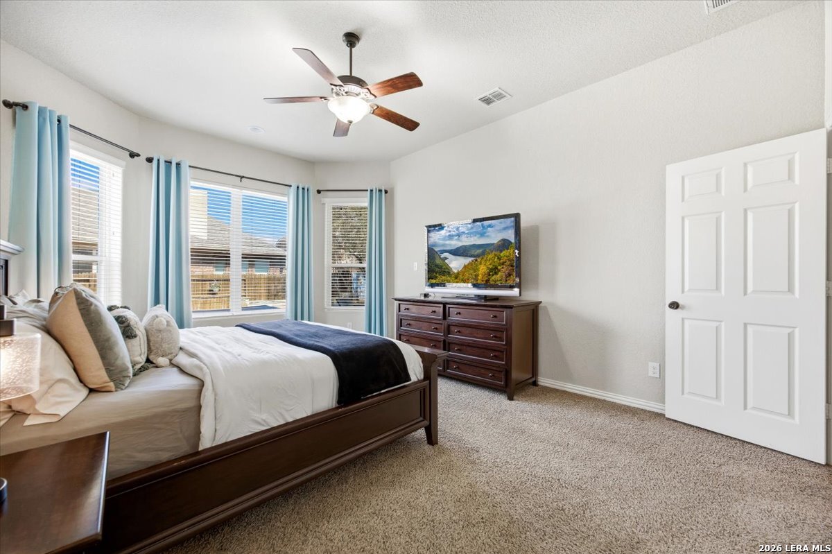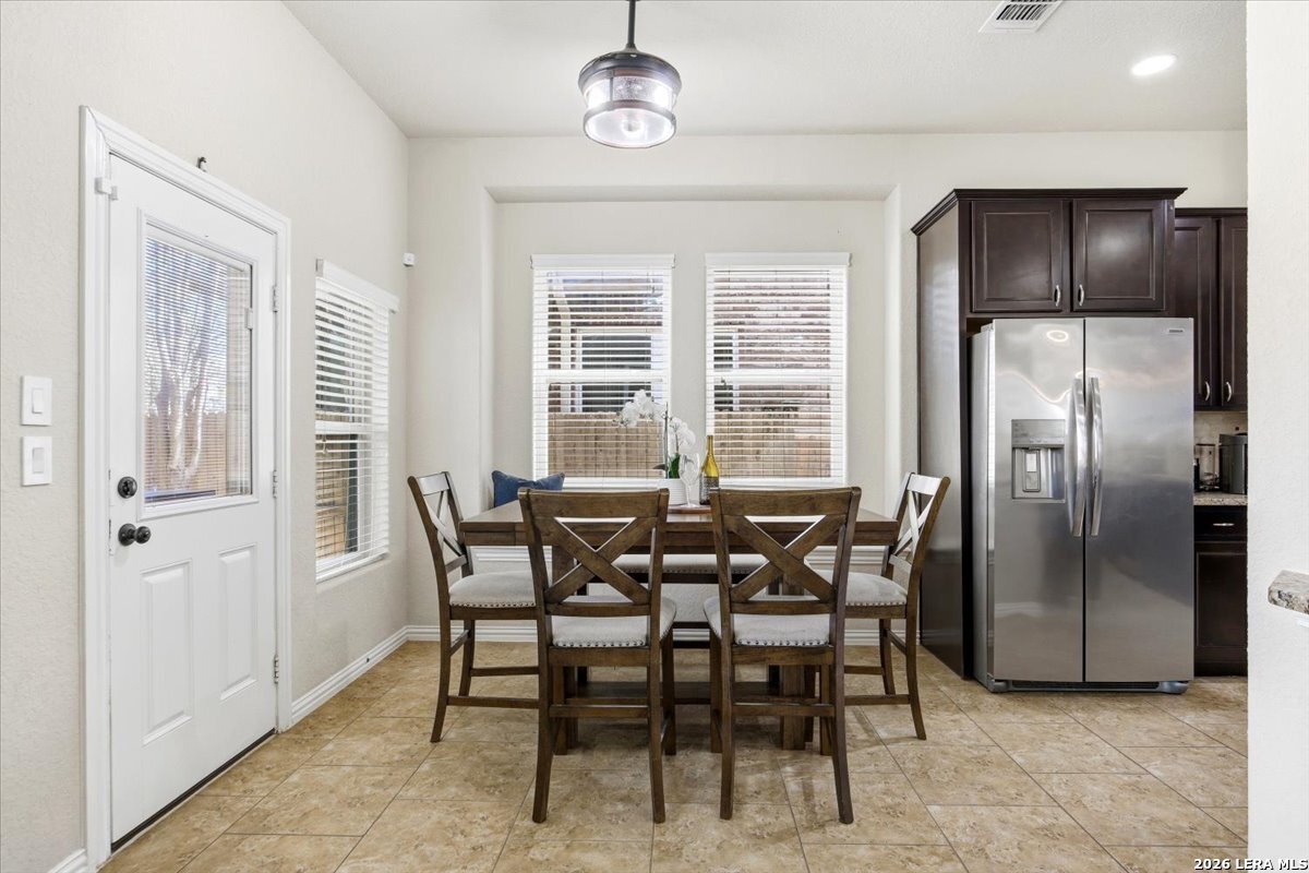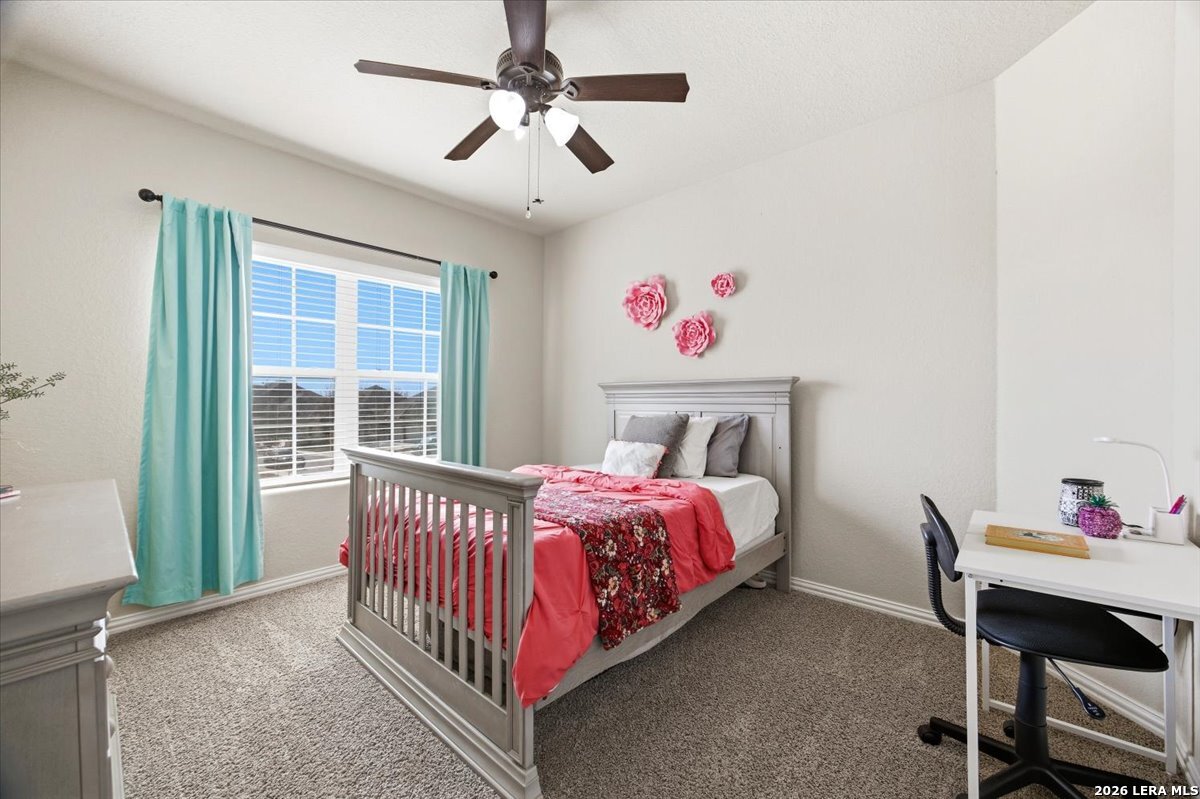 Welcome to your private outdoor oasis in a desirable gated community, offering space, upgrades, and an unbeatable location with easy commute to Lackland Air Force Base, downtown or any of the area activities. This move-in ready home sits on a HUGE lot with endless possibilities-plenty of room for pets, kids, a fire pit, trampoline, or even future additions. The backyard is designed for relaxation and entertaining, featuring a stunning 3-6 ft pool with waterfalls and tanning ledges, a covered patio, mature shade trees, and low-maintenance artificial turf for year-round beauty without the upkeep. Exterior security cameras add an extra layer of peace of mind. Inside, you'll love the open floor plan with soaring ceilings and abundant natural light. Just off the entry is a designated office with elegant glass French doors, perfect for working from home in style and privacy, along with a formal dining room ideal for hosting holidays and special gatherings. The oversized kitchen is truly the heart of the home, showcasing granite countertops, a massive island, walk-in pantry, and spacious eat-in dining area-perfect for everyday living and entertaining alike. The primary suite offers a private retreat with a spa-inspired ensuite bath including dual vanities, a walk-in shower, soaking tub, and a dream-sized walk-in closet. Upstairs, enjoy a fun and flexible second living space plus generously sized secondary bedrooms with neutral paint throughout. The 3-car epoxied garage includes a Tesla Wall Charger and extended length to accommodate larger trucks. Major updates provide peace of mind, including a new roof (1/26), reverse osmosis system serviced (9/25), AC compressor replacement in 2021 and professional maintenance by RopeSA LLC, and water heater flushed (8/25). Thoughtful upgrades like a butcher block counter and additional storage in the spacious laundry room, and motion sensor lighting in the bathrooms make everyday living easy. Meticulously maintained and thoughtfully upgraded, this home blends comfort, efficiency, and style in a prime location close to shopping, dining, and entertainment. If you're looking for space, function, and a resort-style backyard-all in a secure community-this is the one to call home.
