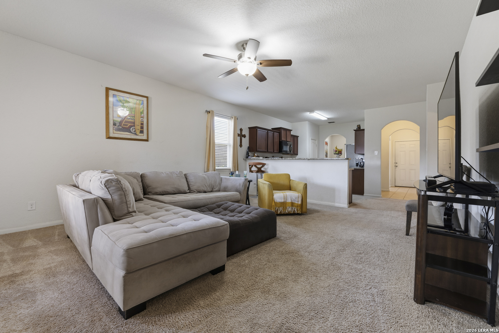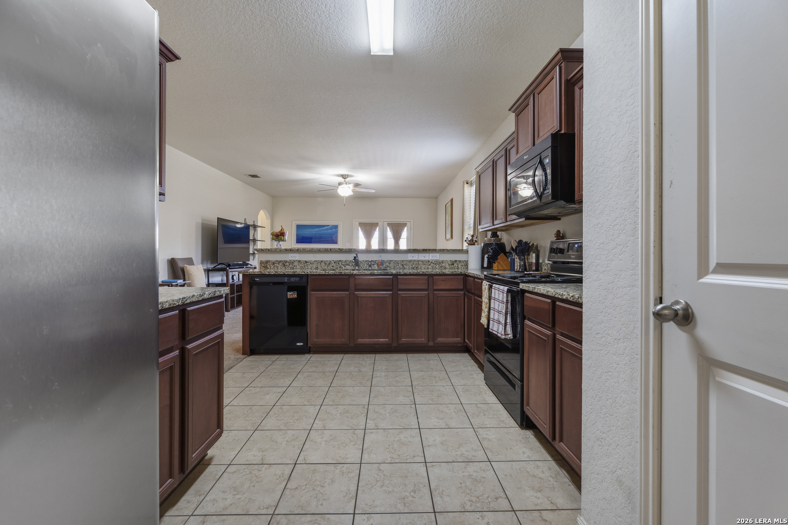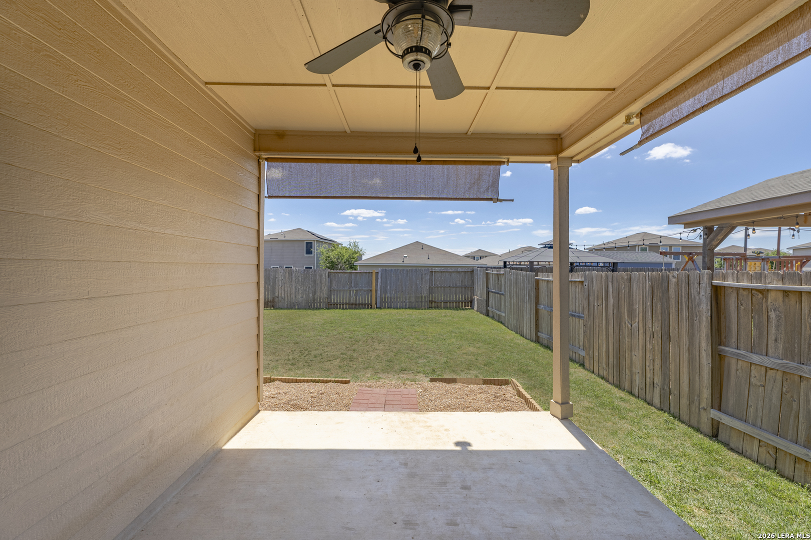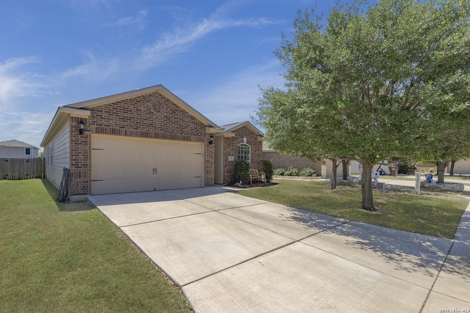 Welcome to you well-maintained 3/2/2 home that blends comfort, functionality, and everyday livability. This inviting property features a bright, open-concept layout with abundant natural light, creating a warm and welcoming atmosphere from the moment you step inside. The spacious living area flows seamlessly into the dining space and kitchen, making it ideal for both relaxing evenings and entertaining guests. The kitchen offers ample cabinetry and beautiful granite counter space, perfect for meal prep and gathering with family and friends.The appliances are black, to play offer the counter tops and stainless steel refrigerator. The primary suite provides a peaceful retreat with generous space, with a full bath that features a separate sower and garden tub, while the additional bedrooms are versatile and well-sized-ideal for family, guests, or a home office. Outside, enjoy a private backyard with room to unwind, garden, or host weekend BBQs. Take advantage of the park, the fishing from the pond, splash pad and walking trails. Conveniently located near shopping, dining, and major highways, this home offers easy access to everything San Antonio has to offer while still providing a quiet neighborhood feel. Whether you're a first-time buyer, downsizing, or looking for a solid investment opportunity, this property is full of potential and ready to welcome you home.