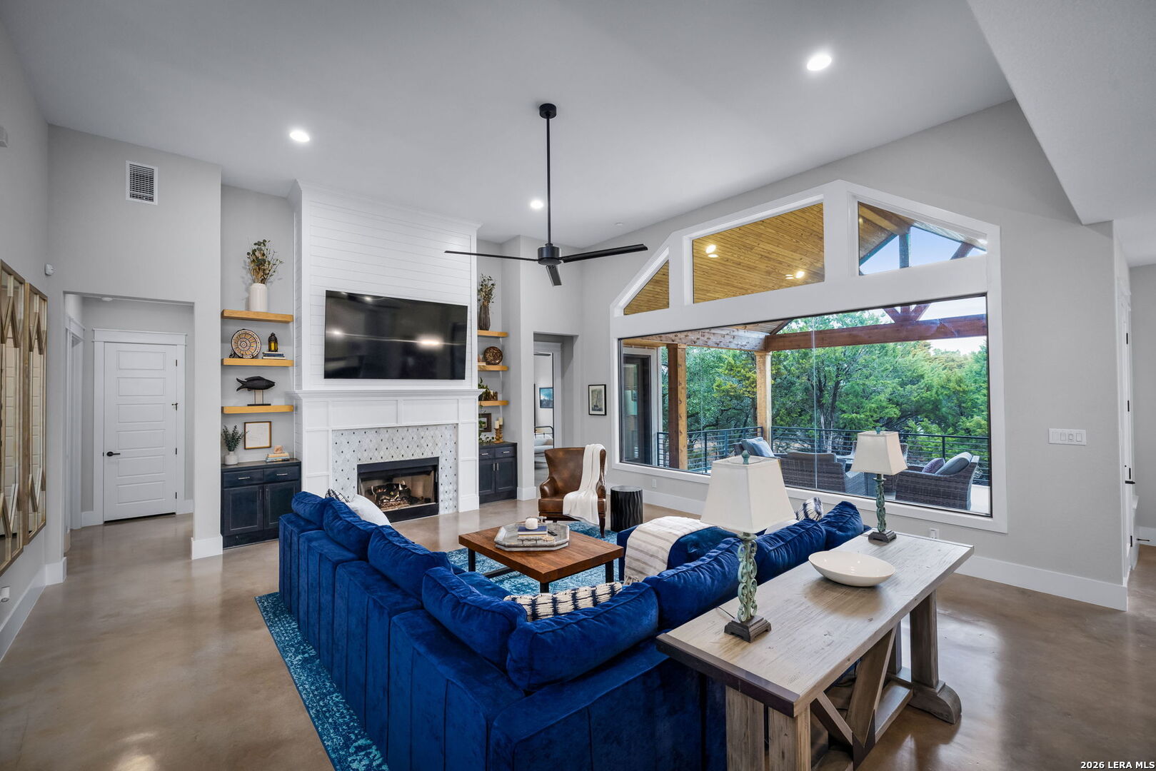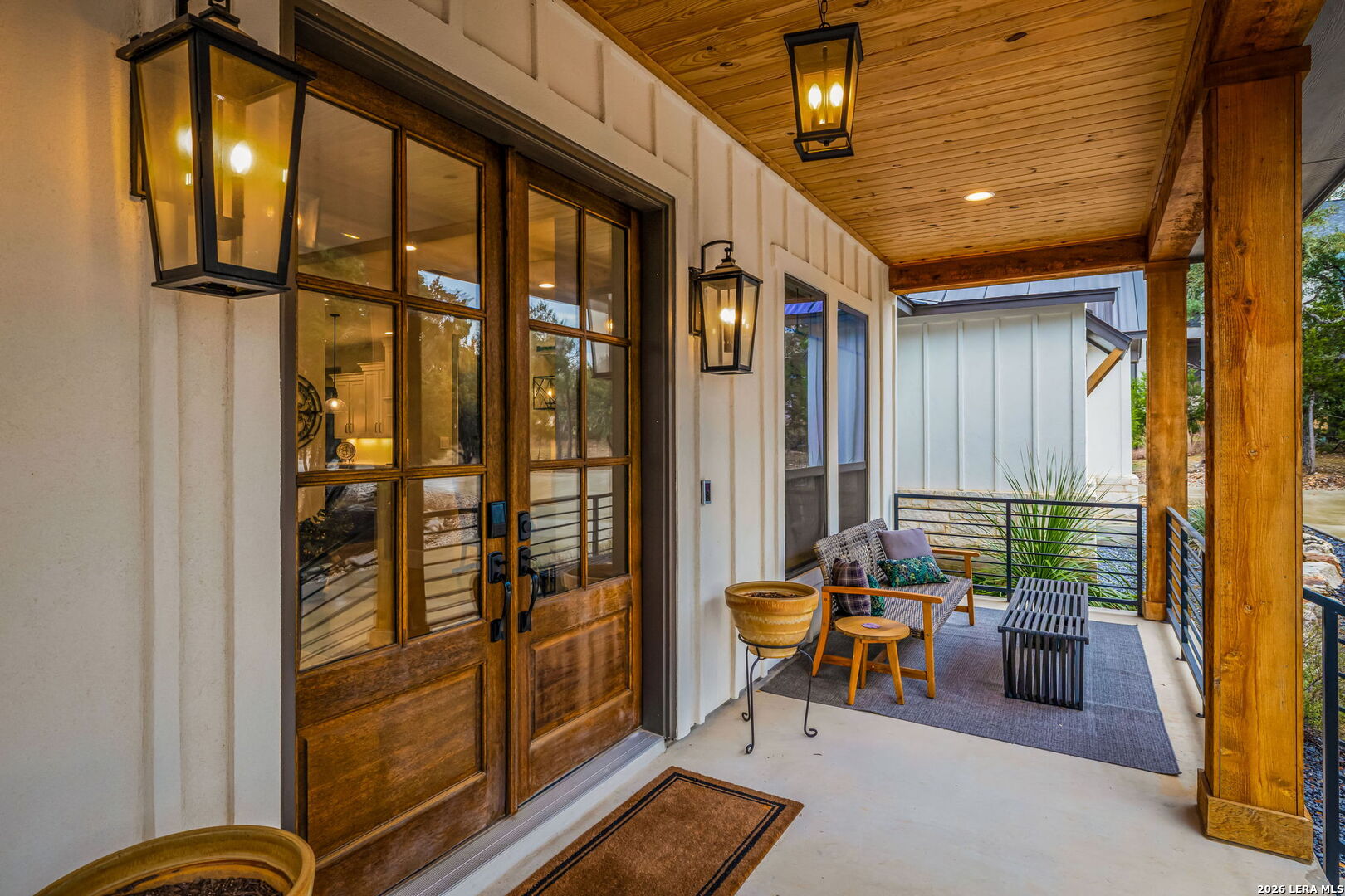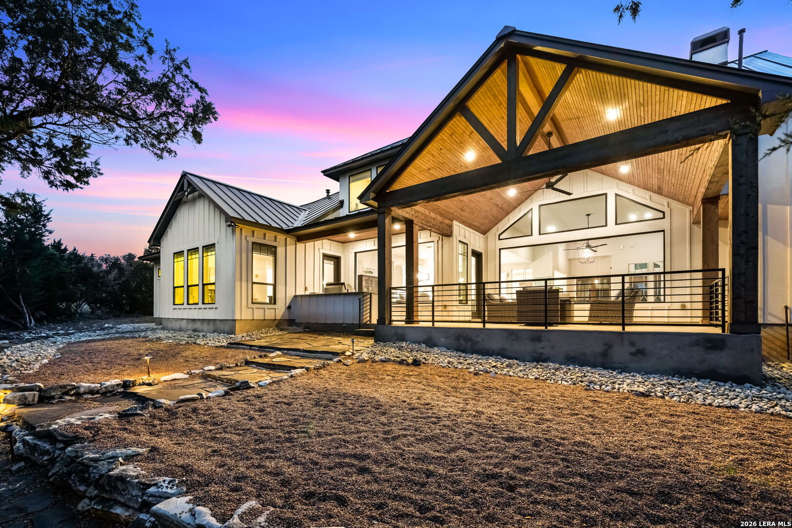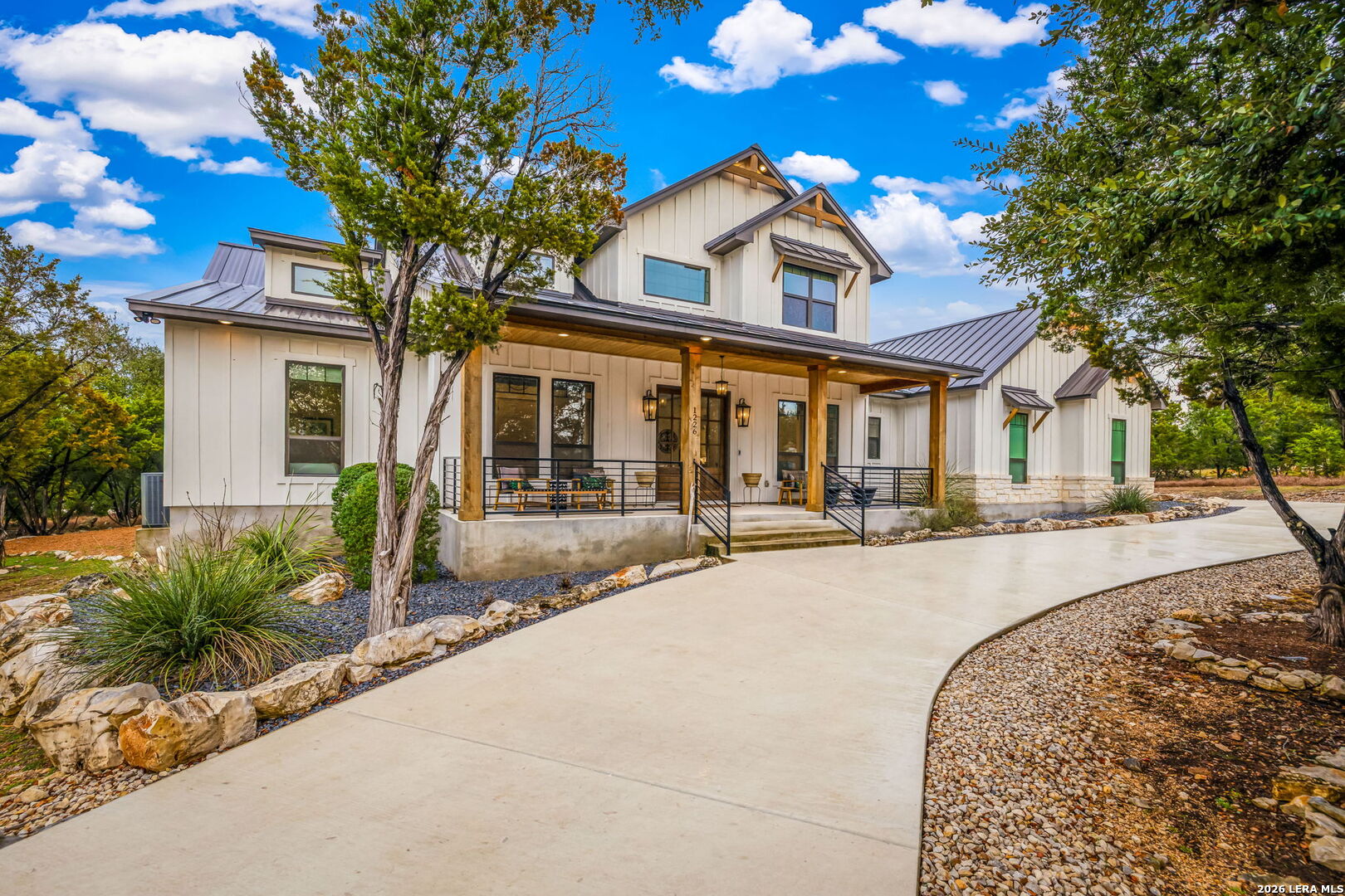 Stunning custom home by award winning Kurk Homes seamlessly blends Texas Hill Country character with a refined transitional modern aesthetic. The striking exterior is thoughtfully designed with Austin stone, vertical stucco banding, accent wood beams, and a timeless metal roof, creating exceptional curb appeal and architectural presence. Inside, the home is rich with custom details, including pine tongue-and-groove ceilings showcased in the outdoor living areas and the dramatic two-story foyer, adding warmth, texture, and visual interest throughout. Grand wooden entry doors welcome you into an open, light-filled floor plan designed for both everyday comfort and elevated entertaining, with carefully curated finishes and craftsmanship evident at every turn. The great room is anchored by a breathtaking wall of butted glass that frames views of the oversized covered outdoor living space and the private, oak-filled cul-de-sac lot beyond, seamlessly connecting indoor and outdoor living while flooding the space with natural light. This intentional design creates a tranquil setting that highlights the surrounding mature trees and enhances the sense of privacy and serenity. The gourmet kitchen is a dream for entertainers and home chefs alike, featuring premium GE Monogram appliances that complement the oversized island, elegant quartz countertops, a walk-in pantry, and abundant additional storage that enhances both form and function. Designed to be the heart of the home, the kitchen flows effortlessly into the main living areas, making it ideal for hosting gatherings large and small. The owner's retreat is privately situated in its own wing, offering a peaceful escape from the main living spaces and a layout designed with comfort in mind. The spacious primary suite provides room to unwind, while the expansive walk-in closet with a center island offers exceptional organization and storage. The laundry room is conveniently connected directly to the primary closet, adding everyday ease and thoughtful functionality to the home's design. Outdoor living continues to impress with a generously sized covered patio and a fully equipped outdoor kitchen complete with a gas grill and sink, creating the perfect setting for year-round entertaining, weekend cookouts, and relaxed evenings with family and friends. The private backyard, surrounded by mature oak trees, offers a quiet retreat with ample space to enjoy the Hill Country lifestyle. Architectural details and material selections work in harmony to create a cohesive and timeless environment that feels both elevated and welcoming. From the flow of the floor plan to the connection with the outdoors, each space has been carefully considered to support modern living while honoring classic Hill Country influences. Natural light, thoughtful proportions, and quality finishes combine to create a home that lives beautifully and feels effortlessly refined. Set on a quiet cul-de-sac lot and surrounded by natural beauty, this residence delivers an elevated living experience that balances sophistication, comfort, and everyday livability. Thoughtfully designed, beautifully finished, and exceptionally well appointed, this remarkable property offers a rare opportunity to enjoy luxury Hill Country living in a home built to stand the test of time and designed to be enjoyed for years to come by those who value quality, comfort, craftsmanship, and enduring style. This residence reflects careful planning, attention to detail, and a commitment to creating spaces that feel both functional and inspiring for daily life while offering the flexibility to host and gather with ease. Every finish, material, and design choice was selected to enhance longevity, comfort, and visual appeal, ensuring the home remains timeless and welcoming for future owners. The result is a home that feels intentional, warm, and truly special from the moment you arrive. It is a rare offering in today's market. Quality is evident throughout.