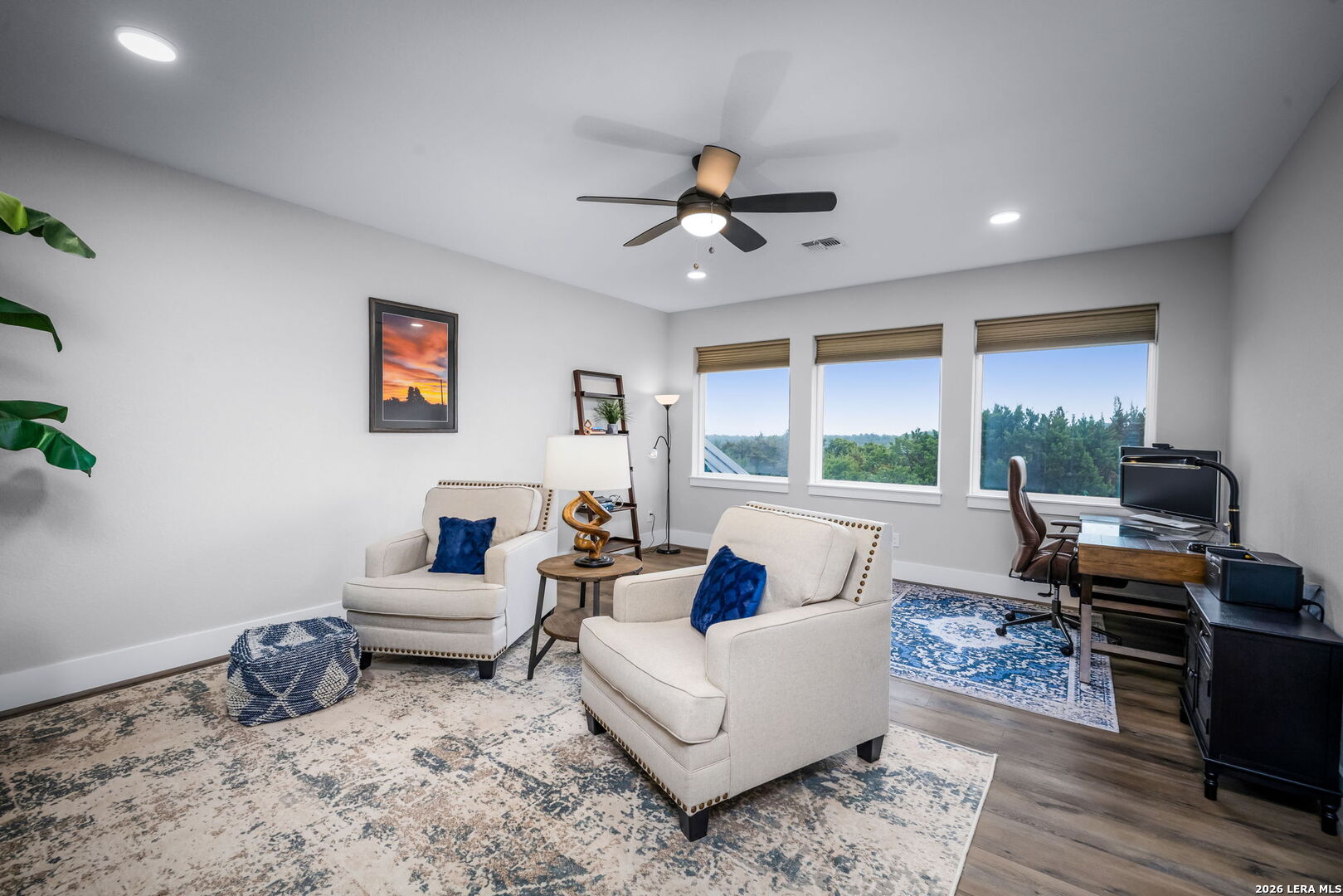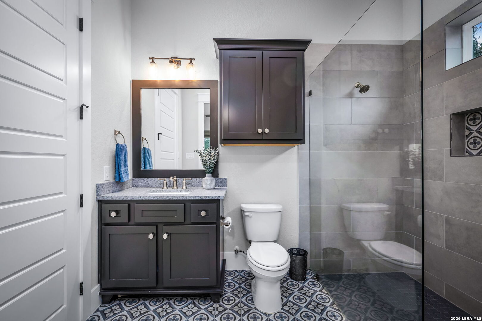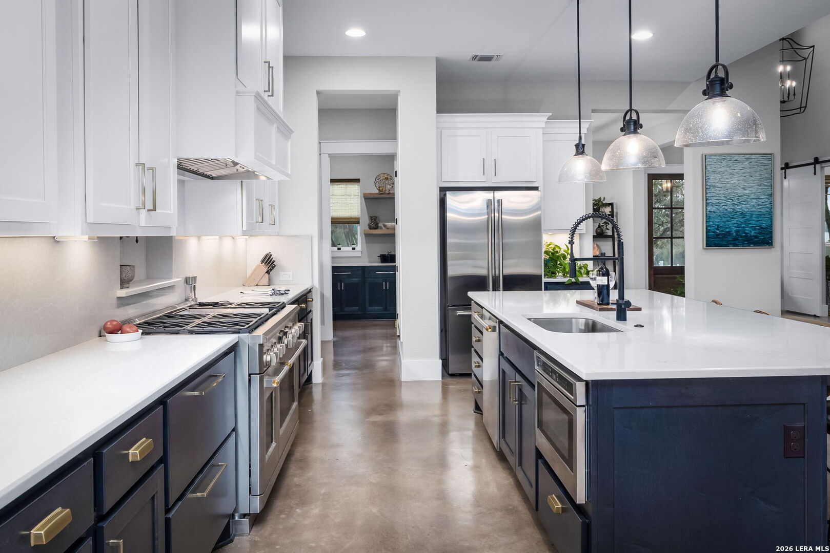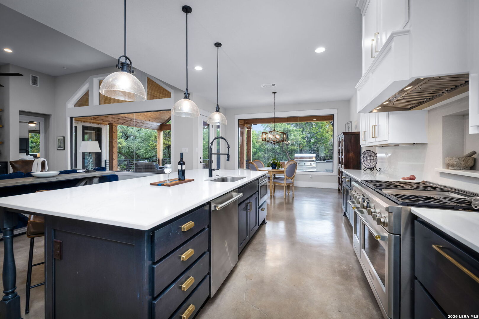 Stunning custom home by award winning Kurk Homes seamlessly blends Texas Hill Country character with a refined transitional modern aesthetic. The striking exterior is thoughtfully designed with Austin stone, vertical stucco banding, accent wood beams, and a timeless metal roof, creating exceptional curb appeal and architectural presence. Inside, the home is rich with custom details, including pine tongue-and-groove ceilings showcased in the outdoor living areas and the dramatic two-story foyer, adding warmth, texture, and visual interest throughout. Grand wooden entry doors welcome you into an open, light-filled floor plan designed for both everyday comfort and elevated entertaining, with carefully curated finishes and craftsmanship evident at every turn. The great room is anchored by a breathtaking wall of butted glass that frames views of the oversized covered outdoor living space and the private, oak-filled cul-de-sac lot beyond, seamlessly connecting indoor and outdoor living while flooding the space with natural light. This intentional design creates a tranquil setting that highlights the surrounding mature trees and enhances the sense of privacy and serenity. The gourmet kitchen is a dream for entertainers and home chefs alike, featuring premium GE Monogram appliances that complement the oversized island, elegant quartz countertops, a walk-in pantry, and abundant additional storage that enhances both form and function. Designed to be the heart of the home, the kitchen flows effortlessly into the main living areas, making it ideal for hosting gatherings large and small. The owner's retreat is privately situated in its own wing, offering a peaceful escape from the main living spaces and a layout designed with comfort in mind. The spacious primary suite provides room to unwind, while the expansive walk-in closet with a center island offers exceptional organization and storage. The laundry room is conveniently connected directly to the primary closet, adding everyday ease and thoughtful functionality to the home's design. Outdoor living continues to impress with a generously sized covered patio and a fully equipped outdoor kitchen complete with a gas grill and sink, creating the perfect setting for year-round entertaining, weekend cookouts, and relaxed evenings with family and friends. The private backyard, surrounded by mature oak trees, offers a quiet retreat with ample space to enjoy the Hill Country lifestyle. Architectural details and material selections work in harmony to create a cohesive and timeless environment that feels both elevated and welcoming. From the flow of the floor plan to the connection with the outdoors, each space has been carefully considered to support modern living while honoring classic Hill Country influences. Natural light, thoughtful proportions, and quality finishes combine to create a home that lives beautifully and feels effortlessly refined. Set on a quiet cul-de-sac lot and surrounded by natural beauty, this residence delivers an elevated living experience that balances sophistication, comfort, and everyday livability. Thoughtfully designed, beautifully finished, and exceptionally well appointed, this remarkable property offers a rare opportunity to enjoy luxury Hill Country living in a home built to stand the test of time and designed to be enjoyed for years to come by those who value quality, comfort, craftsmanship, and enduring style. This residence reflects careful planning, attention to detail, and a commitment to creating spaces that feel both functional and inspiring for daily life while offering the flexibility to host and gather with ease. Every finish, material, and design choice was selected to enhance longevity, comfort, and visual appeal, ensuring the home remains timeless and welcoming for future owners. The result is a home that feels intentional, warm, and truly special from the moment you arrive. It is a rare offering in today's market. Quality is evident throughout.