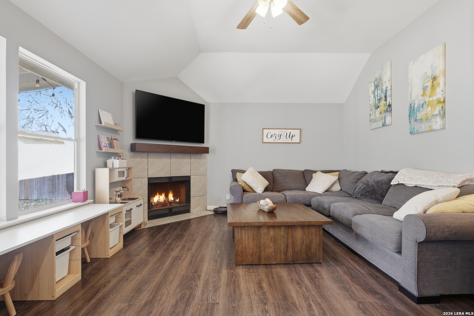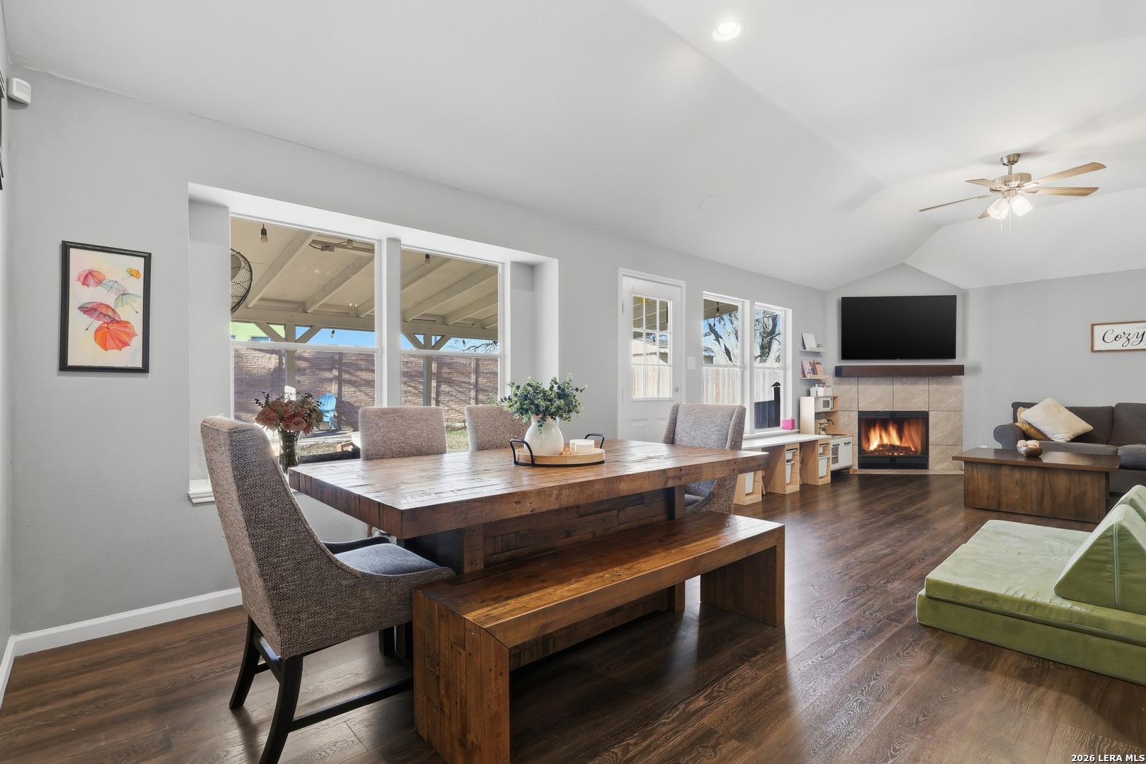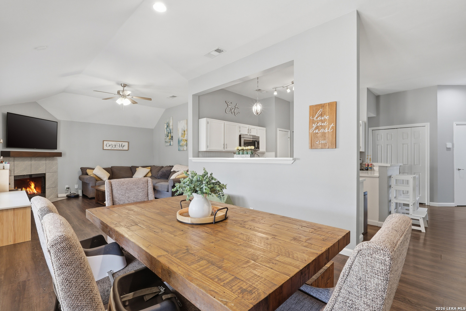 Move-in ready home featuring a welcoming foyer that opens to a versatile space-perfect for a cozy sitting area or a home office. The path leads to a beautiful kitchen equipped with stainless steel appliances. The dining room flows openly into the living room, making it ideal for entertaining, and you'll enjoy a cozy fireplace in the living area. All bedrooms are generously sized. The primary bedroom has a refreshed ensuite with modern sinks, a soaking tub, a separate shower, and a walk-in closet. The private backyard offers a large covered patio, a relaxing fire pit, and a storage shed for all your yard needs. Dove Meadow community features a spacious pool, a community center, and an outdoor playground.