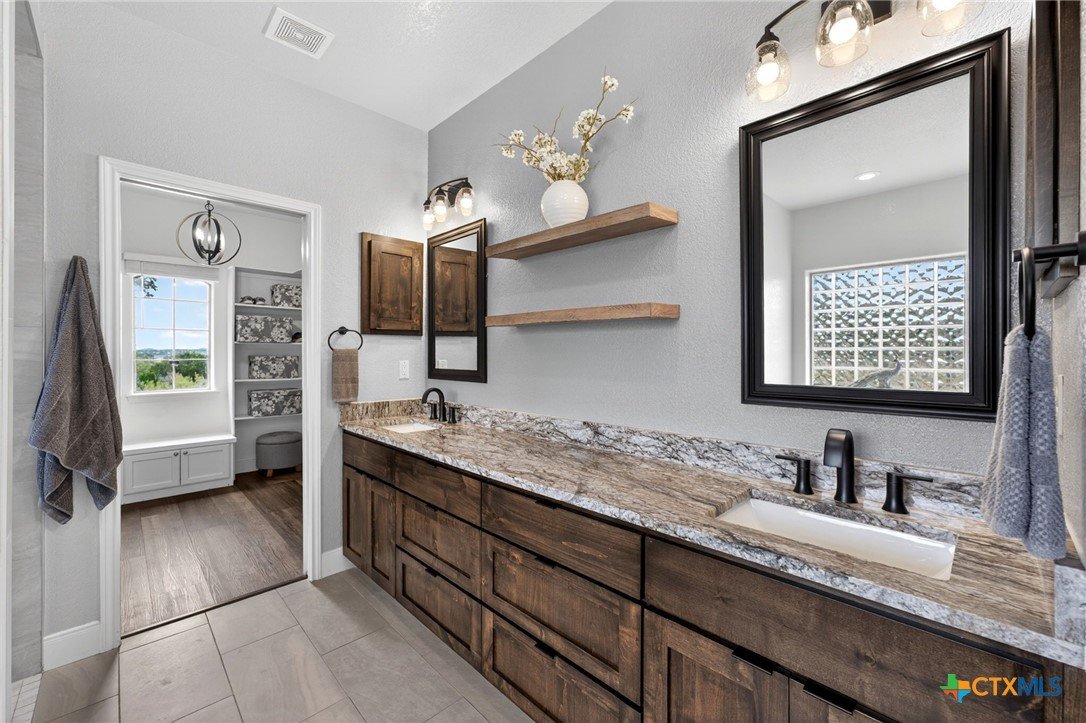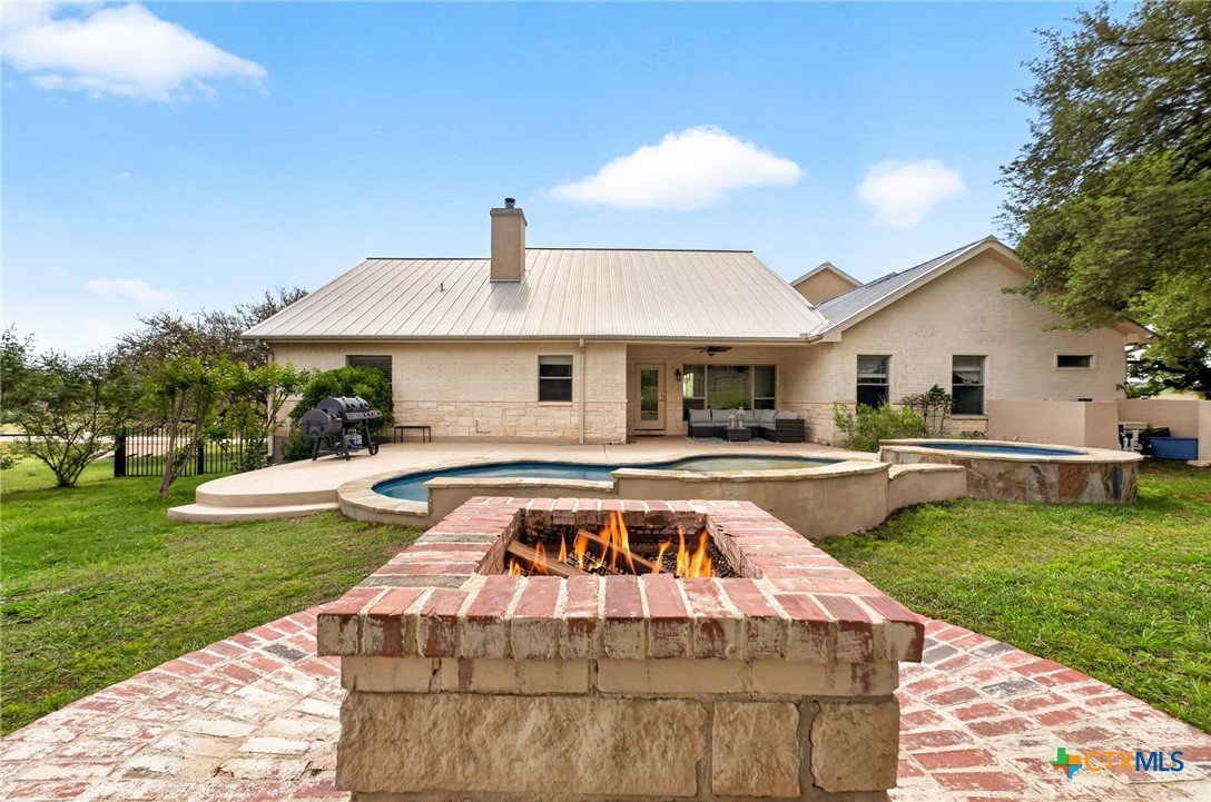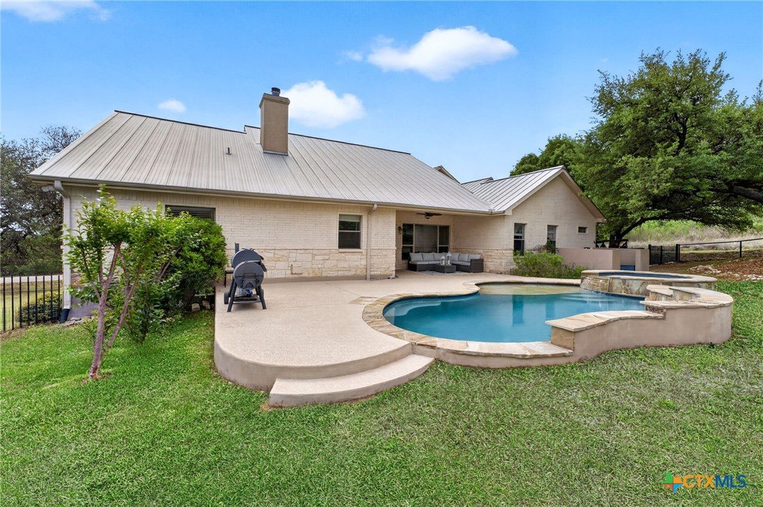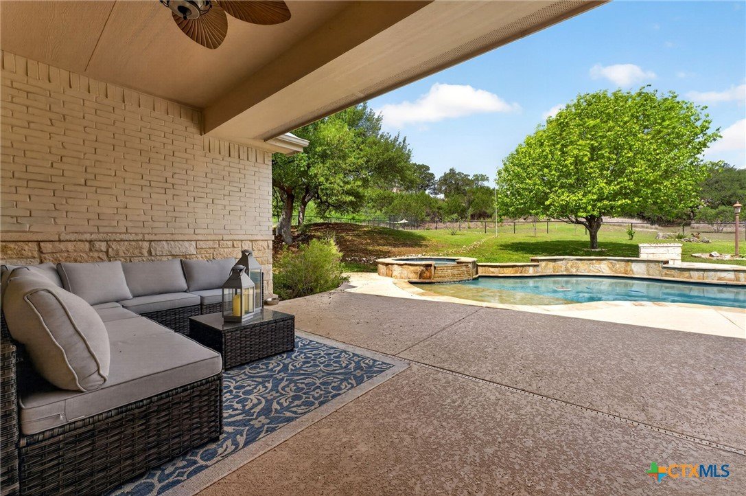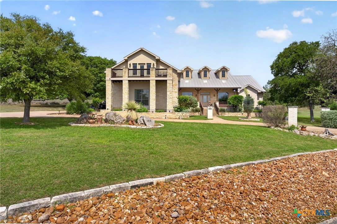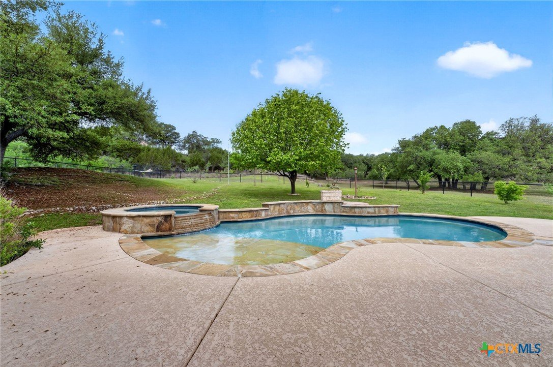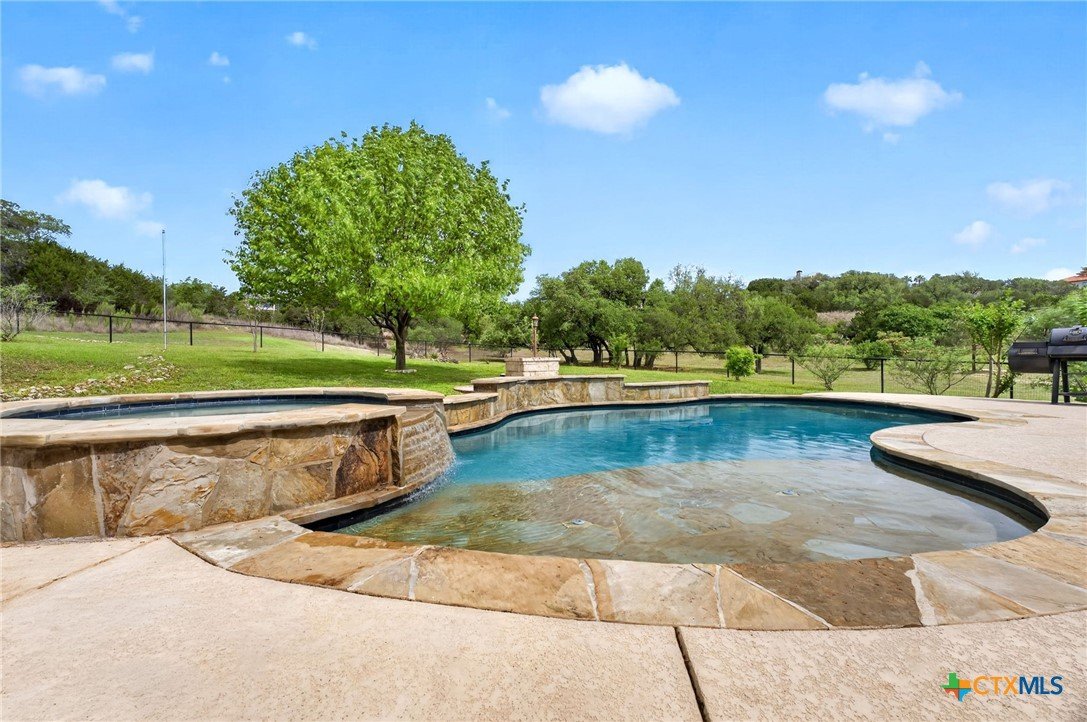 Welcome to 123 Grosbeak in the heart of Spring Branch—where thoughtful design meets Hill Country luxury. This stunning 4-bedroom, 2.5-bath home offers 3,240 square feet of beautifully designed living space, all nestled on over 3 pristine acres. Enjoy breathtaking views of Canyon Lake from your own private balcony, creating the perfect backdrop for morning coffee or evening sunsets. Step inside to discover luxury flooring that flows seamlessly throughout the home, leading you into an inviting living area anchored by a beautiful fireplace—ideal for both relaxing and entertaining. The layout is as functional as it is charming, featuring a unique hidden room that adds character and versatility. Upstairs, you’ll find expansive wraparound storage with easy access, making organization effortless without compromising style. A dedicated media room provides the perfect setting for movie nights, game days, or hosting guests. Adding to the lifestyle appeal, this home is within walking distance to the neighborhood river clubhouse—perfect for enjoying the outdoors and connecting with the community. Outdoors, the property truly shines. Experience Texas living at its finest with a gorgeous pool surrounded by wide-open skies and serene Hill Country views. Whether hosting gatherings or enjoying quiet time at home, this space is designed to impress. With its rare combination of acreage, custom features, community amenities, and stunning Canyon Lake views, this home is a standout opportunity you won’t want to miss.