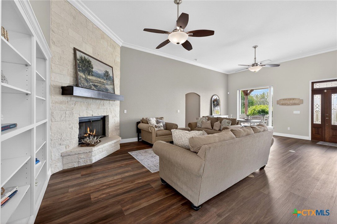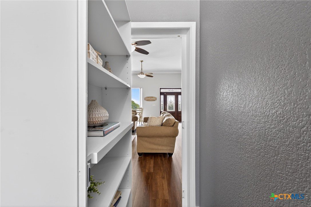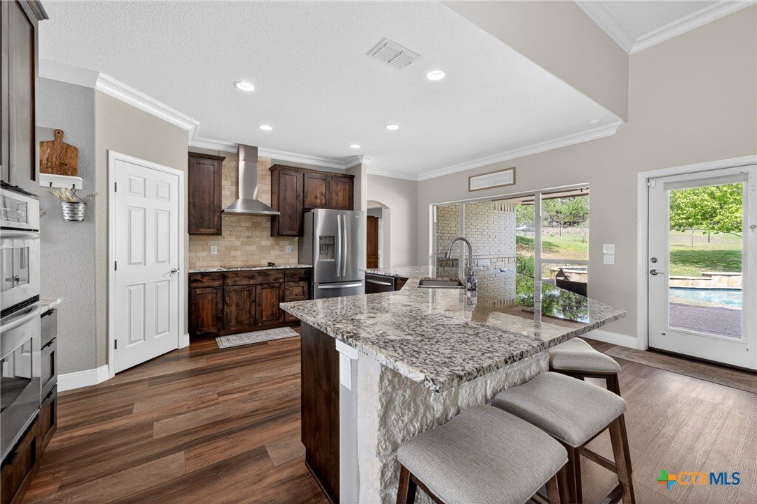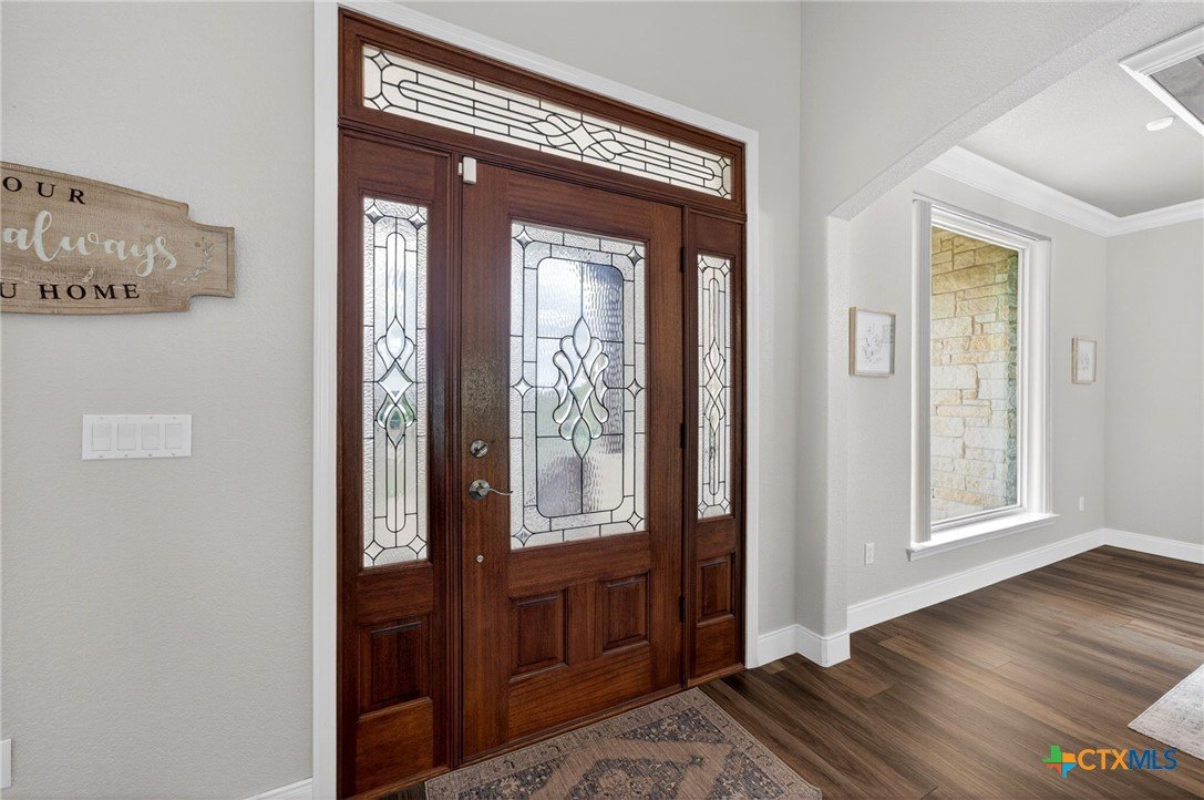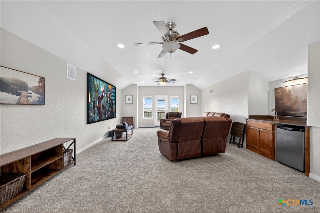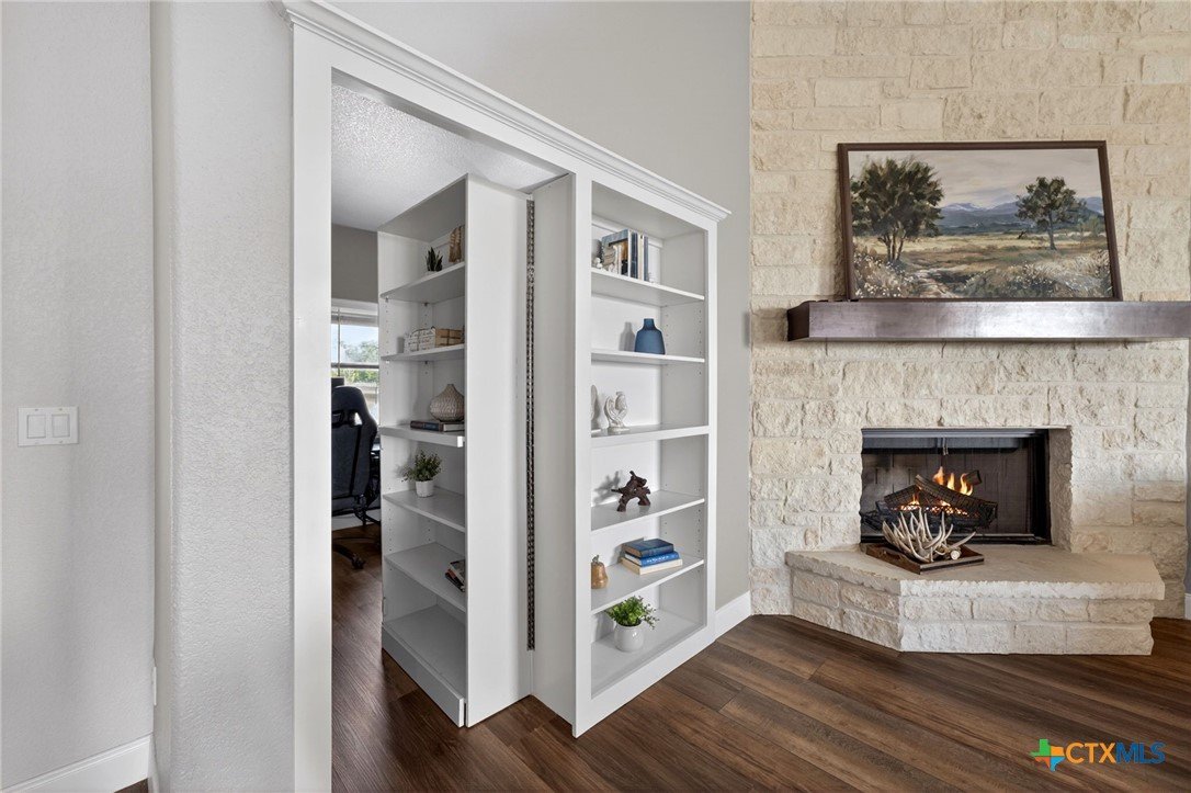 Welcome to 123 Grosbeak in the heart of Spring Branch—where thoughtful design meets Hill Country luxury. This stunning 4-bedroom, 2.5-bath home offers 3,240 square feet of beautifully designed living space, all nestled on over 3 pristine acres. Enjoy breathtaking views of Canyon Lake from your own private balcony, creating the perfect backdrop for morning coffee or evening sunsets. Step inside to discover luxury flooring that flows seamlessly throughout the home, leading you into an inviting living area anchored by a beautiful fireplace—ideal for both relaxing and entertaining. The layout is as functional as it is charming, featuring a unique hidden room that adds character and versatility. Upstairs, you’ll find expansive wraparound storage with easy access, making organization effortless without compromising style. A dedicated media room provides the perfect setting for movie nights, game days, or hosting guests. Adding to the lifestyle appeal, this home is within walking distance to the neighborhood river clubhouse—perfect for enjoying the outdoors and connecting with the community. Outdoors, the property truly shines. Experience Texas living at its finest with a gorgeous pool surrounded by wide-open skies and serene Hill Country views. Whether hosting gatherings or enjoying quiet time at home, this space is designed to impress. With its rare combination of acreage, custom features, community amenities, and stunning Canyon Lake views, this home is a standout opportunity you won’t want to miss.