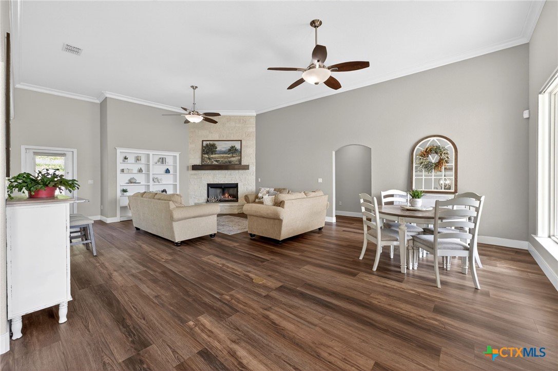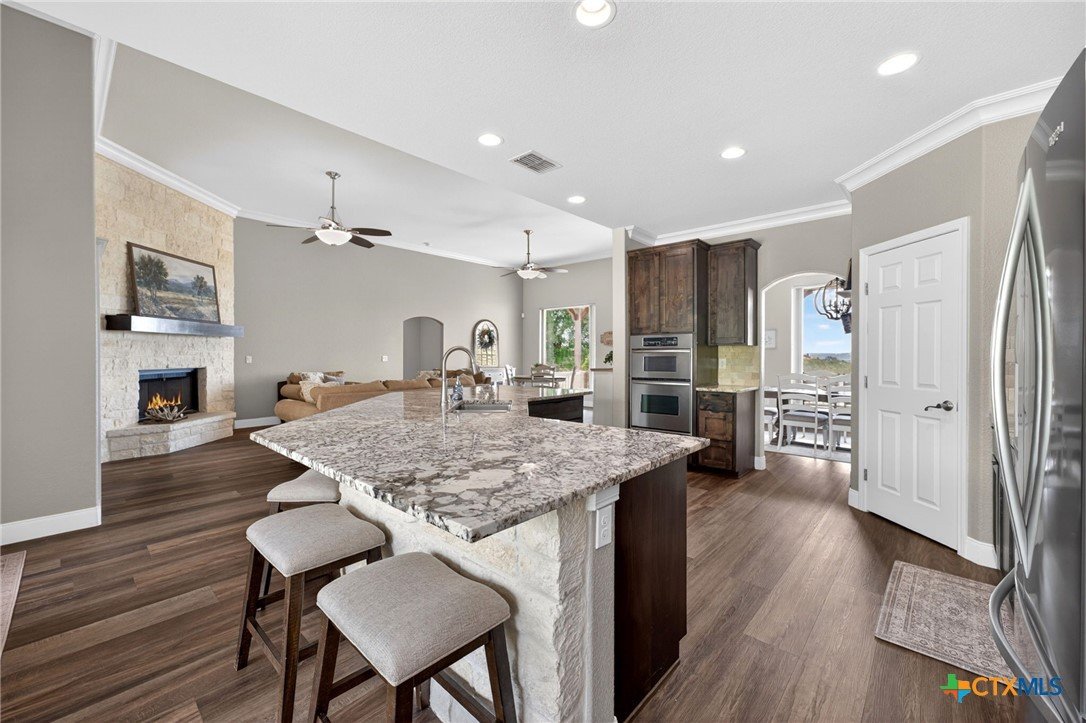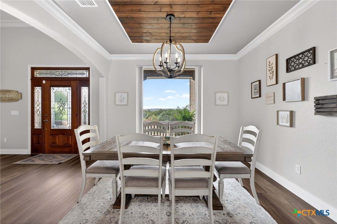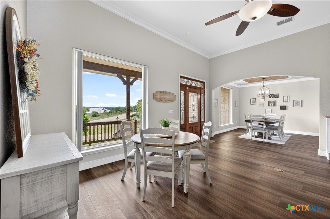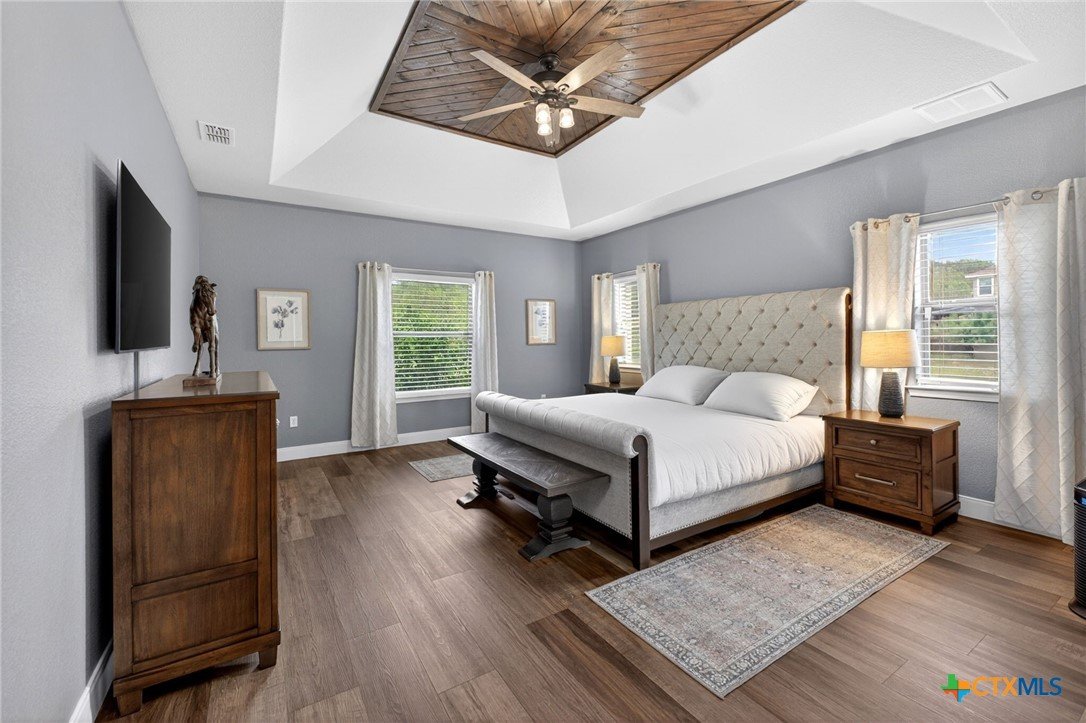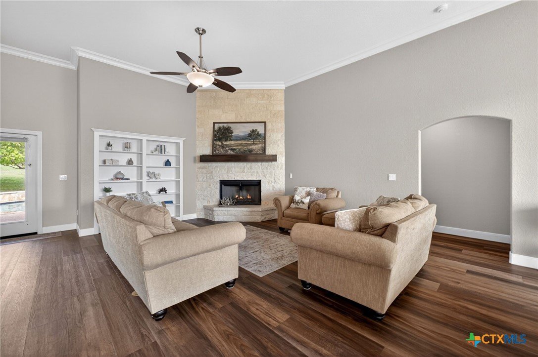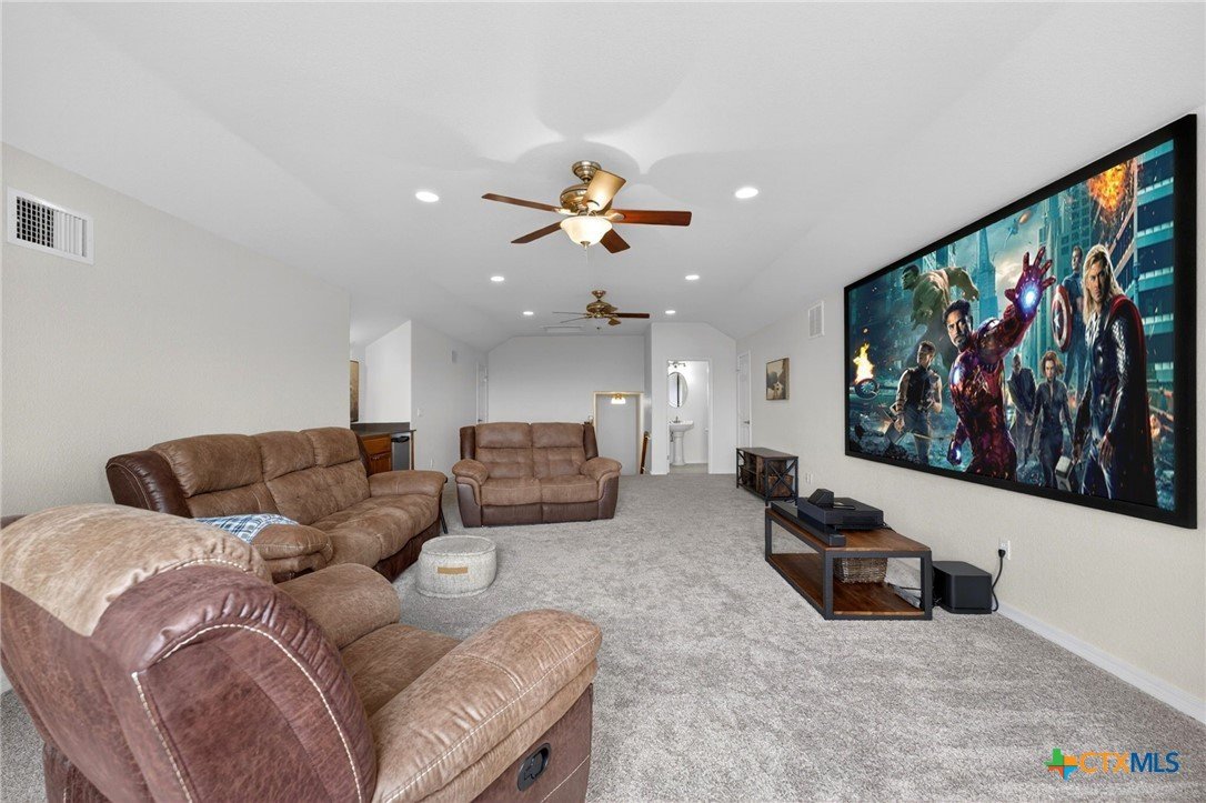 Welcome to 123 Grosbeak in the heart of Spring Branch—where thoughtful design meets Hill Country luxury. This stunning 4-bedroom, 2.5-bath home offers 3,240 square feet of beautifully designed living space, all nestled on over 3 pristine acres. Enjoy breathtaking views of Canyon Lake from your own private balcony, creating the perfect backdrop for morning coffee or evening sunsets. Step inside to discover luxury flooring that flows seamlessly throughout the home, leading you into an inviting living area anchored by a beautiful fireplace—ideal for both relaxing and entertaining. The layout is as functional as it is charming, featuring a unique hidden room that adds character and versatility. Upstairs, you’ll find expansive wraparound storage with easy access, making organization effortless without compromising style. A dedicated media room provides the perfect setting for movie nights, game days, or hosting guests. Adding to the lifestyle appeal, this home is within walking distance to the neighborhood river clubhouse—perfect for enjoying the outdoors and connecting with the community. Outdoors, the property truly shines. Experience Texas living at its finest with a gorgeous pool surrounded by wide-open skies and serene Hill Country views. Whether hosting gatherings or enjoying quiet time at home, this space is designed to impress. With its rare combination of acreage, custom features, community amenities, and stunning Canyon Lake views, this home is a standout opportunity you won’t want to miss.