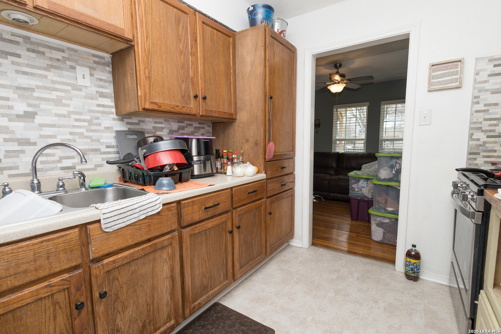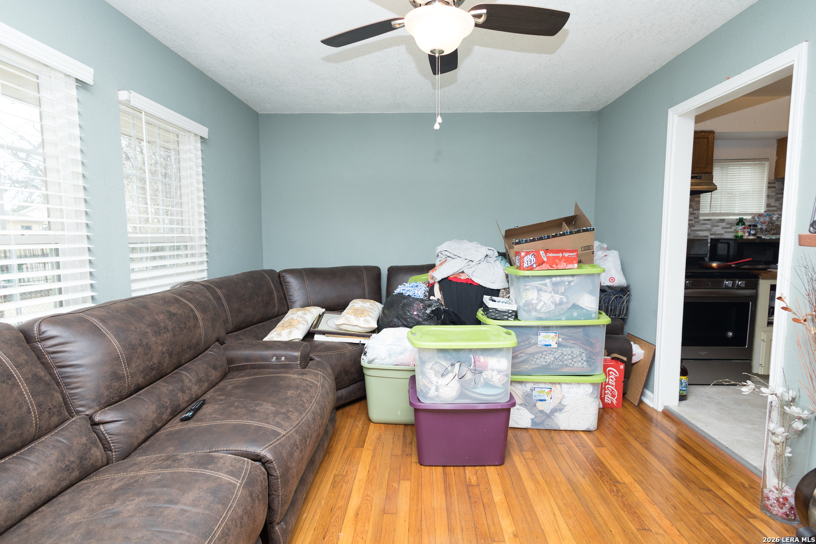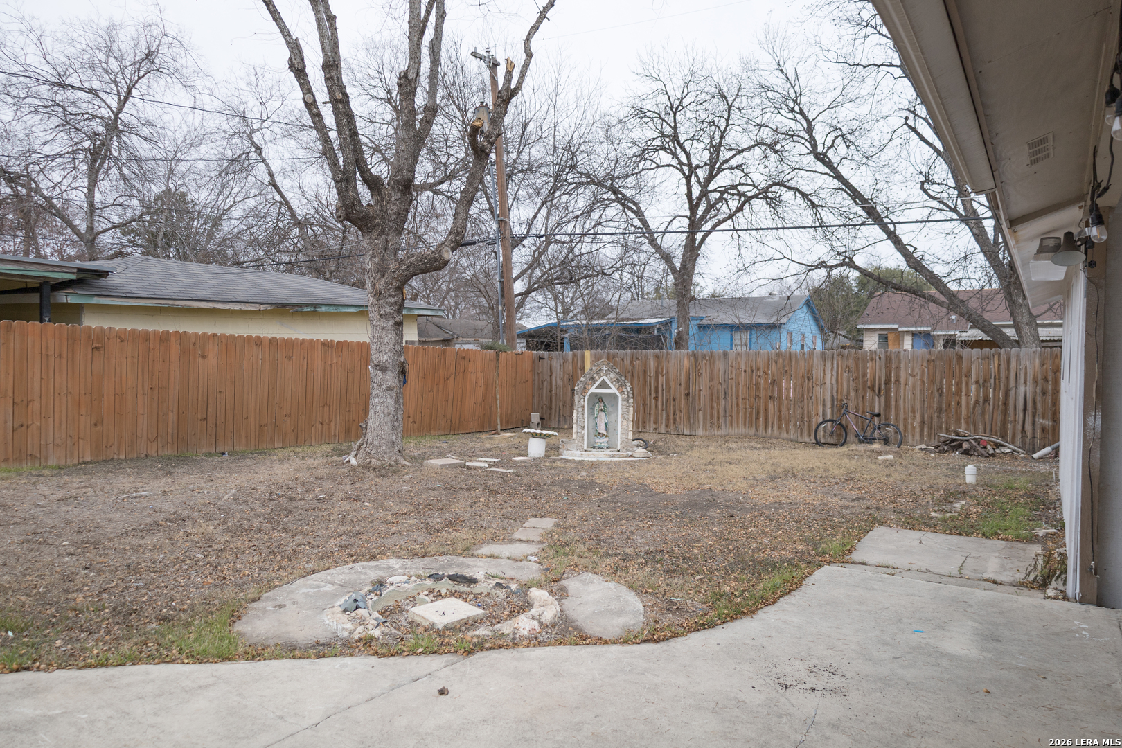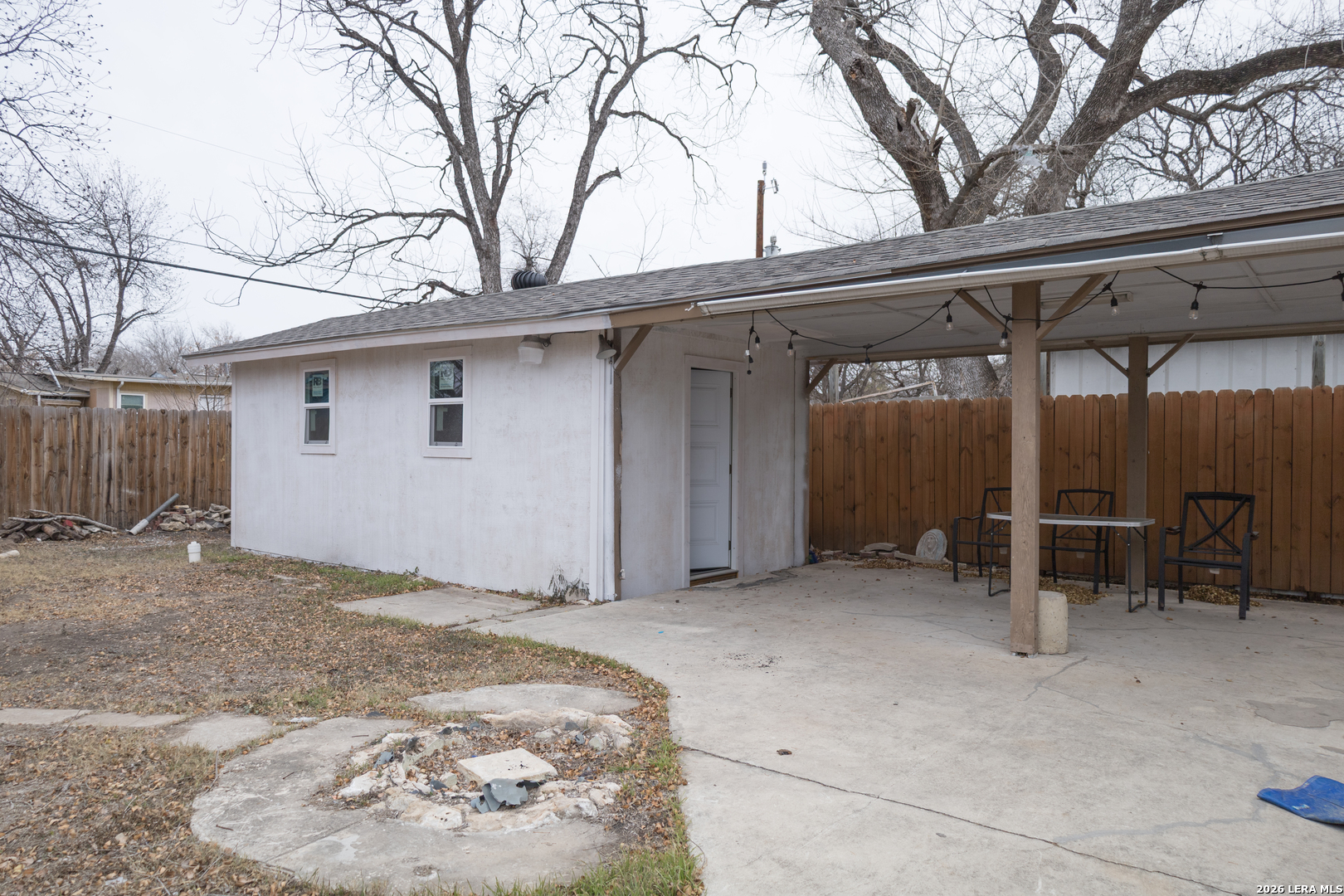 Welcome to this well-maintained 2-bedroom, 1-bath home offering 1,032 sq. ft. of comfortable living space in the heart of San Antonio's 78211 area. This inviting ranch-style property features a extended driveway with carport for convenient off-street parking. Inside, you'll find original hardwood floors in the main living areas, an updated kitchen with modern backsplash, stainless steel appliances, and ample cabinet storage. The home offers a functional layout with defined living and dining spaces, perfect for everyday living. The bathroom has been updated with a walk-in tiled shower, adding a clean and modern touch. Natural light fills the home through updated windows, creating a warm and welcoming atmosphere. Step outside to a generously sized backyard featuring a detached structure-ideal for storage, workshop space, hobby room, or potential conversion (buyer to verify). The long driveway and covered patio area provide flexibility for gatherings or additional parking. Conveniently located on San Antonio's South Side, this home offers easy access to major highways, shopping, dining, and is just minutes from Downtown San Antonio and the historic Mission area. Perfect for first-time buyers, investors, or those looking to downsize.