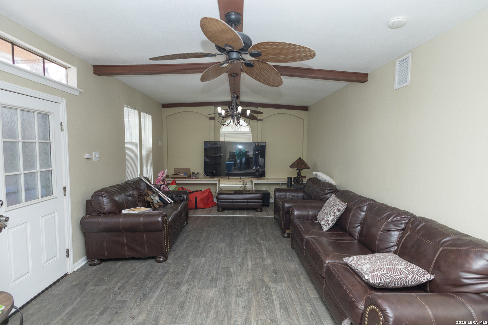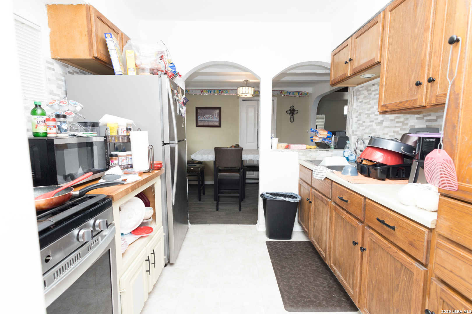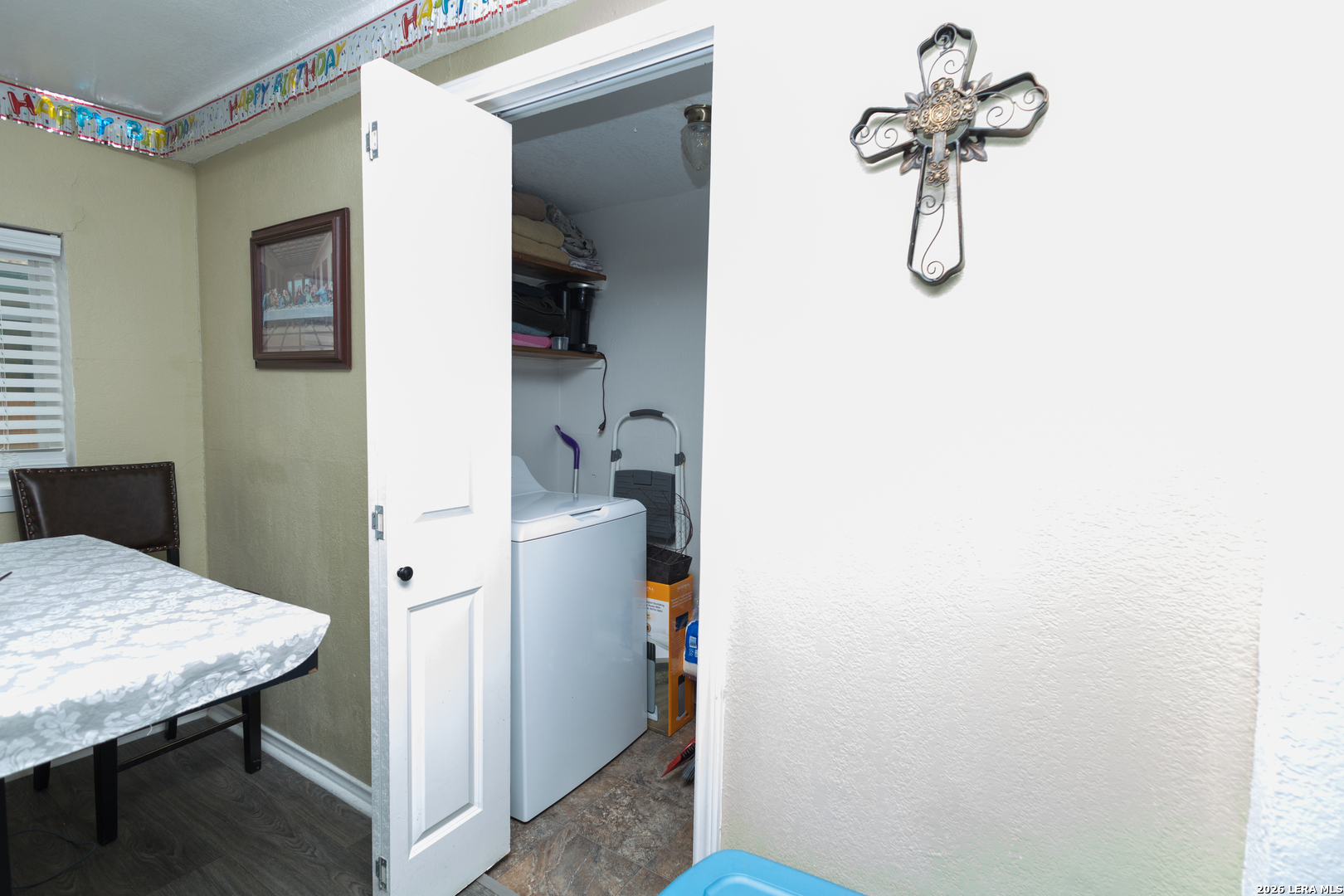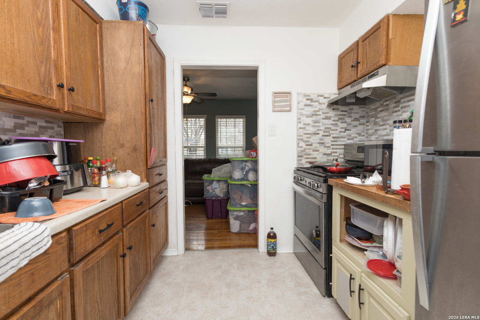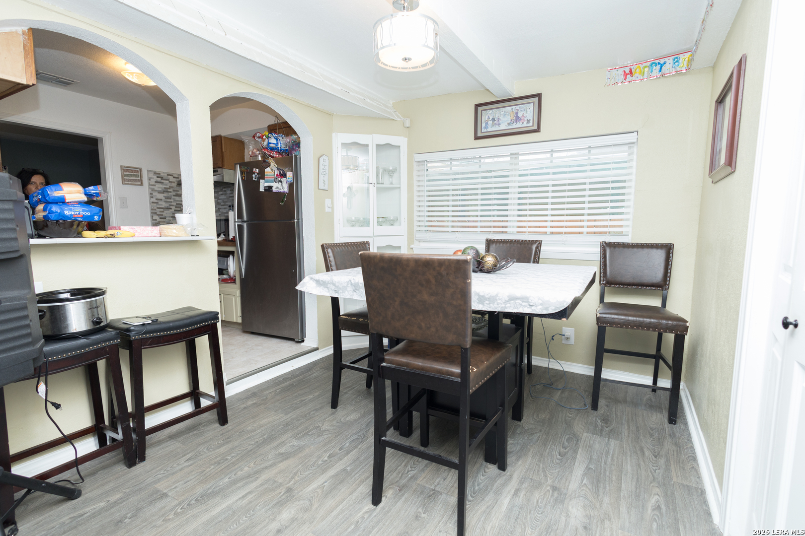 Welcome to this well-maintained 2-bedroom, 1-bath home offering 1,032 sq. ft. of comfortable living space in the heart of San Antonio's 78211 area. This inviting ranch-style property features a extended driveway with carport for convenient off-street parking. Inside, you'll find original hardwood floors in the main living areas, an updated kitchen with modern backsplash, stainless steel appliances, and ample cabinet storage. The home offers a functional layout with defined living and dining spaces, perfect for everyday living. The bathroom has been updated with a walk-in tiled shower, adding a clean and modern touch. Natural light fills the home through updated windows, creating a warm and welcoming atmosphere. Step outside to a generously sized backyard featuring a detached structure-ideal for storage, workshop space, hobby room, or potential conversion (buyer to verify). The long driveway and covered patio area provide flexibility for gatherings or additional parking. Conveniently located on San Antonio's South Side, this home offers easy access to major highways, shopping, dining, and is just minutes from Downtown San Antonio and the historic Mission area. Perfect for first-time buyers, investors, or those looking to downsize.