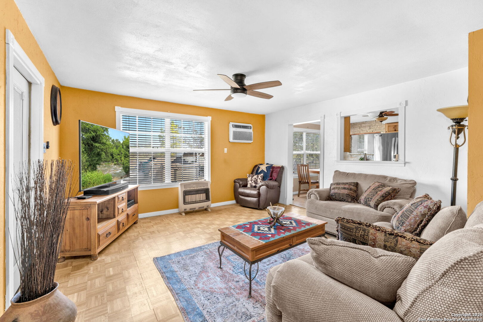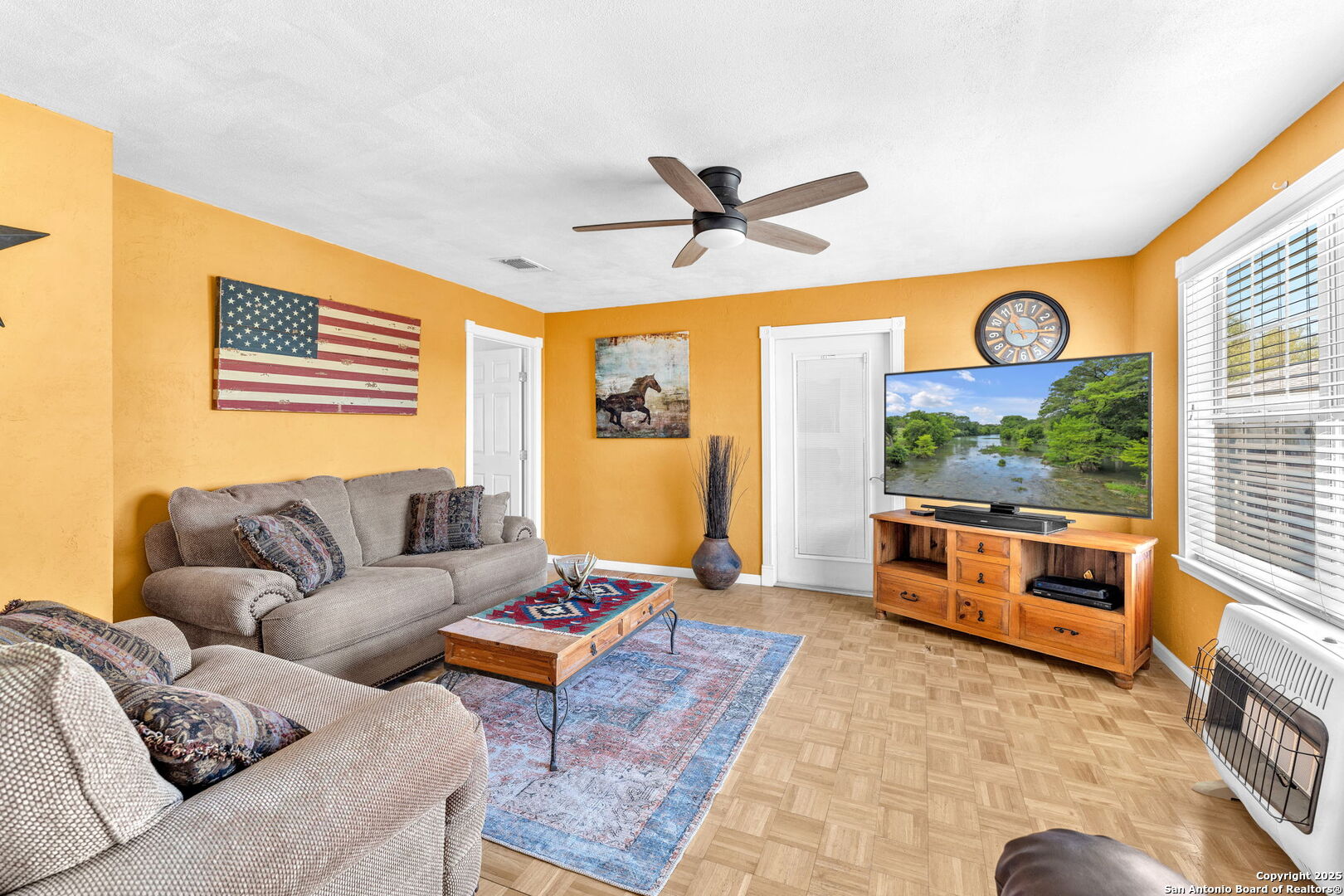 This well-maintained 4-bedroom, 2-bath home is situated on a fully fenced 2.93-acre lot, providing ample space for outdoor enjoyment and everyday living. The 1,600-square-foot interior offers two living areas and an eat-in kitchen designed for functionality and comfort. The primary suite features recessed lighting, a walk-in closet, and a private bath with a shower and single vanity. Secondary bedrooms include ceiling fans for added comfort. Recent updates include new fixtures, ceiling fans, central air system, water heater, and fresh interior and exterior paint, creating a move-in-ready environment. Exterior features include a detached two-car garage, two detached carports accommodating four or more vehicles, a barn, a covered front porch, and a covered patio deck ideal for outdoor gatherings or relaxation. The property delivers a combination of open space, privacy, and practical improvements suited for a variety of uses.