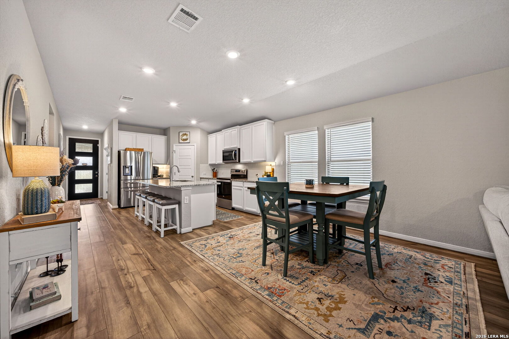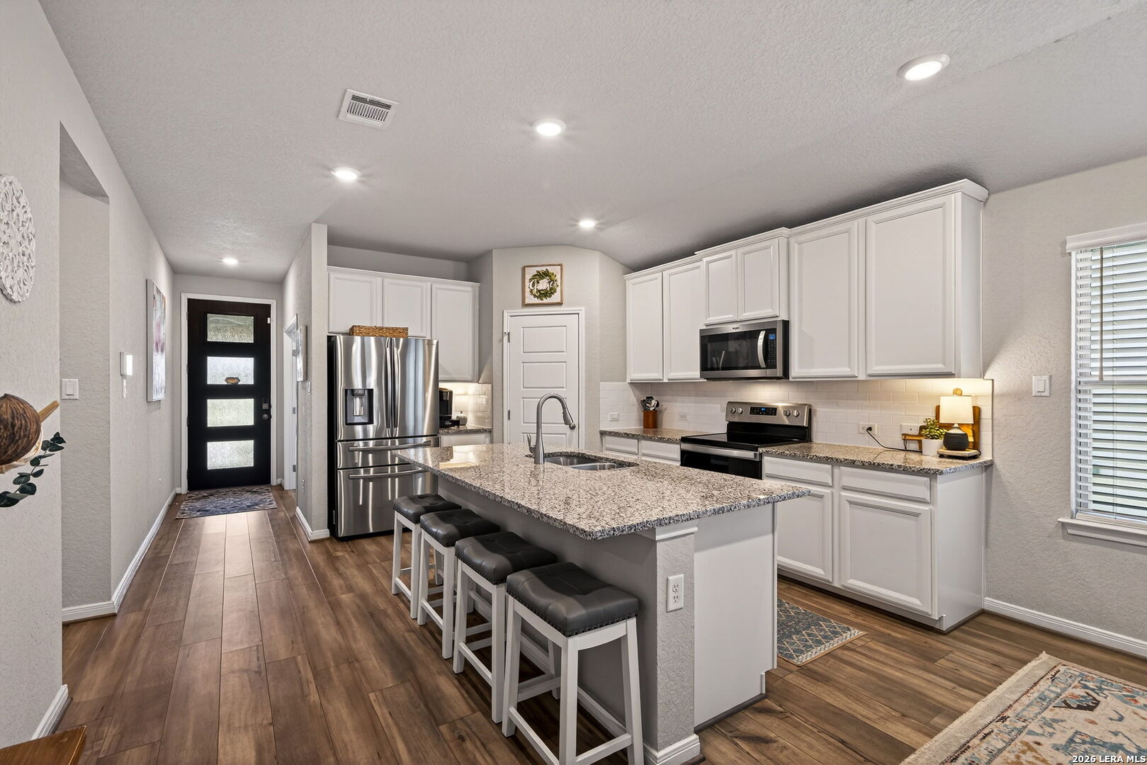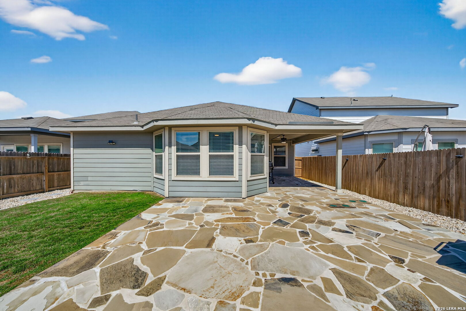 $10,000 Buyer Flex Money. Move-in ready and thoughtfully upgraded, this 3-bedroom, 2-bath home in New Braunfels offers exceptional value with the work already done for you. Inside, you'll find an open-concept layout with luxury vinyl plank flooring, a private office with glass French doors, and a spacious kitchen featuring a large island, ceiling-height cabinets, and a walk-in pantry-perfect for both everyday living and entertaining. The home includes several functional upgrades, including a remodeled laundry room with cabinetry, shelving, and countertop space, along with a custom dry bar that adds both style and versatility to the flex area. The primary suite offers bay windows and generous storage throughout the home. Step outside to enjoy a professionally landscaped front and backyard, complete with stone-lined garden beds, a driveway extension, and an extended stone patio with covered seating and an outdoor ceiling fan-designed for easy upkeep and comfortable outdoor living. Refrigerator, washer, and dryer convey, making this home truly move-in ready. Conveniently located near Creekside shopping, dining, and entertainment, with easy access to I-35 and close proximity to Gruene. A well-maintained home with thoughtful upgrades throughout, ready for its next owner to enjoy.
