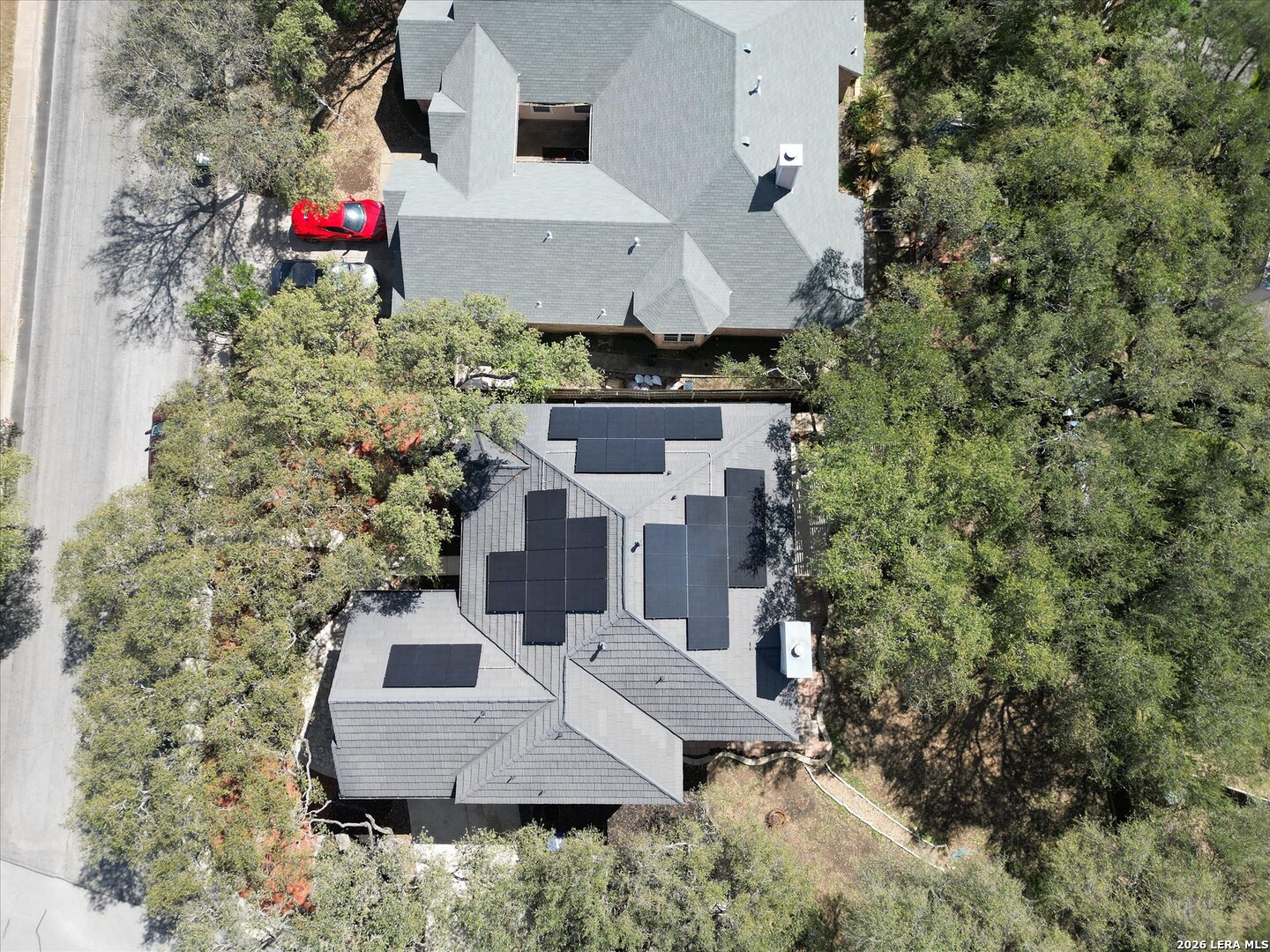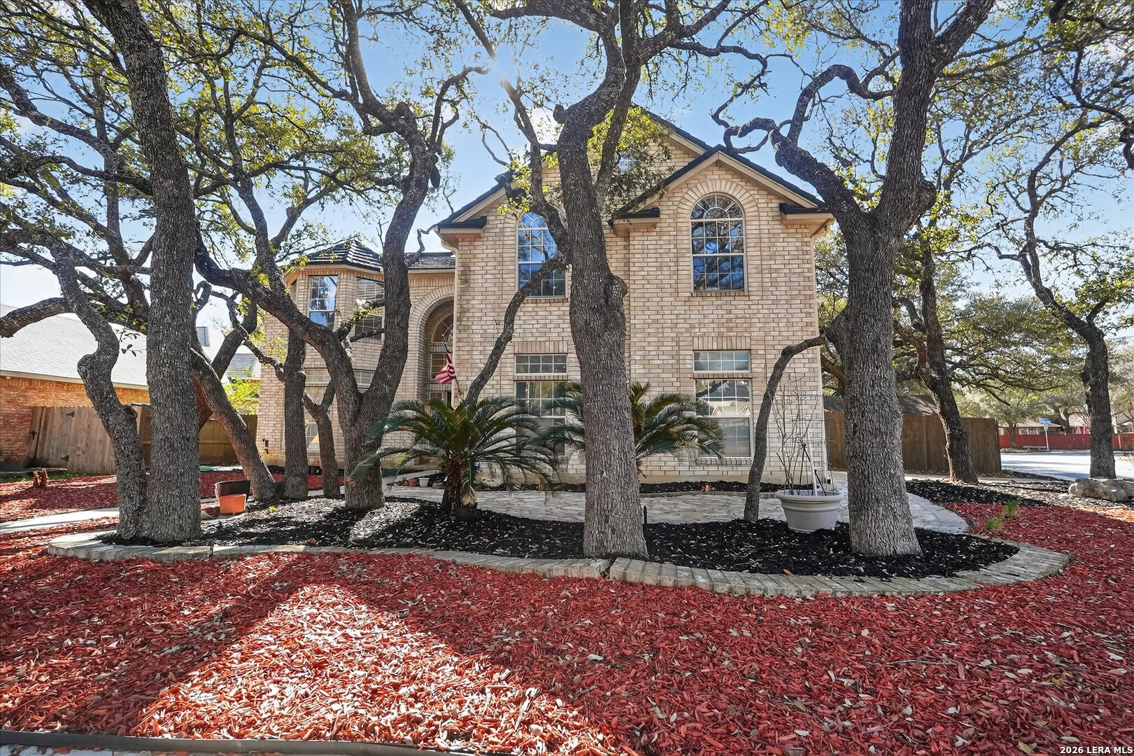 This beautifully maintained home sits on a large corner lot shaded by mature oak trees and features a side entry garage and one of the largest backyards in Oakmont Downs. With 3,510 square feet, this spacious home offers plenty of room to spread out with 5 bedrooms, 3 full bathrooms, a family room, dining room, game room, and office space. The bright family room opens to the kitchen, which offers plenty of counter space and a stylish updated backsplash, making it a great space for everyday living and entertaining. A comfortable guest bedroom and full bath downstairs are perfect for visitors or multi generational living.Upstairs, the spacious primary suite includes a sitting area, two separate closets, and a large bathroom with a garden tub, separate shower, and dual vanity sinks. Three additional bedrooms and a large game room with its own mini bar provide even more space for relaxing or entertaining. The backyard is truly one of the highlights of the property with plenty of room to enjoy outdoor living. Additional features include a metal roof, solar panels, and side entry garage. Located in Northside ISD and conveniently close to IH 10, La Cantera, the Medical Center, UTSA, and USAA, this home offers both space and a great location.