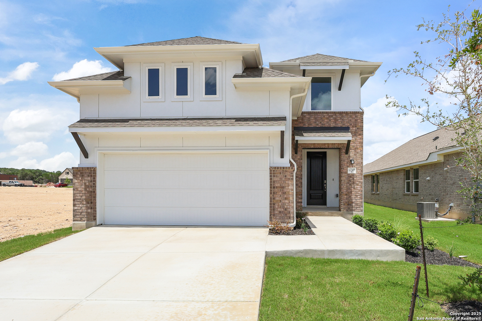 Welcome to the stunning Wingate plan! This exquisite 4-bedroom, 3-bath home boasts impressive 19-foot ceilings in the great room and an inviting open-concept great and dining area. The layout features a primary suite and a secondary bedroom conveniently located on the first floor. The beautiful kitchen is a chef's dream, showcasing a large island, a built-in wall oven, and a gas cooktop-perfect for culinary enthusiasts. Upstairs, you'll discover a spacious game room, along with two additional bedrooms and a full bathroom, providing plenty of room for family and guests. The primary suite is a true retreat, complete with a large soaking tub and a walk-in shower for ultimate relaxation. Outside, the covered patio offers a delightful setting for gatherings and relaxation. Davis Ranch also offers a beautiful community pool and recreation area, ensuring fun and entertainment for the whole family. Enjoy 40 miles of Hiking and Biking in Government Canyon State Natural Area. Come explore this stunning home in the master-planned community of Davis Ranch-schedule your visit today!