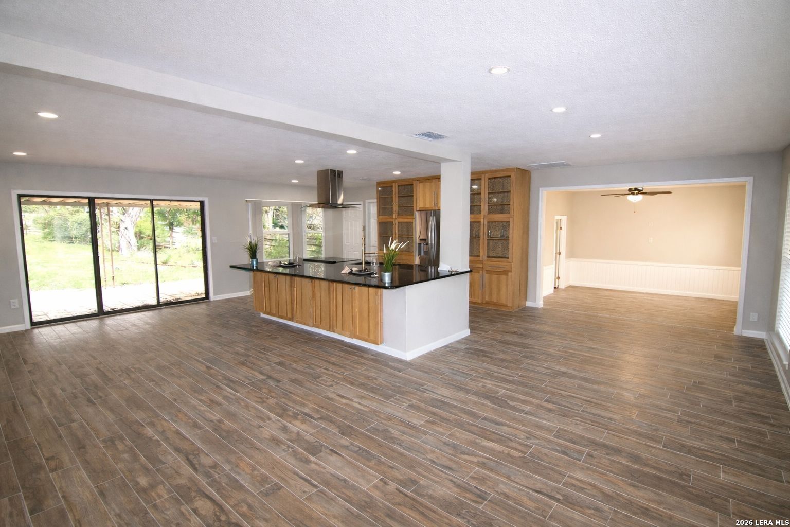 Spacious and eclectic one-story home sprawled out on over 1/2 an acre and situated in sought-out Rose Garden! This OPEN FLOOR concept design is loaded with character & artistic details throughout from the custom wainscoting, custom color palate, and modern light fixtures, to the gleaming wood tile throughout for easy maintenance (no carpet)! This stunning chef's kitchen is anchored by a massive kitchen island and boasts granite countertops, new oven, stainless appliances, and a breakfast area. New HVAC, New