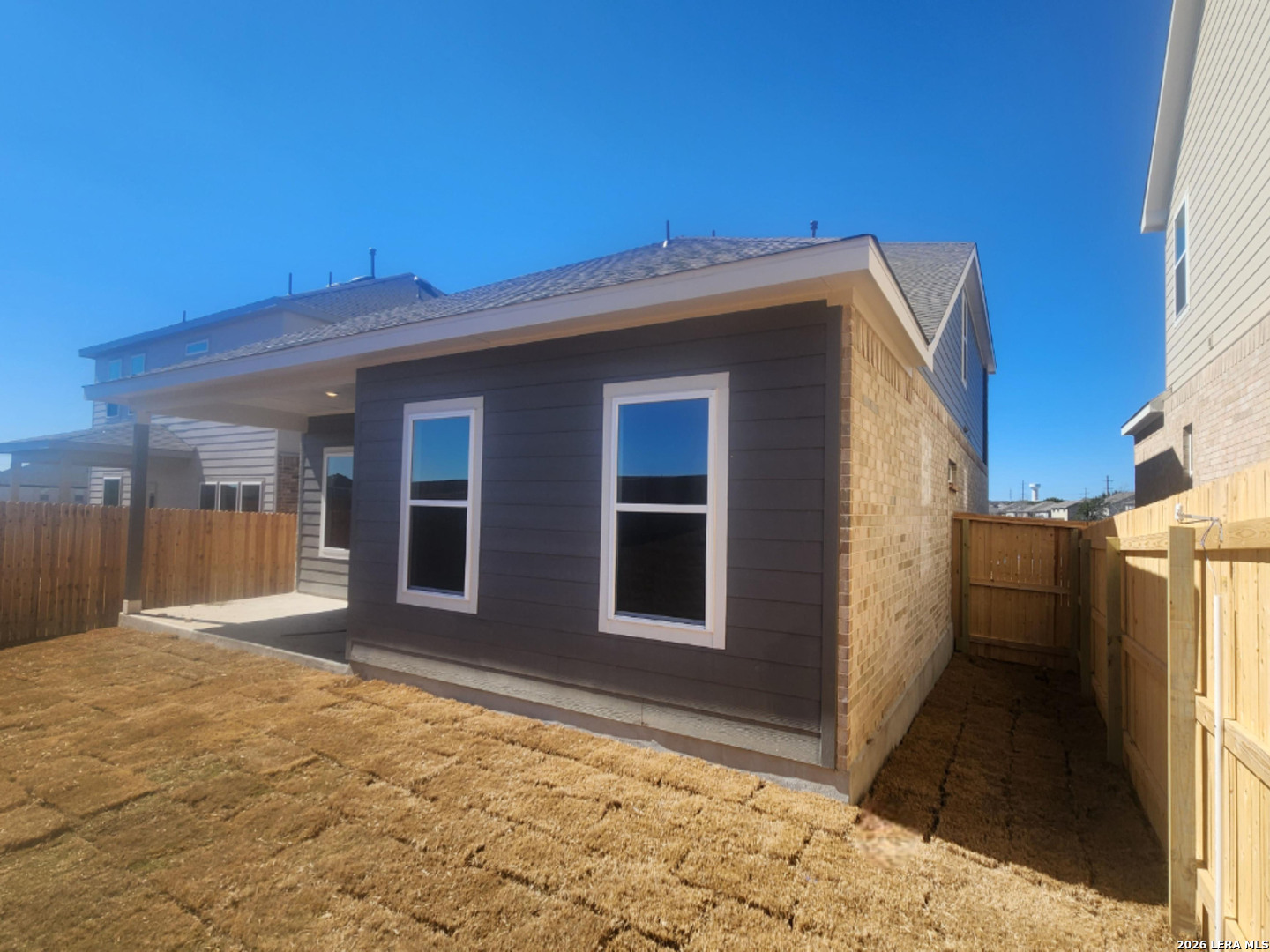 This two-story home offers a comfortable layout with the primary suite downstairs for added privacy and convenience. The main floor features an open living and dining combo that connects to an island kitchen with a built-in oven, cooktop and microwave. The family room is generously sized and opens to a covered patio and fenced yard, creating an easy indoor to outdoor flow. Upstairs, a large game room anchors three spacious secondary bedrooms, each with walk in closets. Additional highlights include vinyl flooring in main areas, carpet in bedrooms, ceiling fans, gas cooking and a water softener loop. A study with double doors sits near the front of the home, providing a quiet and functional workspace. The home also includes a sprinkler system and charming three sides masonry exterior for added durability and curb appeal. This home is part of our Sapphire Collection - bold and full of personality. Bright whites and deep blues mix with layered textures for a striking effect. Sapphire is for those who love to host, make a statement, and live with confident, unmistakable style. This home is in Arcadia Ridge, a community with 200 acres of open space, resort-style pool, playgrounds, trails, and easy access to shopping, dining, and major employers.
