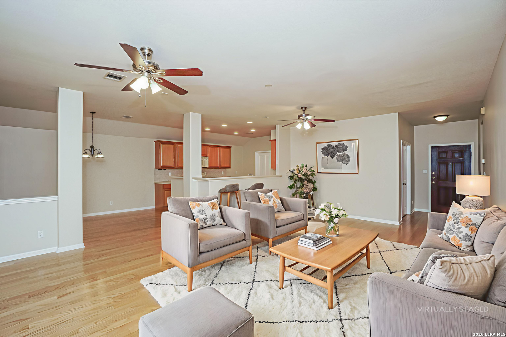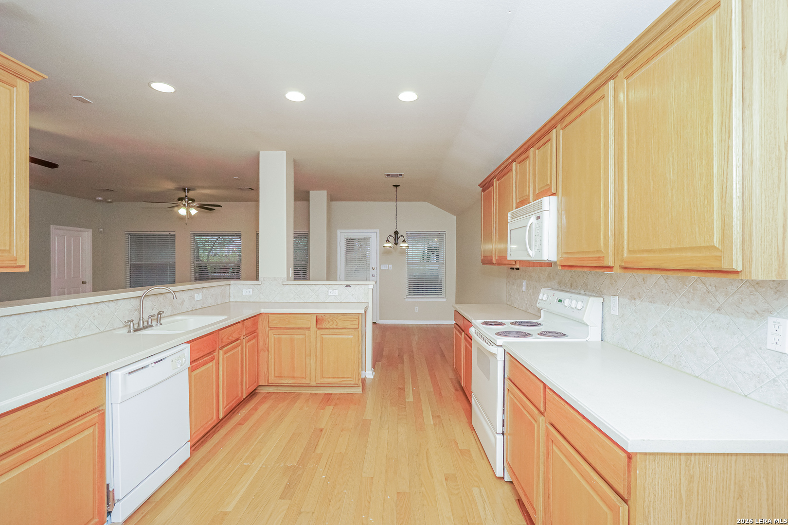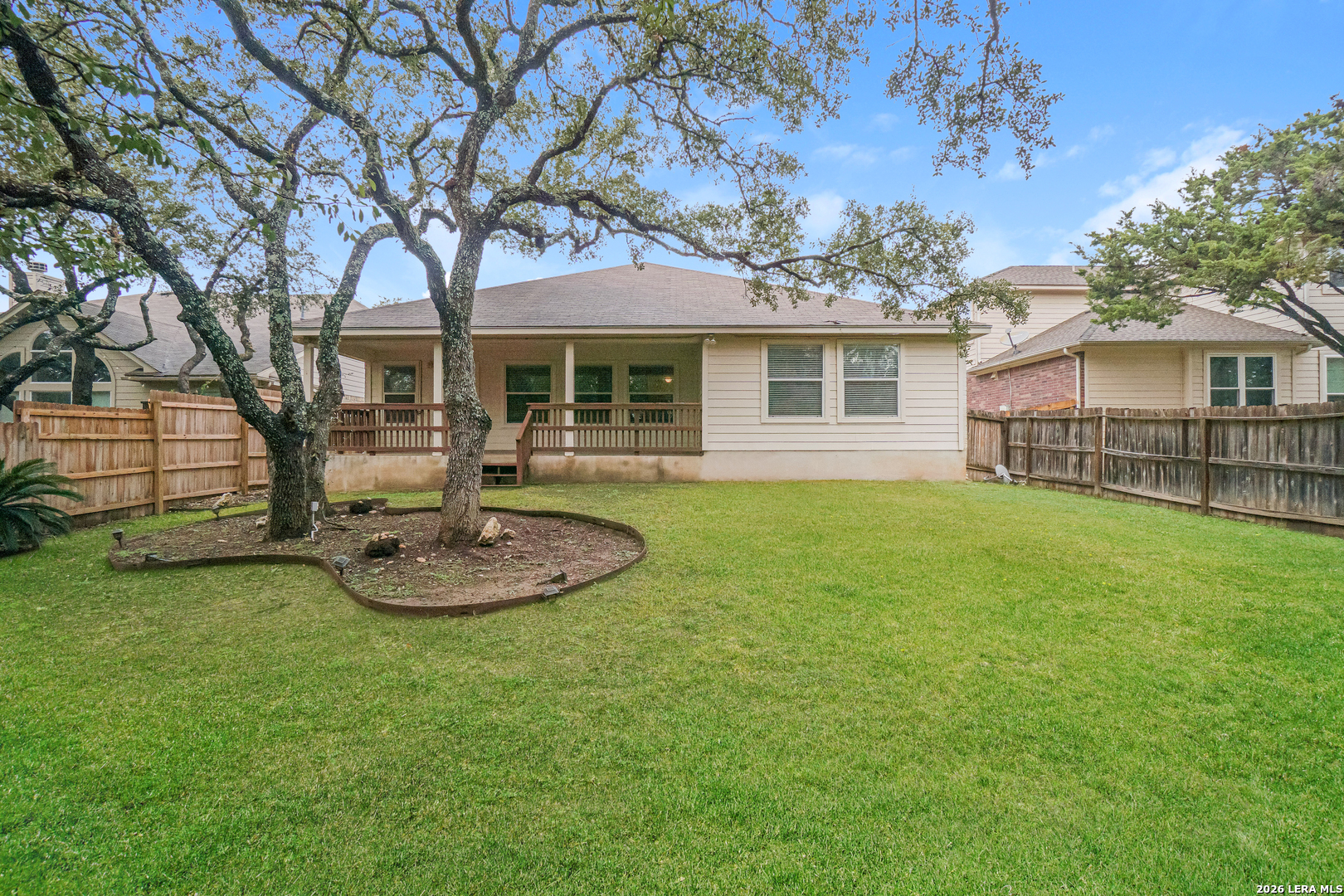 Welcome home to the highly desired Las Lomas subdivision in the acclaimed Stone Oak area on San Antonio's far North Side. This freshly painted one-story home offers 1,823 sq ft, 3 bedrooms, 2 baths, and a flexible bonus room ideal for dining or a home office. The open-concept floor plan with wood flooring throughout offers great flow, perfect for entertaining. The kitchen opens into the family room and features Corian countertops, a breakfast bar, walk-in pantry, and eat-in area. Enjoy the spacious backyard with a beautiful mature oak tree and a large covered patio. Additional features include a water softener, electric garage door opener, and HVAC system replaced 2 years ago. Tenants enjoy access to neighborhood amenities, including a pool, playground, party room, and tennis courts. Located in North East ISD and ready for immediate move-in.