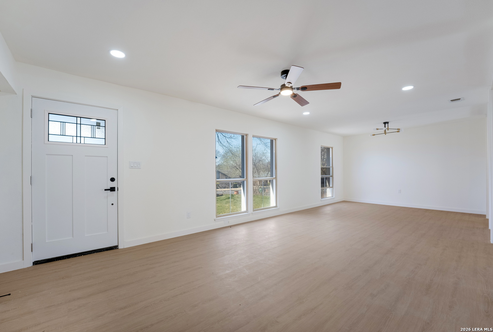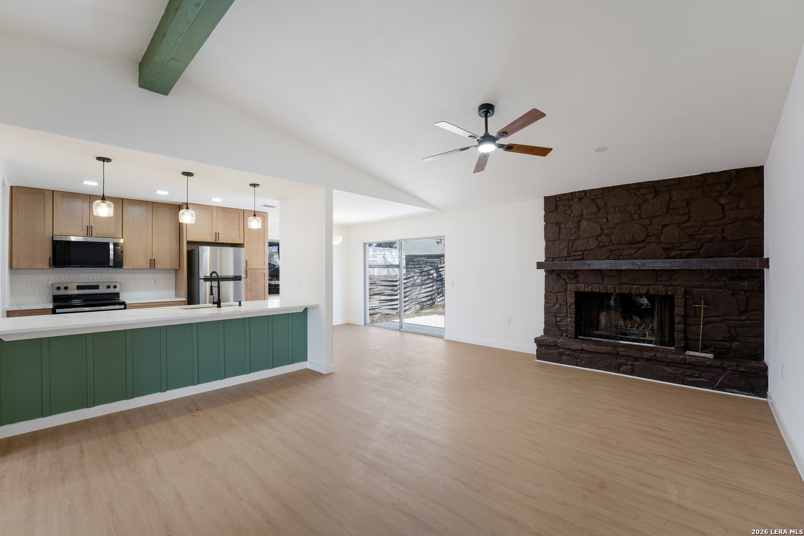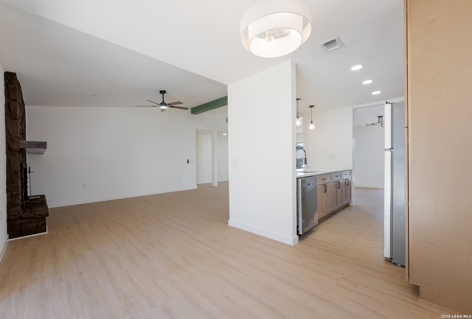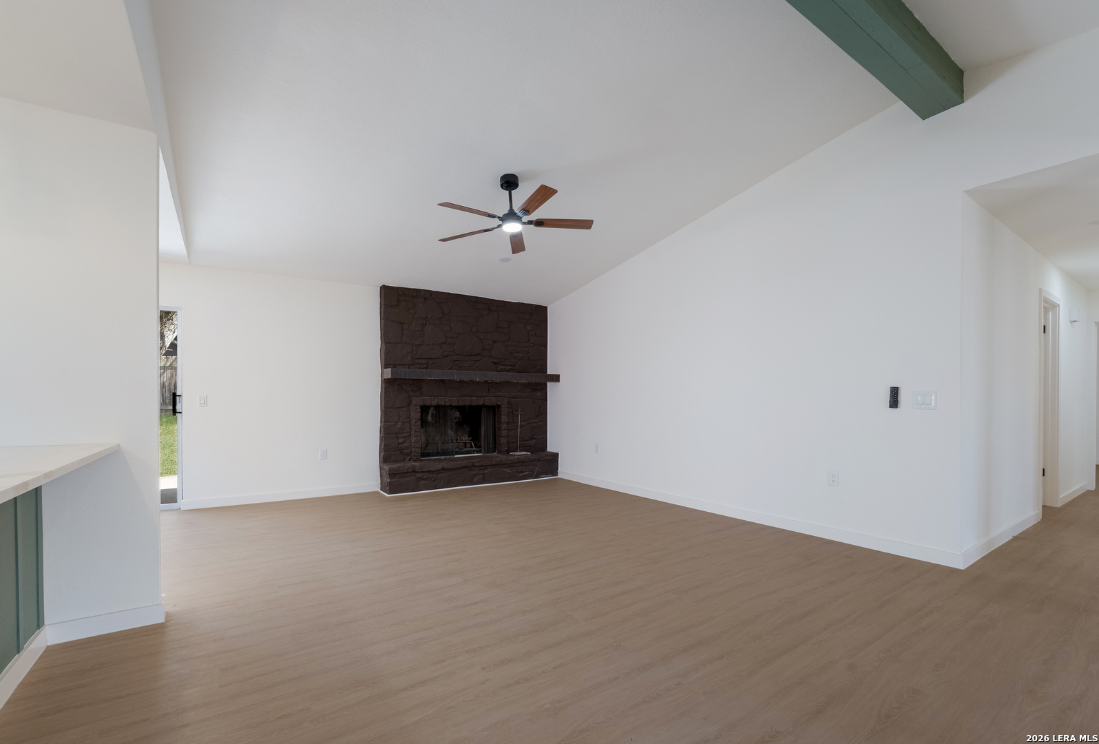 Beautifully Renovated & Move-In Ready! This stunning 3-bedroom, 2-bath home has been fully updated with modern style, clean lines, and a highly functional layout in a well-established Northeast San Antonio neighborhood. Step inside to a bright, open floor plan featuring luxury vinyl plank flooring throughout ( yes, no carpet! ), fresh neutral finishes, and a cozy fireplace as the focal point of the living area. The modern kitchen flows seamlessly into the living and dining areas and connects perfect for entertaining, offering ample cabinetry, modern fixtures, and a sleek, contemporary design. Low-Maintenance & Long-Lasting, say goodbye to frequent roof repairs! The metal roof offers years of worry-free durability. All bedrooms are generously sized, and both bathrooms have been beautifully remodeled with trend-forward finishes and modern fixtures. Additional features include ceiling fans throughout, a spacious 2-car garage, spacious backyard ideal for entertaining or relaxing . Ideally situated near NEISD schools with quick access to Loop 1604, I-35, shopping, dining, parks, and everyday conveniences, plus established community. Thoughtfully updated, beautifully finished, and move-in ready, don't miss out!