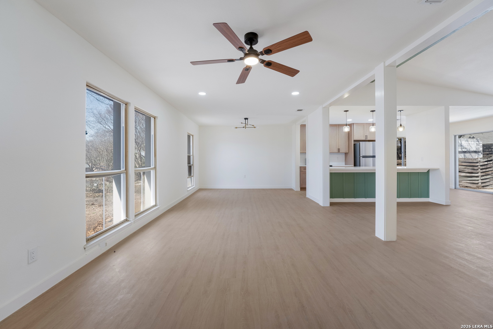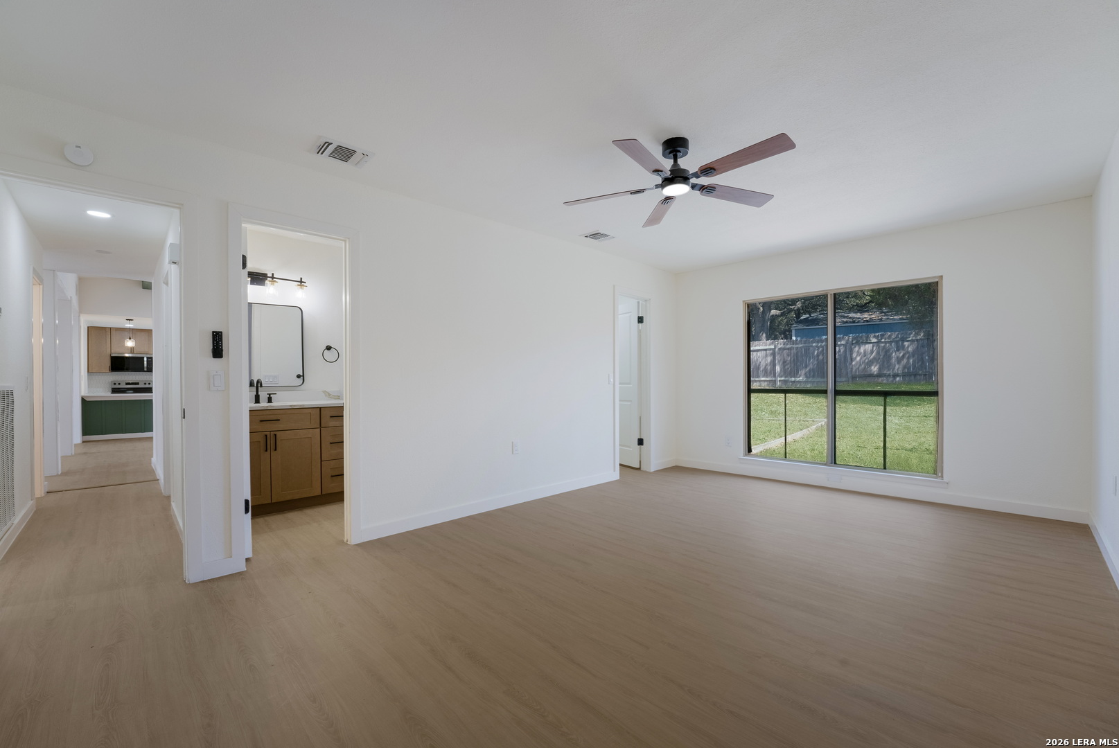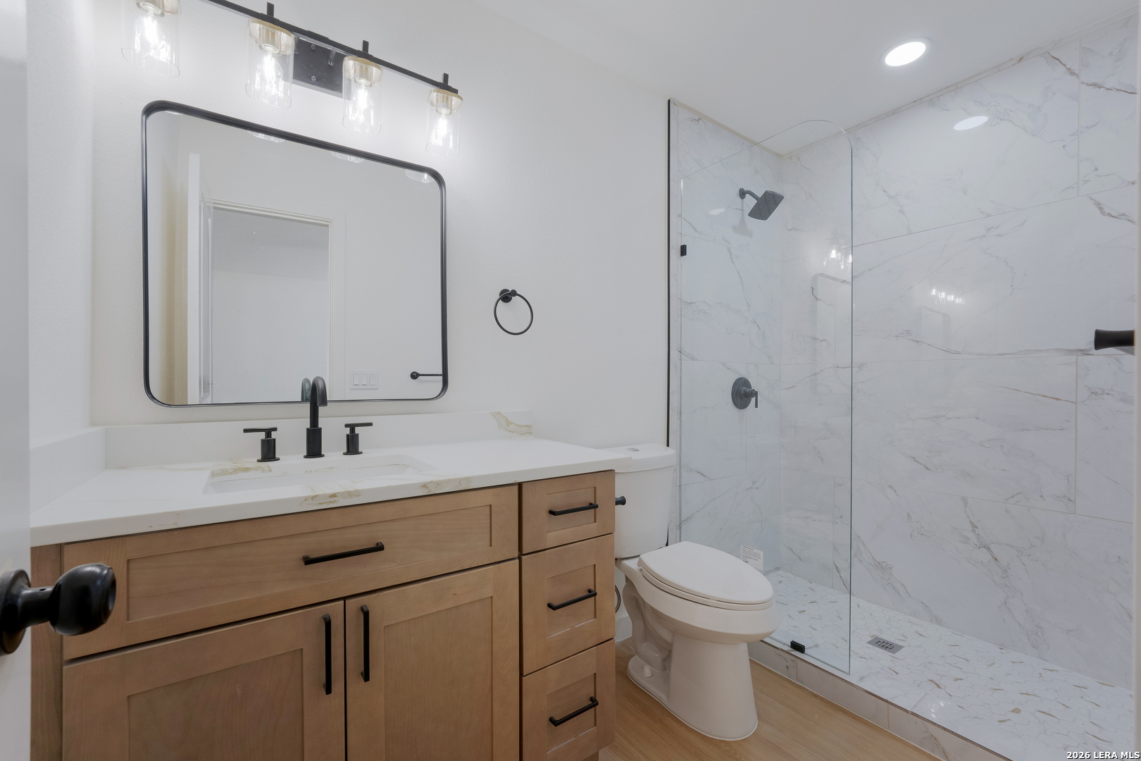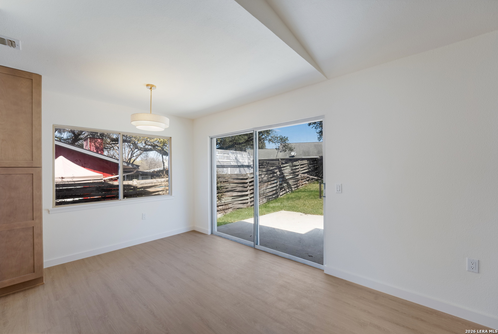 Beautifully Renovated & Move-In Ready! This stunning 3-bedroom, 2-bath home has been fully updated with modern style, clean lines, and a highly functional layout in a well-established Northeast San Antonio neighborhood. Step inside to a bright, open floor plan featuring luxury vinyl plank flooring throughout ( yes, no carpet! ), fresh neutral finishes, and a cozy fireplace as the focal point of the living area. The modern kitchen flows seamlessly into the living and dining areas and connects perfect for entertaining, offering ample cabinetry, modern fixtures, and a sleek, contemporary design. Low-Maintenance & Long-Lasting, say goodbye to frequent roof repairs! The metal roof offers years of worry-free durability. All bedrooms are generously sized, and both bathrooms have been beautifully remodeled with trend-forward finishes and modern fixtures. Additional features include ceiling fans throughout, a spacious 2-car garage, spacious backyard ideal for entertaining or relaxing . Ideally situated near NEISD schools with quick access to Loop 1604, I-35, shopping, dining, parks, and everyday conveniences, plus established community. Thoughtfully updated, beautifully finished, and move-in ready, don't miss out!