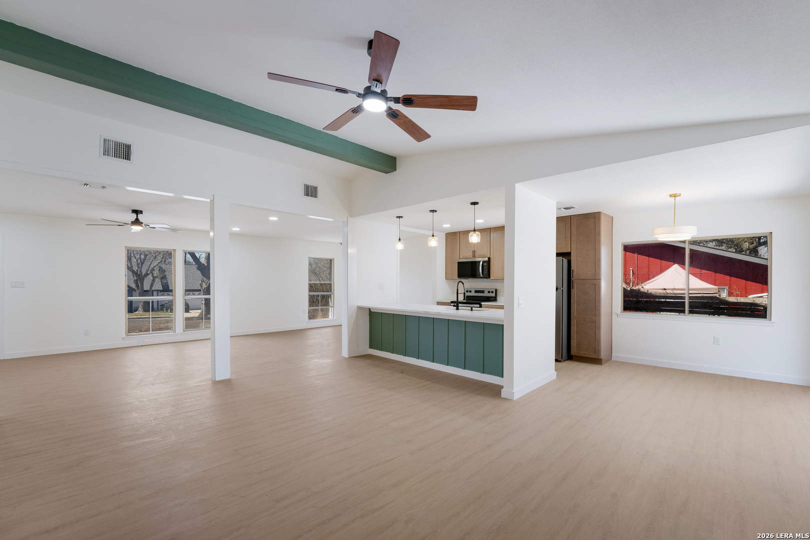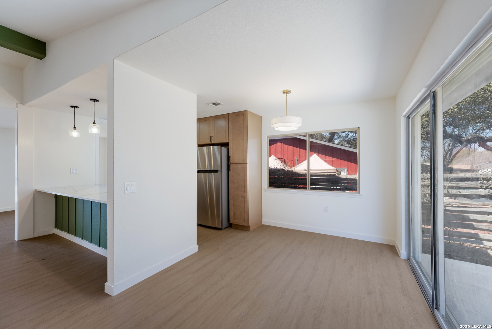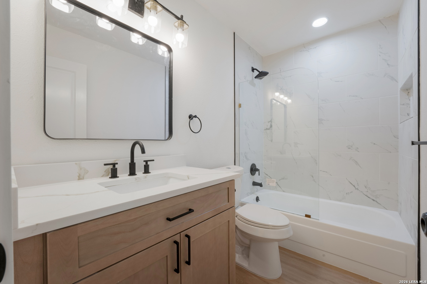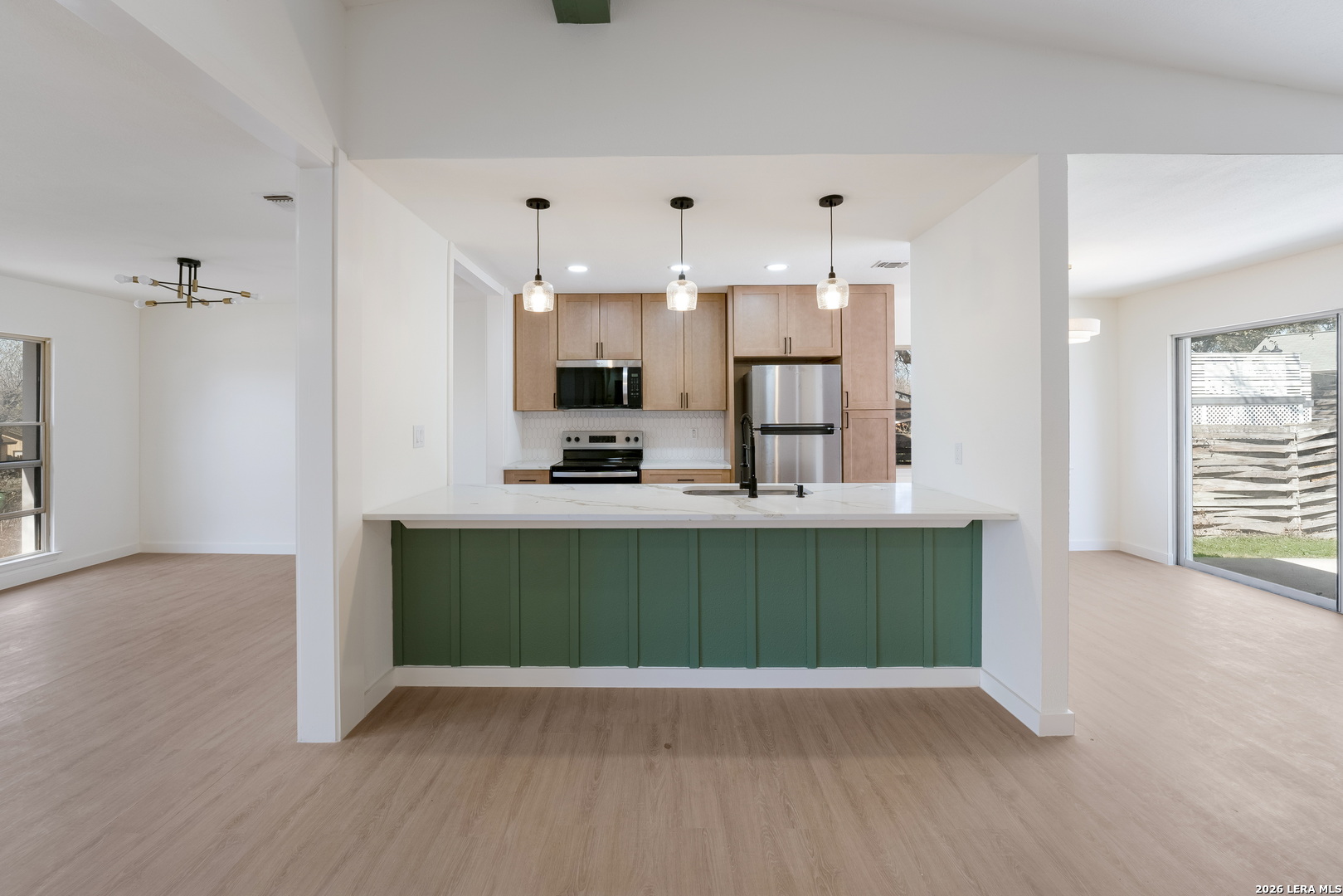 Beautifully Renovated & Move-In Ready! This stunning 3-bedroom, 2-bath home has been fully updated with modern style, clean lines, and a highly functional layout in a well-established Northeast San Antonio neighborhood. Step inside to a bright, open floor plan featuring luxury vinyl plank flooring throughout ( yes, no carpet! ), fresh neutral finishes, and a cozy fireplace as the focal point of the living area. The modern kitchen flows seamlessly into the living and dining areas and connects perfect for entertaining, offering ample cabinetry, modern fixtures, and a sleek, contemporary design. Low-Maintenance & Long-Lasting, say goodbye to frequent roof repairs! The metal roof offers years of worry-free durability. All bedrooms are generously sized, and both bathrooms have been beautifully remodeled with trend-forward finishes and modern fixtures. Additional features include ceiling fans throughout, a spacious 2-car garage, spacious backyard ideal for entertaining or relaxing . Ideally situated near NEISD schools with quick access to Loop 1604, I-35, shopping, dining, parks, and everyday conveniences, plus established community. Thoughtfully updated, beautifully finished, and move-in ready, don't miss out!