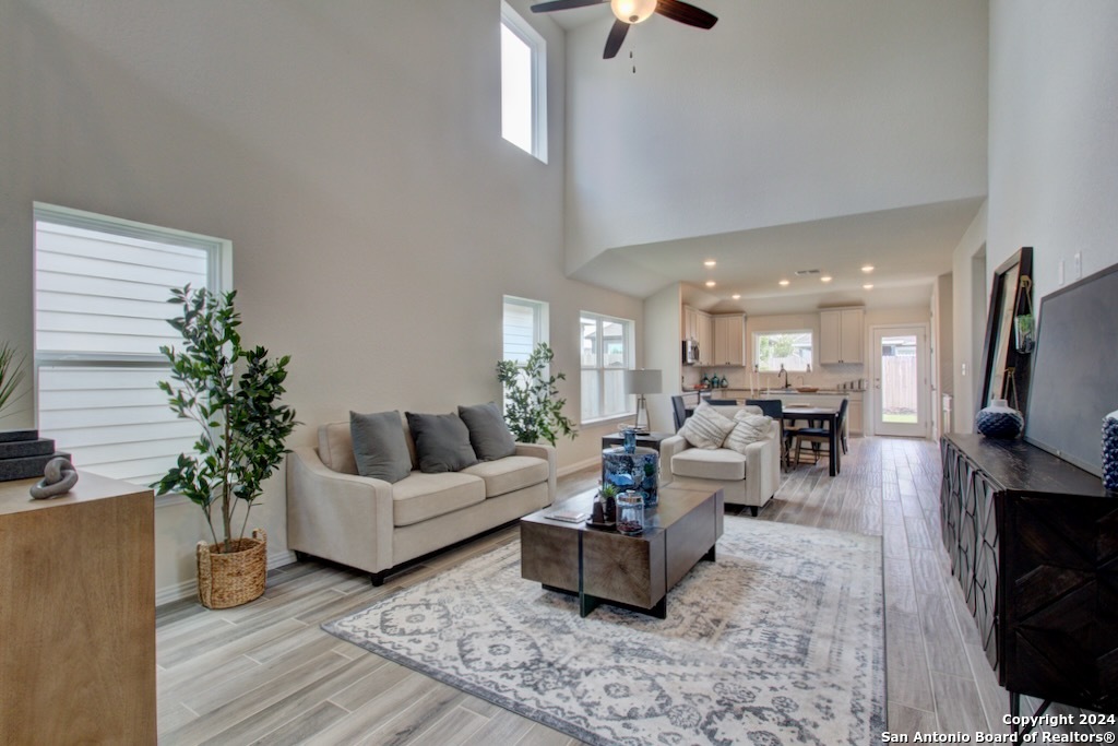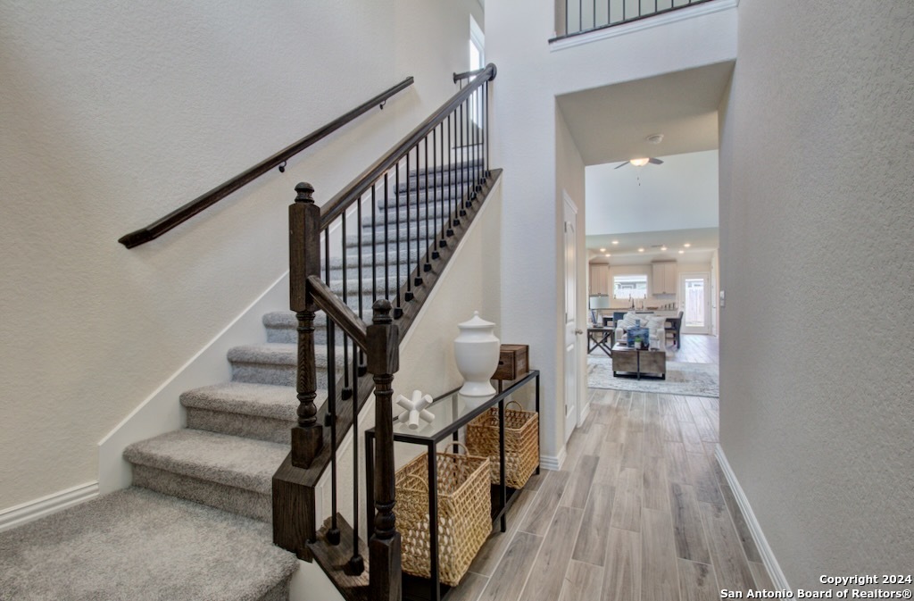 Final Opportunity! The only new home community just a golf cart ride away from Gruene Hall, the Guadalupe River, and downtown New Braunfels. The Brazos plan is a 3 bed 2 bath two story home complete with a Game Room. Exterior features include white stone detailing, 2 car garage with 2 coach lights, covered patio with tongue & groove soffit at entry and wood stained posts. Powder rooms, a coat closet, and stairs to second level are located off the entryway/foyer. Living Room is open to the Dining Room & Kitchen. Dining Room features a window seat. The kitchen is accentuated with an enlarged island with a half wall and 10" overhang at the bar top along with two plugs. The kitchen has stainless steel appliances, and plenty of storage with 42" cabinets and a pantry. Owner's suite is located on the main floor and split from secondary rooms which reside on the second floor along with a game room. Owner's bath has a fixed window for natural light, tile shower, water closet, and a large owner's closet. This community features Comal ISD schools and is surrounded by local shops, great dining, and some of the best BBQ spots in Texas. Enjoy outdoor recreation along the rivers and nearby natural areas.