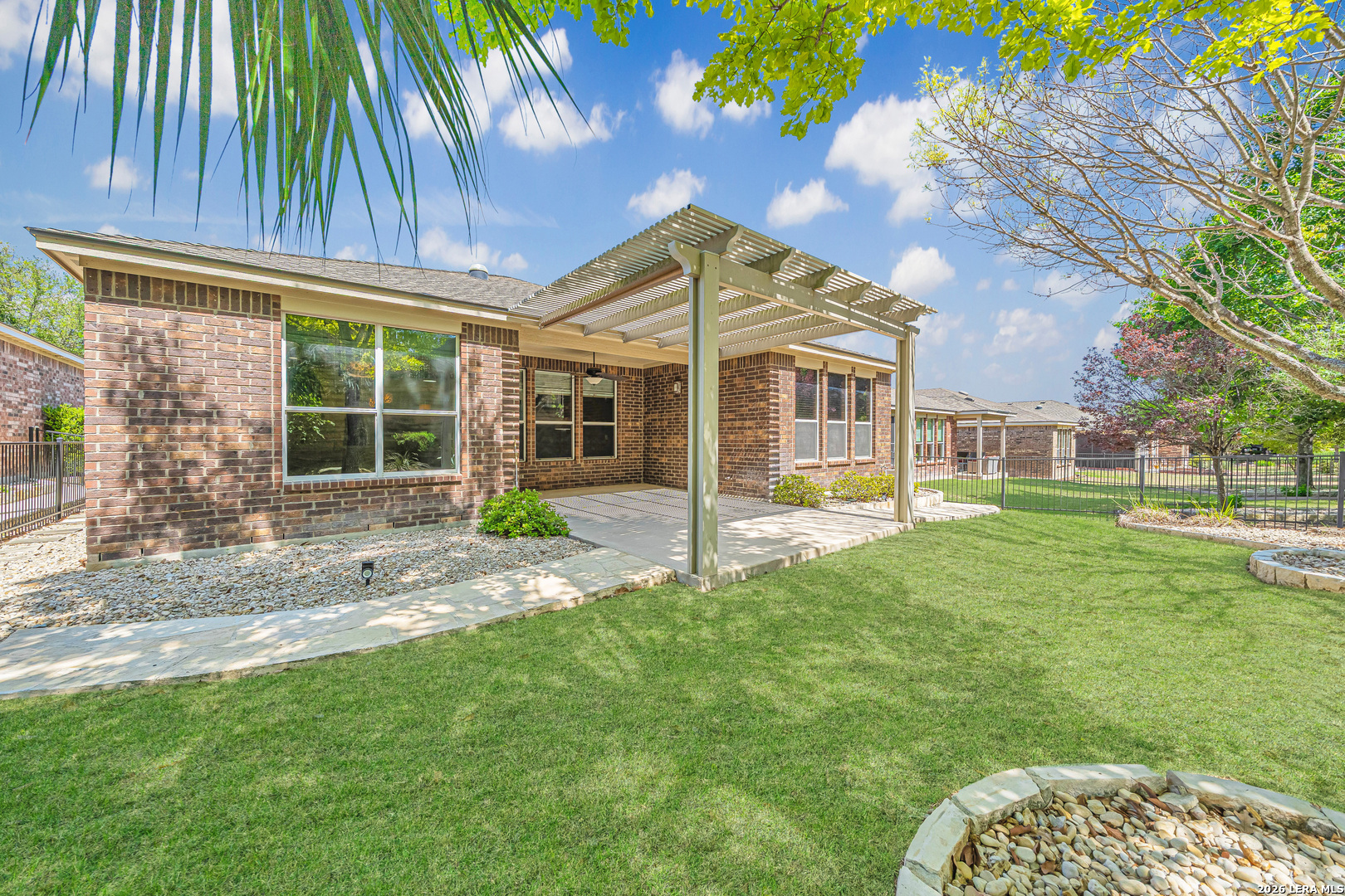 Step into Del Webb's Hill Country Retreat-an exceptional gated 55+ community where resortstyle living meets everyday comfort. This impeccably maintained singlelevel home features 3 spacious bedrooms, 2 full baths, a dedicated study, two dining areas, and an open, lightfilled floor plan. A decorative glass front door leads into a bright interior with high ceilings, crown molding, solar tubes, and updated lighting. The kitchen shines with a large island, custom cabinetry, Corian countertops, stainless steel appliances, and custom paint. A nearby laundry room with sink adds convenience, while the breakfast nook-with builtin desk-overlooks the landscaped backyard and large covered patio with pergola, perfect for relaxing or entertaining. The owner's suite offers a private retreat with French doors, a walkin tiled shower, garden tub, and a spacious walkin closet with builtins. Secondary bedrooms provide comfort and flexibility. Additional perks include an oversized garage, new oven/range, new Whirlpool washer, refrigerator, and garage storage cabinets-all conveying with the home. Major upgrades include a 2021 roof with ridge vents, a 2019 American Standard A/C system, and new carpet in the primary bedroom. Set among scenic rolling hills and close to shopping, dining, and easy highway access to Downtown San Antonio and the airport, this community offers the perfect blend of convenience and natural beauty. At its center is "The Resort"-a stunning 28,000sqft clubhouse with indoor and outdoor pools, a stateoftheart fitness center, an indoor walking track, and extensive hobby and social spaces. Residents enjoy tennis, pickleball, bocce ball, miles of scenic trails, and a full calendar of activities led by a dedicated lifestyle director, making it easy to stay active, social, and engaged. With HOA-maintained landscaping and common areas, this community delivers a truly low-maintenance, lock-and-leave lifestyle designed for enjoying every moment.