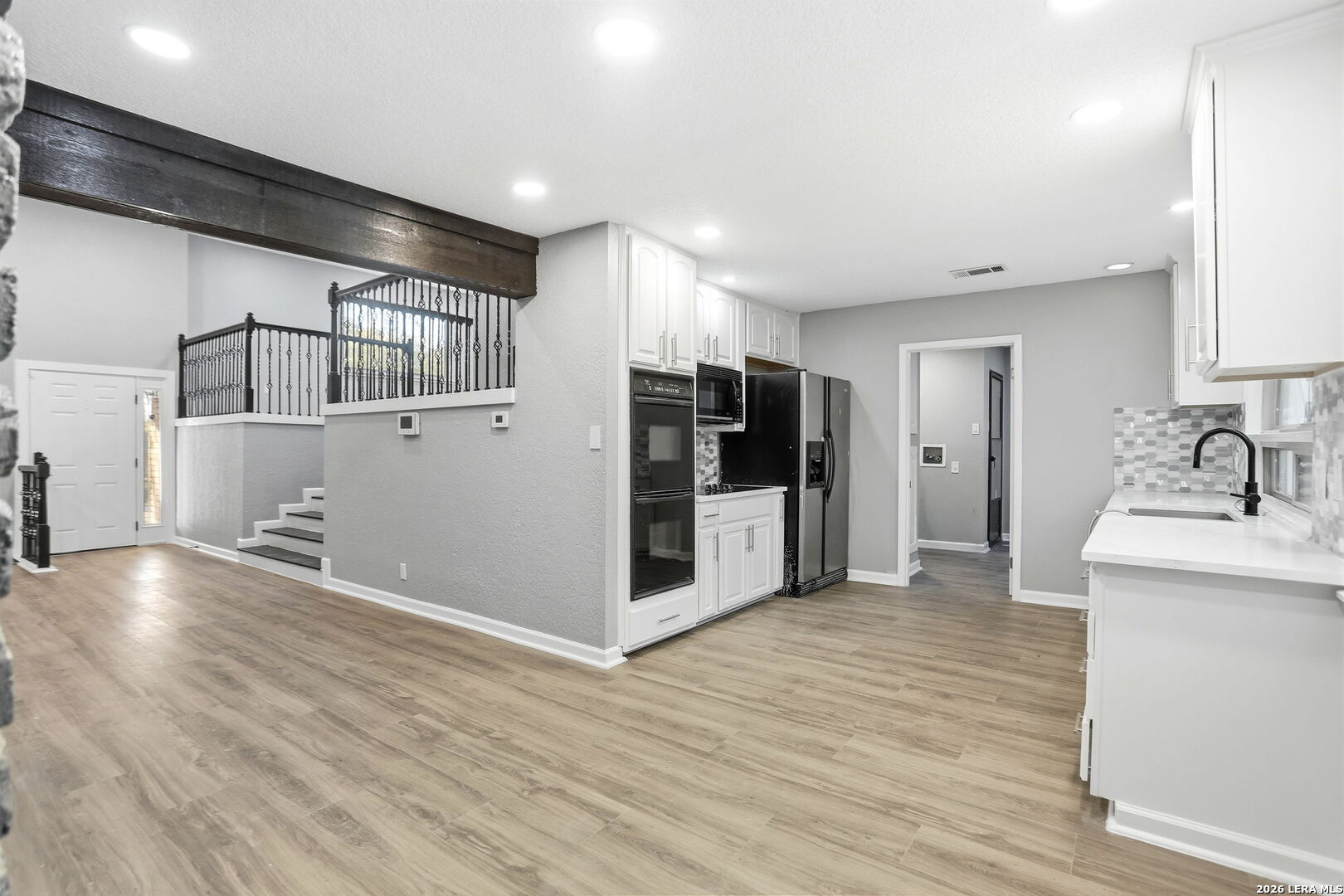 Welcome to this beautifully remodeled 3-bedroom, 2.5-bath brick home offering a spacious split-level layout and modern updates throughout. Step inside to soaring high ceilings and an open-concept living area centered around a cozy fireplace, creating a warm and inviting space for both everyday living and entertaining. The home has been thoughtfully updated with fresh interior paint, brand-new flooring, and stylish light fixtures throughout. The remodeled kitchen features modern finishes and flows seamlessly into the main living and dining areas, making it perfect for gatherings. Both full bathrooms and the powder bath have been tastefully renovated, offering a clean and contemporary feel. Outside, you'll find a generously sized backyard with plenty of space for outdoor entertaining, gardening, pets, or simply relaxing. With its combination of classic brick exterior, modern updates, and functional layout, this home offers comfort, style, and move-in-ready convenience.