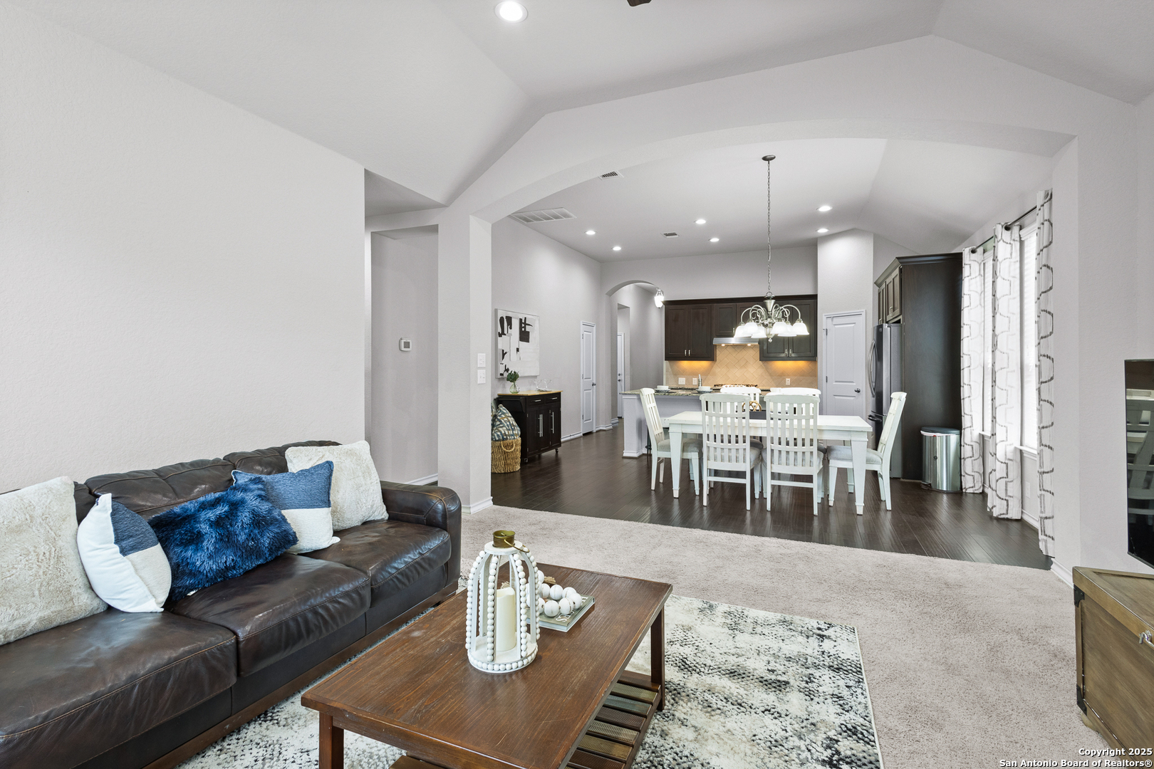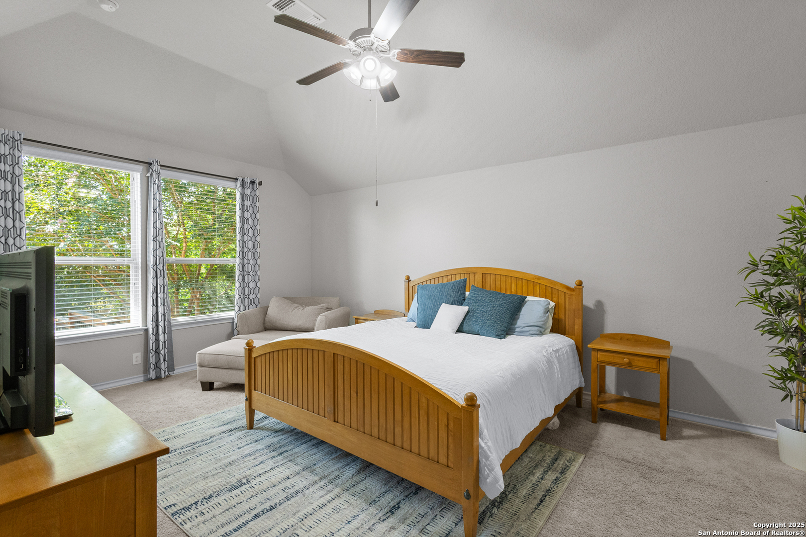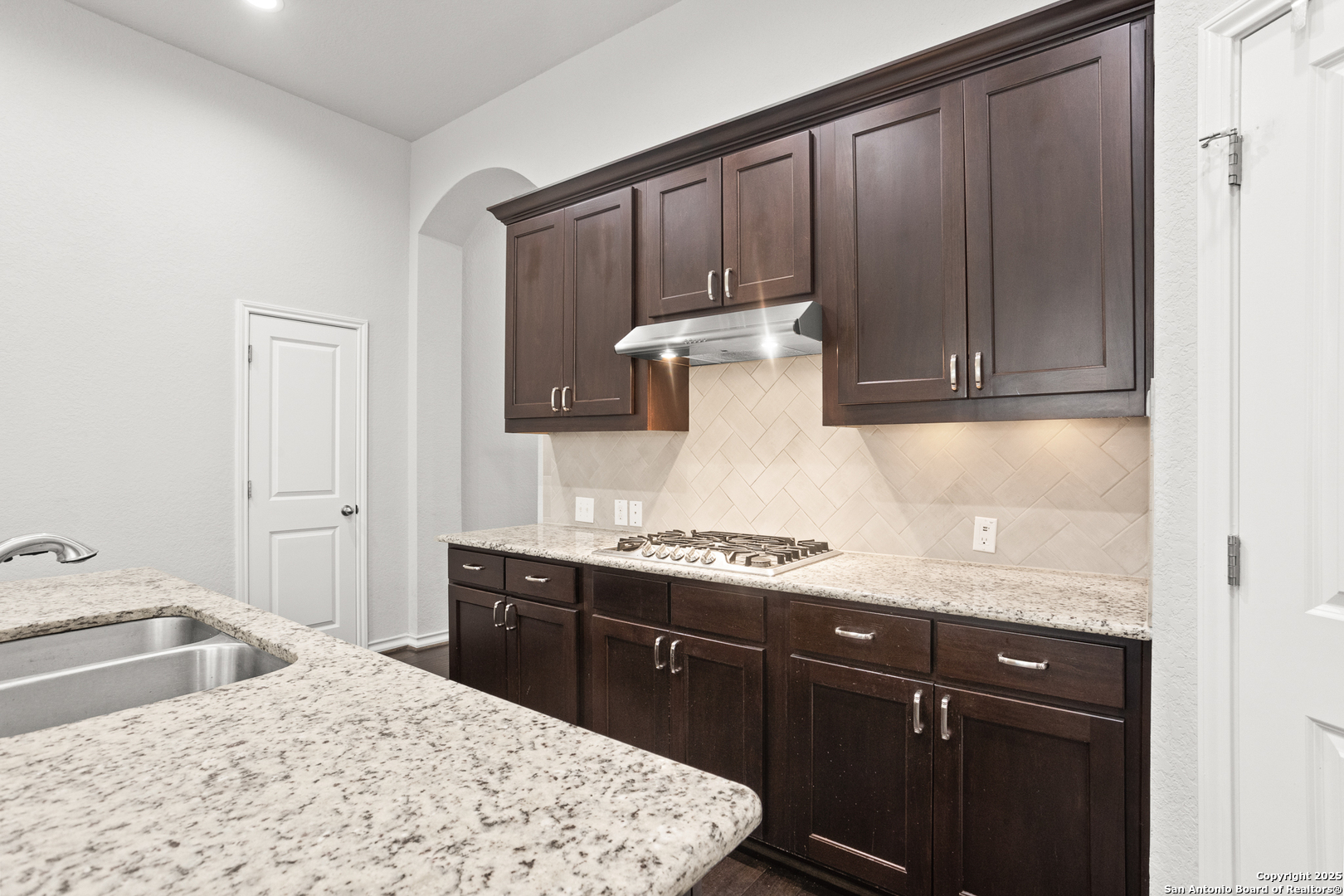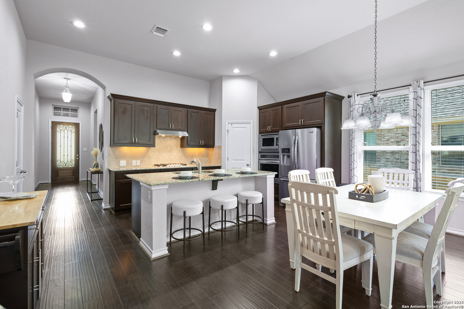 Welcome to 125 Cimarron Creek, nestled in the sought-after gated Ranches at Creekside community in Boerne. This stunning Highland-built one-story home offers 4 bedrooms, 3 bathrooms, and a spacious 3-car garage on nearly a quarter-acre private lot with no back neighbors. Inside, soaring ceilings and an open-concept floor plan showcase a chef-inspired kitchen with stainless steel appliances, gas cooking, under-cabinet lighting, and a large granite island that's perfect for entertaining. The fourth bedroom is an ideal guest suite, as it connects directly to the third full bathroom-offering privacy and comfort for visitors. The primary suite features elegant bay windows and a spa-inspired bathroom with a garden tub and separate shower as the centerpiece. Step outside to your true Texas living space with an extended covered patio featuring retractable shades for added privacy. The deck is more than just a deck-it's designed with storage underneath to neatly stow away your outdoor items, making your backyard oasis as functional as it is relaxing. Permanent Gemstone lighting under the soffits elevates the home's curb appeal and makes holiday lighting a breeze to enjoy year-round. As a resident, you'll also enjoy exceptional HOA amenities including a community swimming pool, jogging trails, a workout facility, and a playground-all within the safety of a gated neighborhood. All of this just minutes from downtown Boerne's shops, dining, and parks, and within the highly rated Boerne ISD.