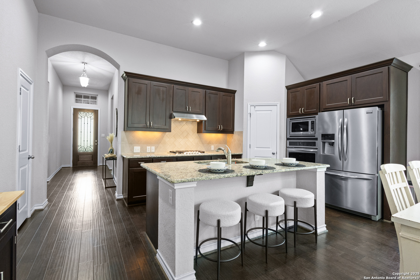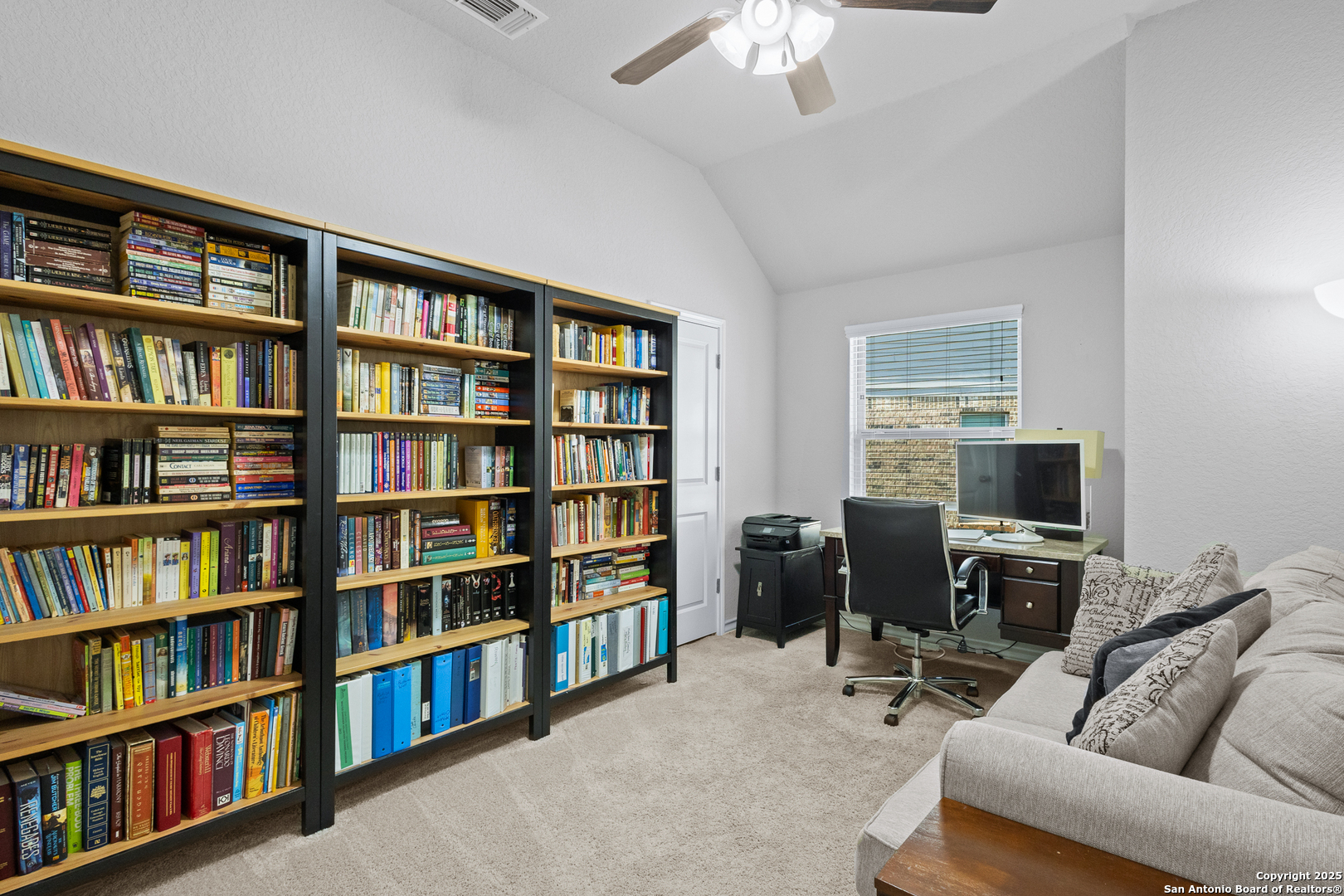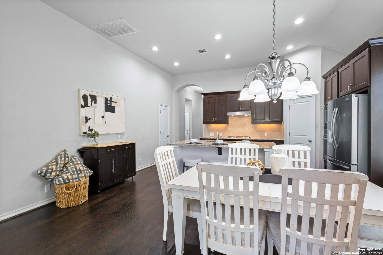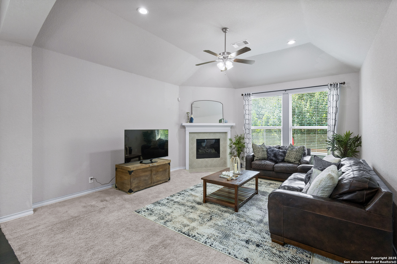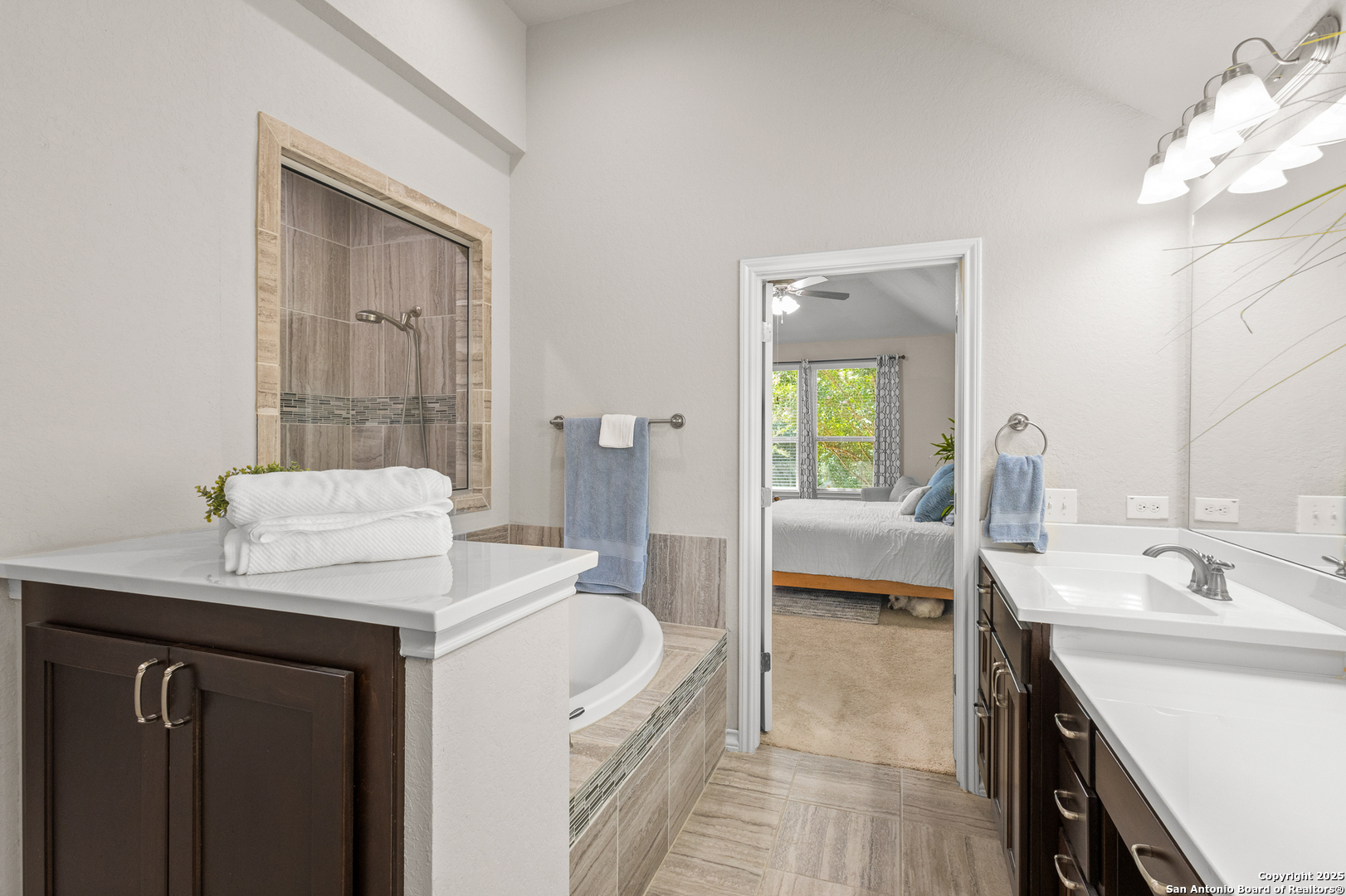 Welcome to 125 Cimarron Creek, nestled in the sought-after gated Ranches at Creekside community in Boerne. This stunning Highland-built one-story home offers 4 bedrooms, 3 bathrooms, and a spacious 3-car garage on nearly a quarter-acre private lot with no back neighbors. Inside, soaring ceilings and an open-concept floor plan showcase a chef-inspired kitchen with stainless steel appliances, gas cooking, under-cabinet lighting, and a large granite island that's perfect for entertaining. The fourth bedroom is an ideal guest suite, as it connects directly to the third full bathroom-offering privacy and comfort for visitors. The primary suite features elegant bay windows and a spa-inspired bathroom with a garden tub and separate shower as the centerpiece. Step outside to your true Texas living space with an extended covered patio featuring retractable shades for added privacy. The deck is more than just a deck-it's designed with storage underneath to neatly stow away your outdoor items, making your backyard oasis as functional as it is relaxing. Permanent Gemstone lighting under the soffits elevates the home's curb appeal and makes holiday lighting a breeze to enjoy year-round. As a resident, you'll also enjoy exceptional HOA amenities including a community swimming pool, jogging trails, a workout facility, and a playground-all within the safety of a gated neighborhood. All of this just minutes from downtown Boerne's shops, dining, and parks, and within the highly rated Boerne ISD.