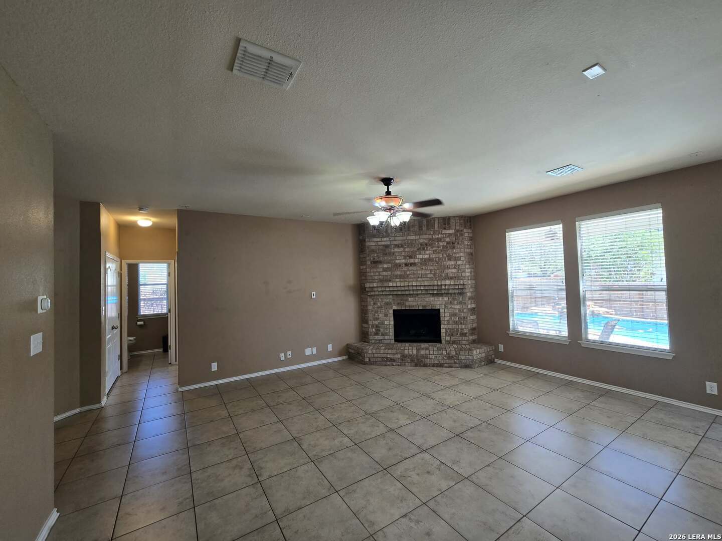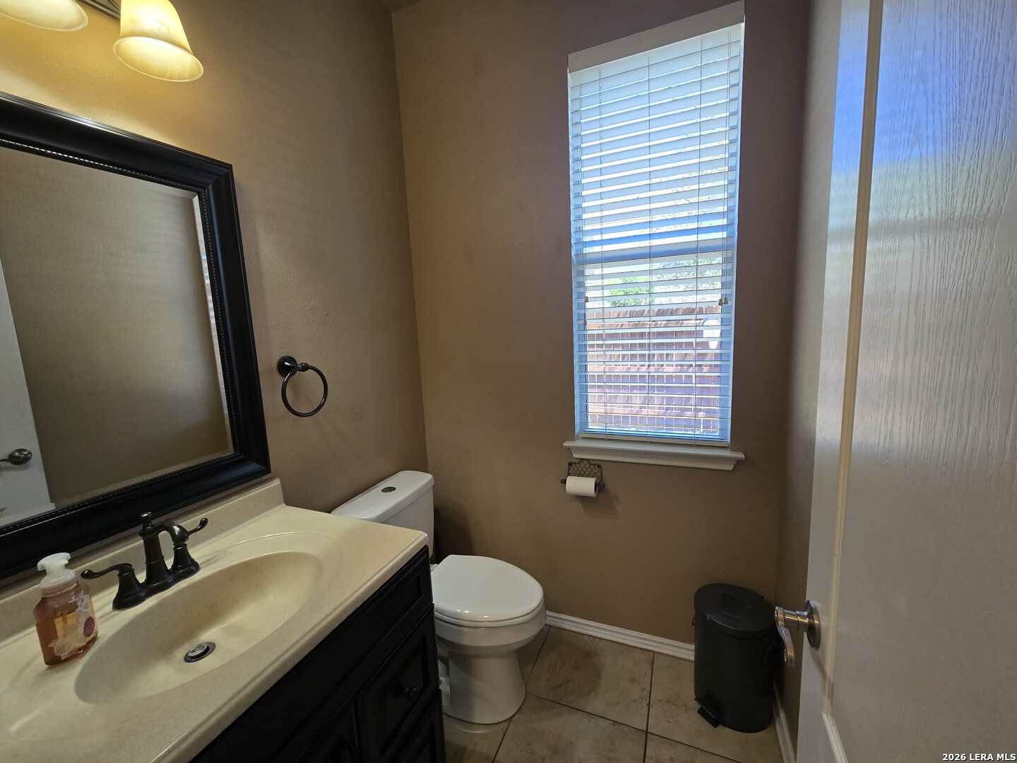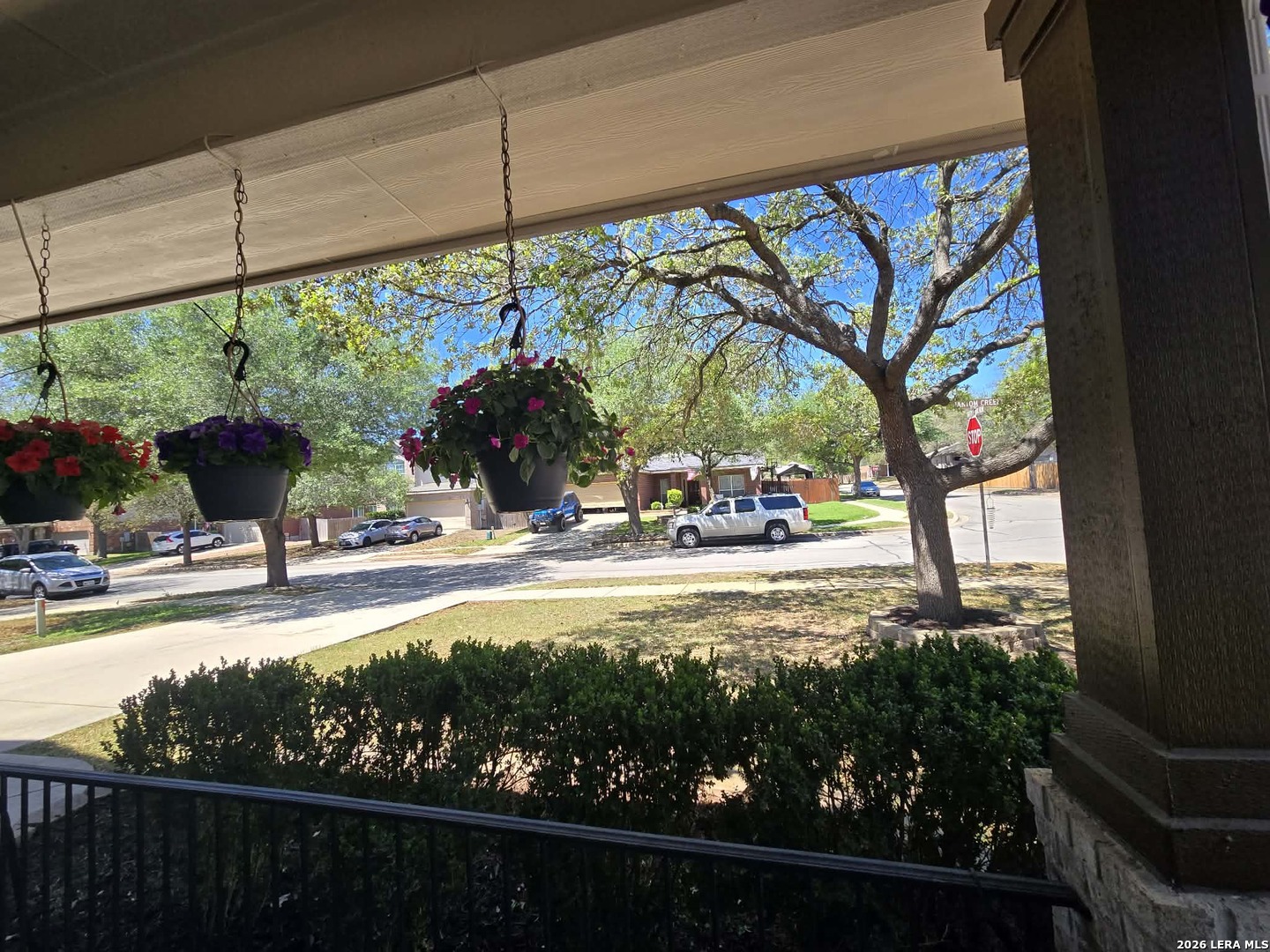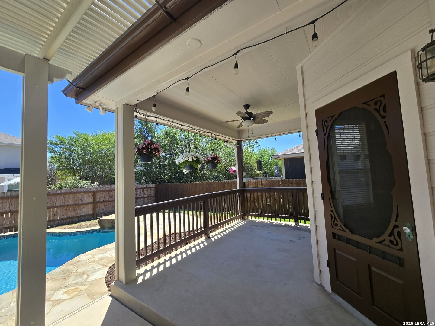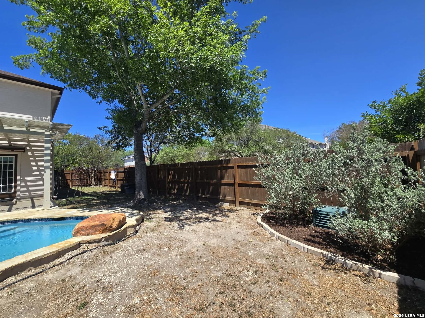 Welcome to this beautifully maintained 4-bedroom, 2.5-bath home with a dedicated study, located in the desirable Falcon Ridge community. This spacious, open floor plan offers multiple living areas, including two separate living spaces and an upstairs game room-ideal for both everyday living and entertaining. The kitchen features a custom-built granite center island, stainless steel appliances, granite countertops, glass tile backsplash, and a walk-in pantry. Tile flooring runs through the main living areas, and the home is filled with natural light throughout. The private study includes exterior access, offering flexibility for a home office or workspace. Step outside to enjoy the oversized covered patio, pergola, and in-ground pool-perfect for outdoor gatherings. Additional exterior features include a sprinkler system, water softener, misting system on the patio, side gates on both sides, and an extra-wide gate with street access. The corner lot provides added space and privacy. Conveniently located near schools, shopping, and Randolph AFB. Move-in ready and designed for comfortable indoor and outdoor living.