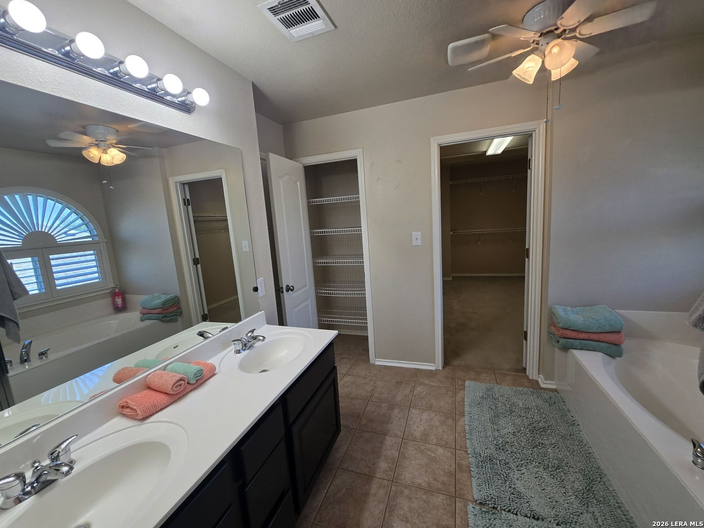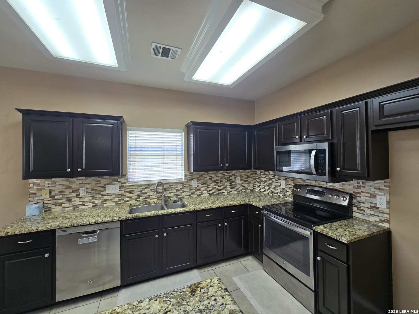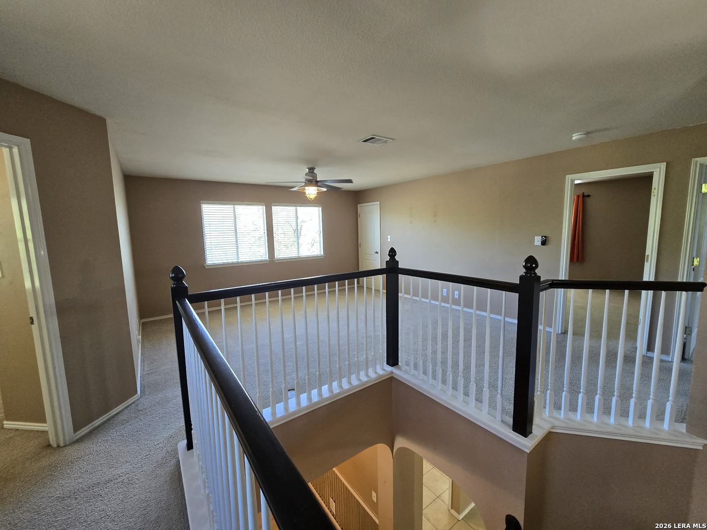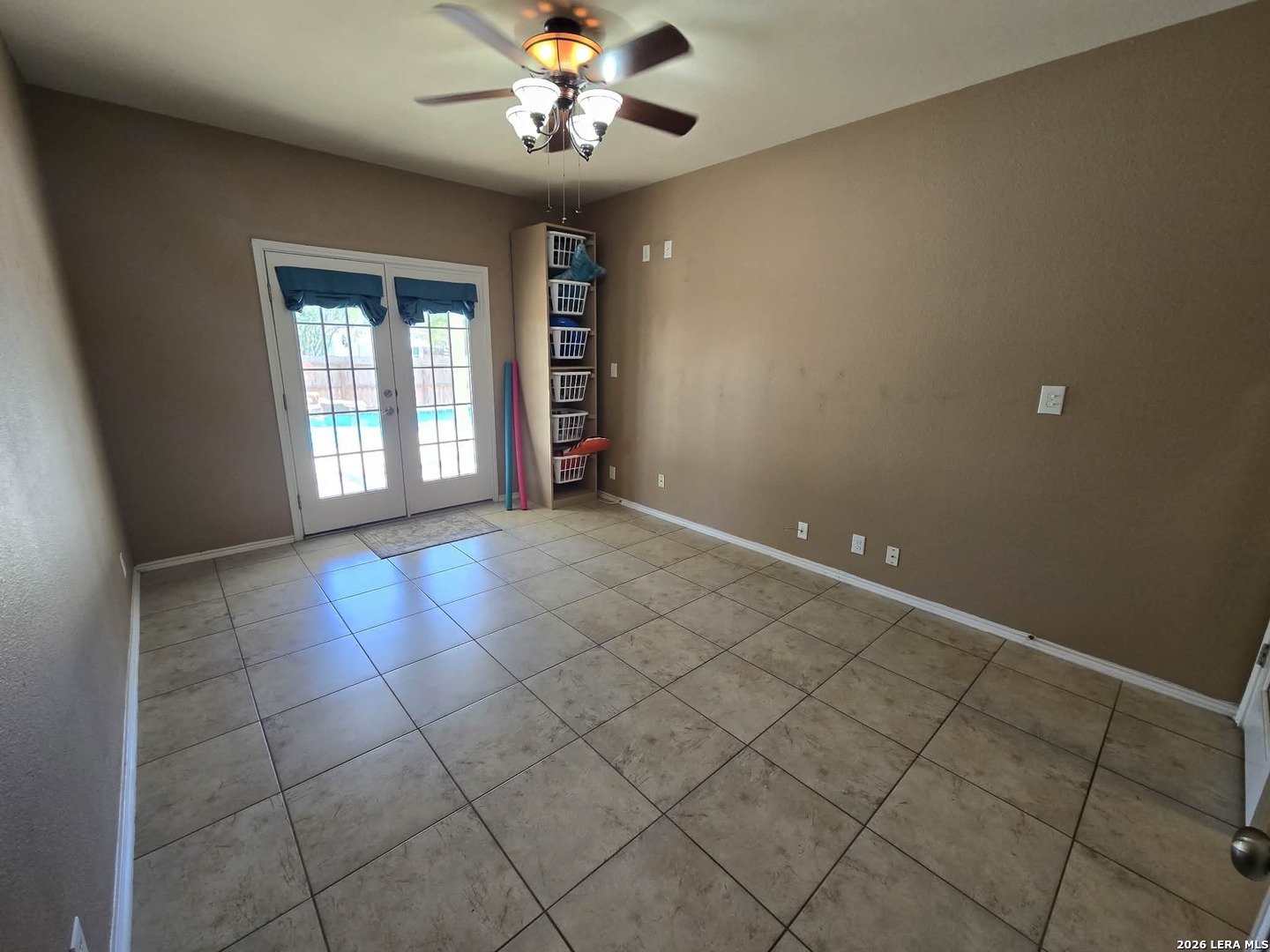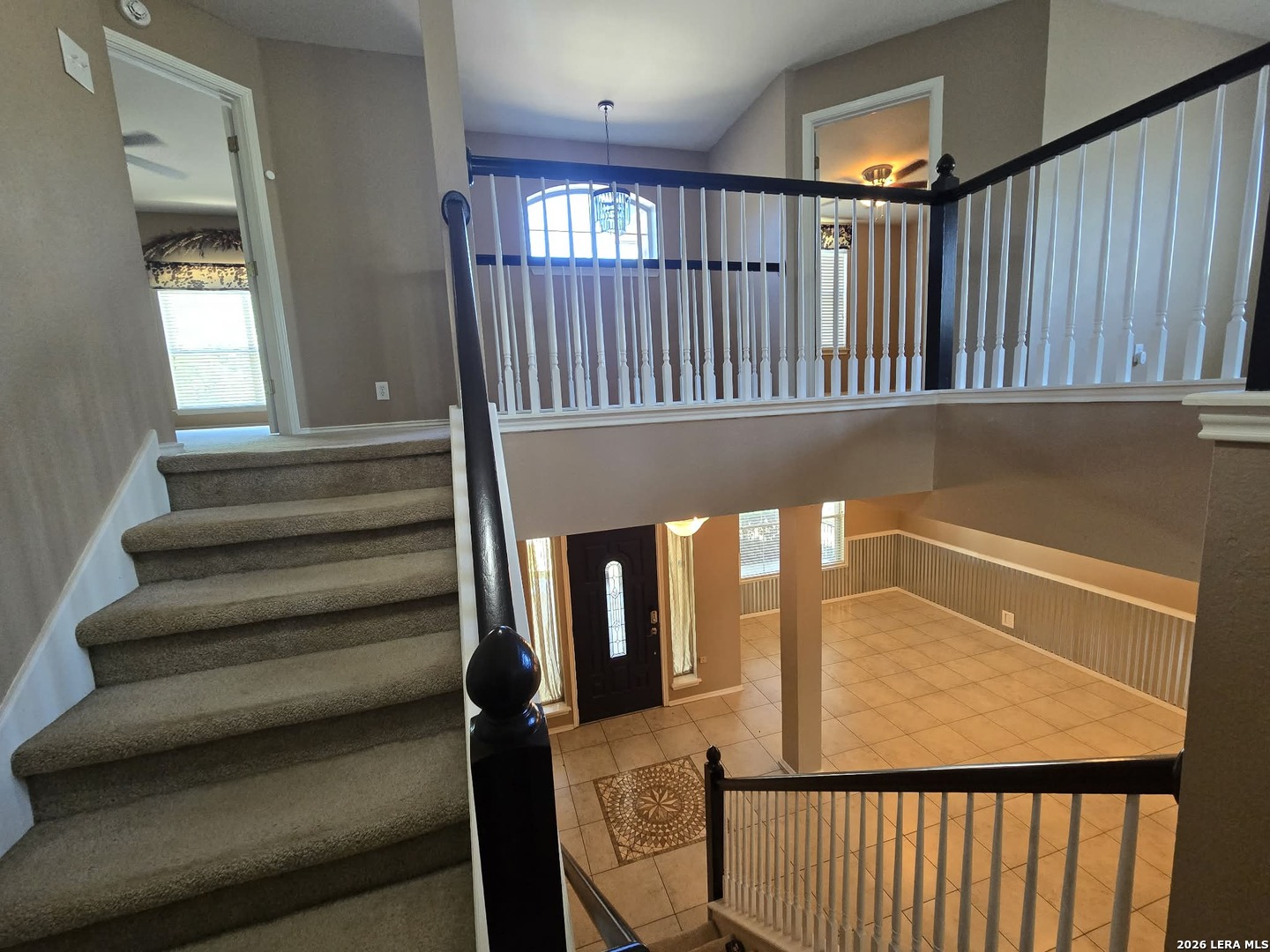 Welcome to this beautifully maintained 4-bedroom, 2.5-bath home with a dedicated study, located in the desirable Falcon Ridge community. This spacious, open floor plan offers multiple living areas, including two separate living spaces and an upstairs game room-ideal for both everyday living and entertaining. The kitchen features a custom-built granite center island, stainless steel appliances, granite countertops, glass tile backsplash, and a walk-in pantry. Tile flooring runs through the main living areas, and the home is filled with natural light throughout. The private study includes exterior access, offering flexibility for a home office or workspace. Step outside to enjoy the oversized covered patio, pergola, and in-ground pool-perfect for outdoor gatherings. Additional exterior features include a sprinkler system, water softener, misting system on the patio, side gates on both sides, and an extra-wide gate with street access. The corner lot provides added space and privacy. Conveniently located near schools, shopping, and Randolph AFB. Move-in ready and designed for comfortable indoor and outdoor living.