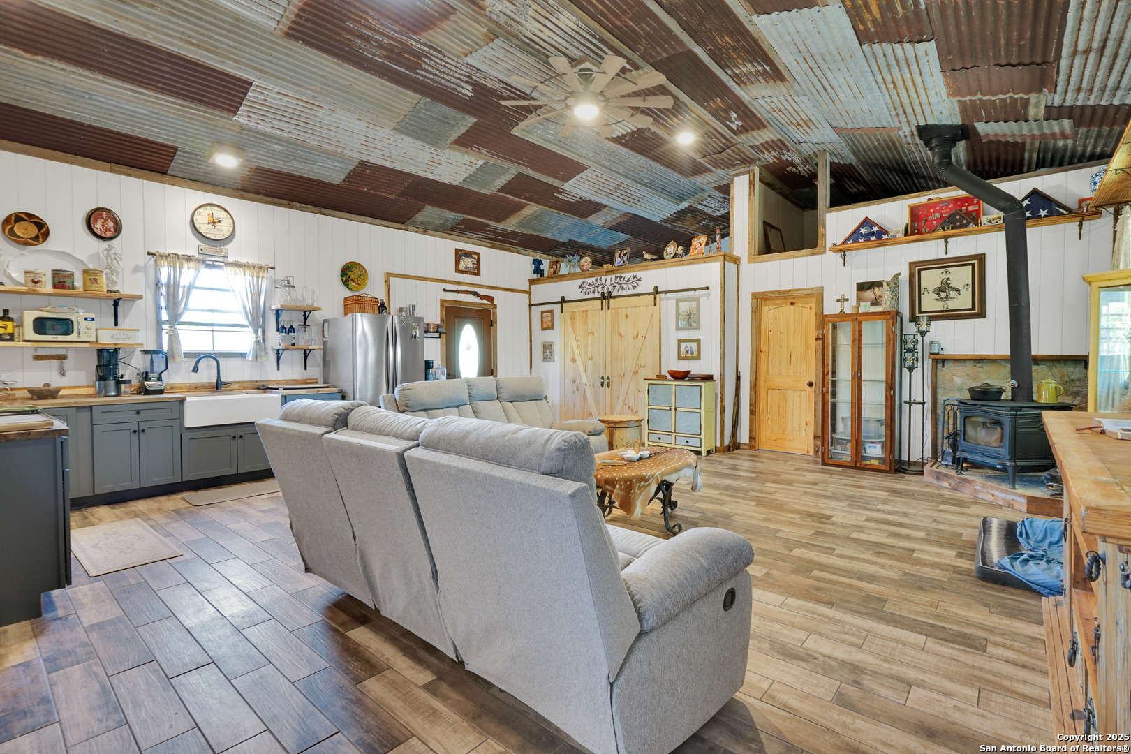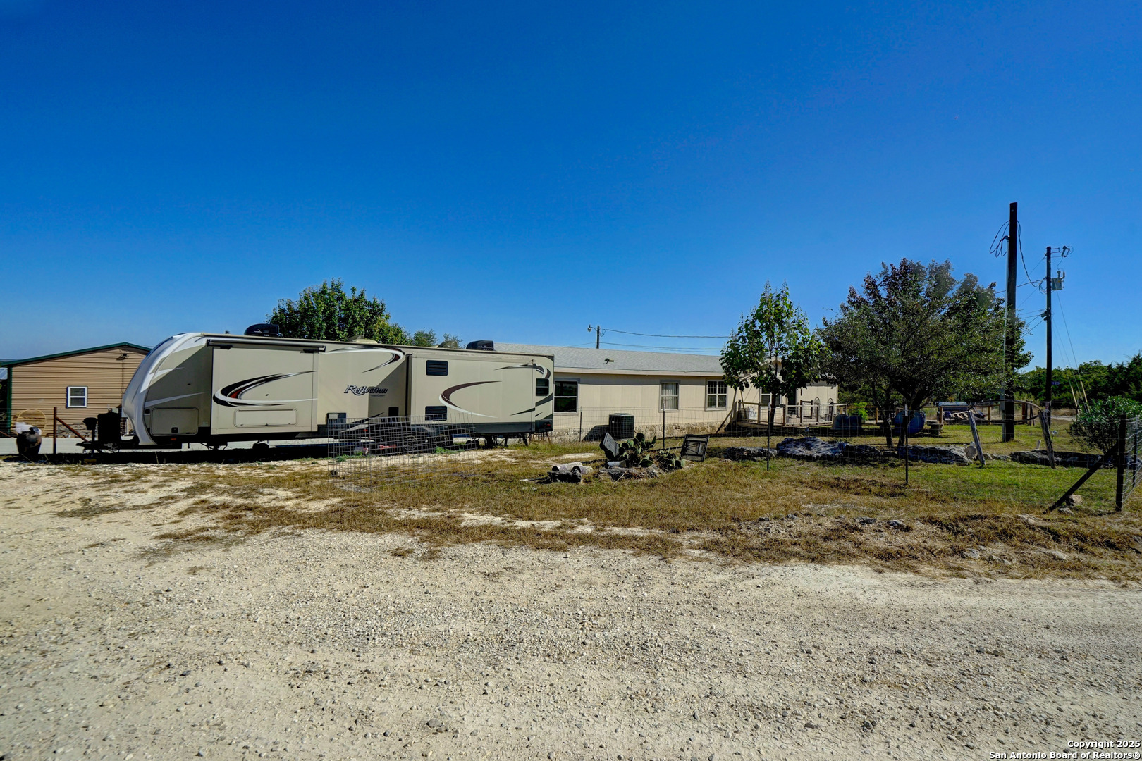 Welcome to this truly unique property in the desirable Woodcreek community, offering the perfect blend of comfort, space, and versatility. Nestled on an impressive 4.5-acre lot, this exceptional estate includes not only a spacious 2,300 sq. ft. single-level manufactured home but also a 1,000 sq. ft. Barndominium (2024)-making it ideal for multi-generational living, a guest retreat, or potential income opportunity. The main residence features a beautiful open floor plan designed for modern living. Inside, you'll find 4 bedrooms and 2 full bathrooms, offering plenty of room for family and guests. The living area is bright and inviting, with a seamless flow between the living room, dining space, and kitchen-perfect for entertaining or enjoying quiet evenings at home. The kitchen boasts ample cabinetry, Butcher Block countertops, generous counter space, and modern finishes, creating a warm and functional centerpiece for daily life. The primary suite offers a private retreat, complete with a full ensuite bathroom, while the additional bedrooms are well-sized and thoughtfully placed to provide comfort and privacy for everyone. Beyond the main home, the barndominium is a standout feature of this property. Built in 2024, the space spans 1,000 sq. ft. and provides endless possibilities-ideal for guests, extended family, or even a home office or studio. With its newer construction, it delivers a fresh, modern touch to this expansive property. Outdoors, you'll enjoy the tranquility and freedom that 4.5 acres provides. There's ample space for recreation, gardening, or future expansion, plus a storage shed for tools and equipment. You are even allowed to have livestock! Whether you envision hosting gatherings, starting a small hobby farm, or simply enjoying wide-open Texas skies, this property offers room to make it your own. This Woodcreek gem combines the best of country living with modern comfort and convenience-a rare opportunity to own a multi-use property with space, flexibility, and charm. Don't miss your chance to experience this remarkable home and its endless potential. Schedule your private tour today!