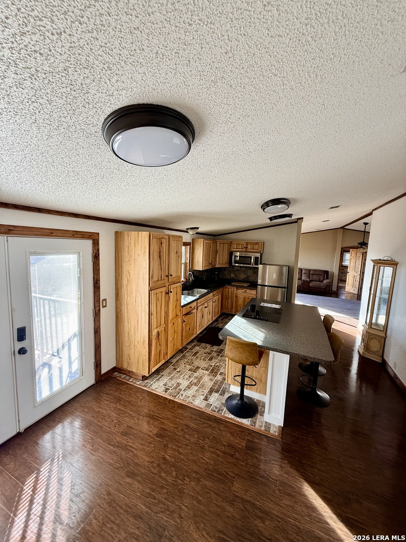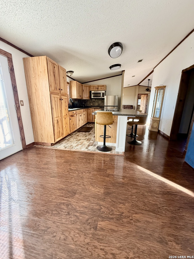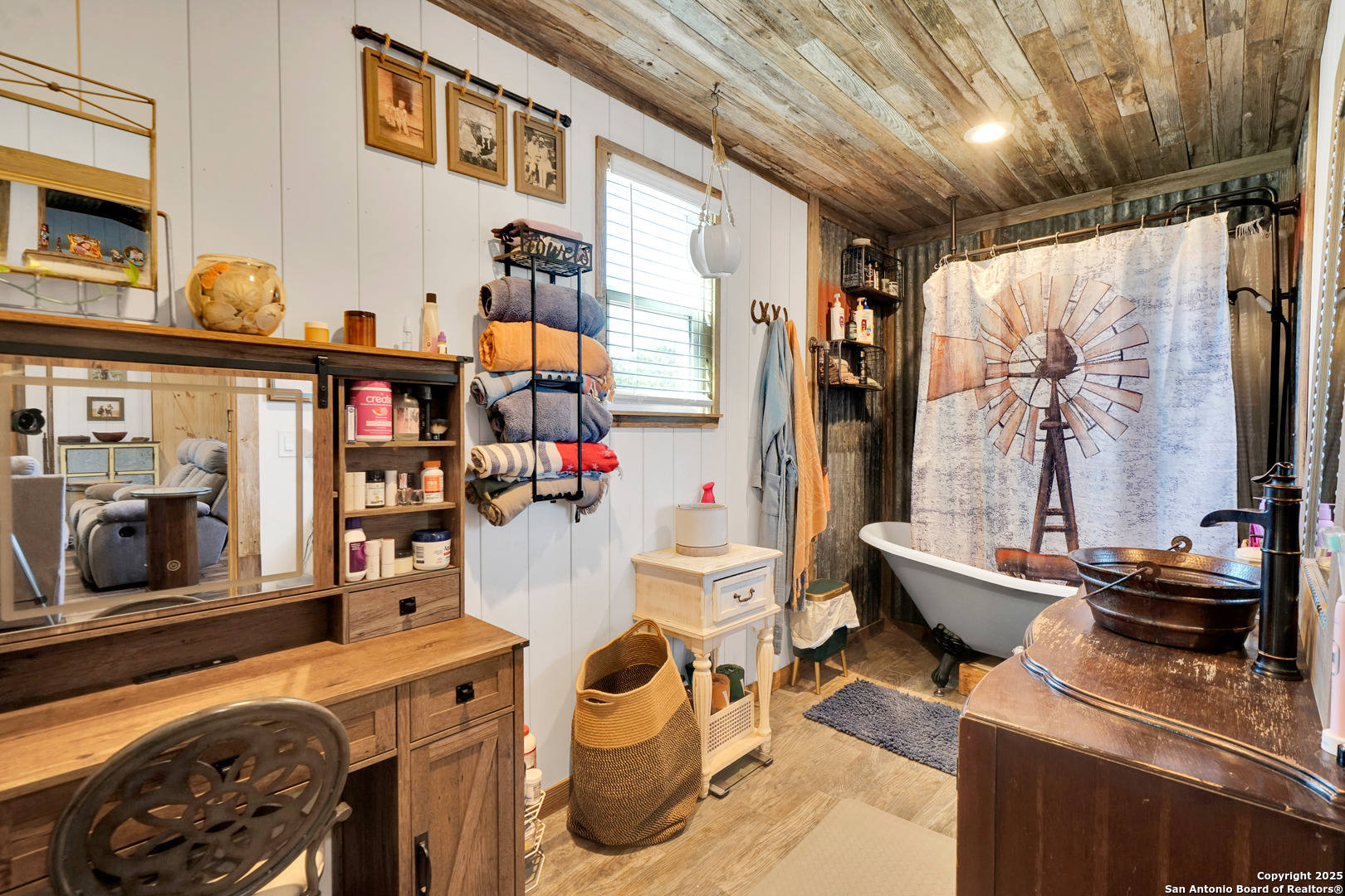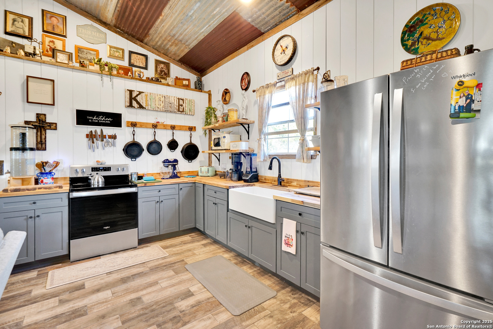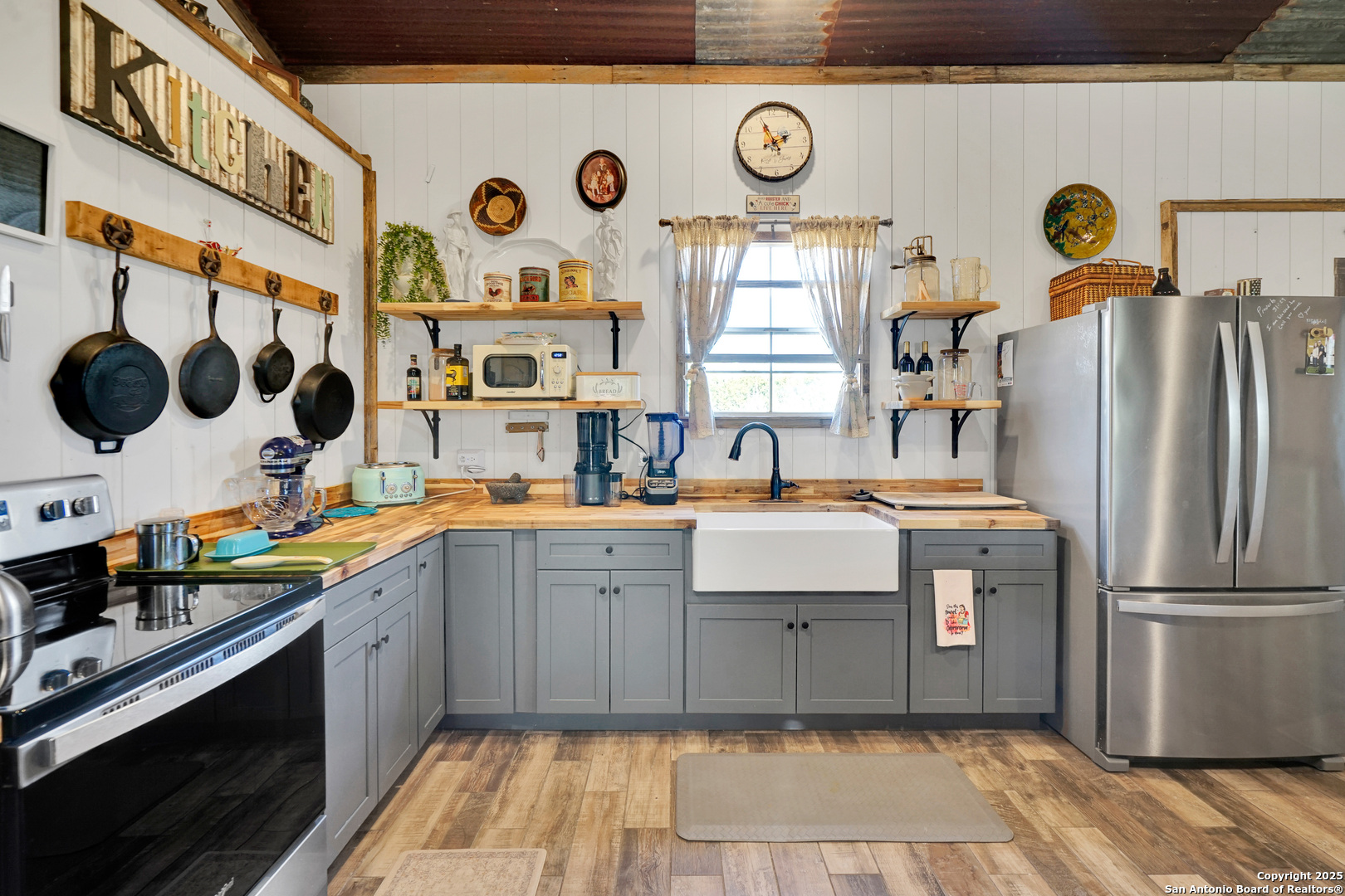 Imagine waking up to wide-open Texas skies and the freedom of 4.5 acres in the sought-after Woodcreek community. This estate offers not just one, but two incredible living spaces: a 2,300 sq. ft. single-level home designed with an airy, open floor plan, and a brand-new 1,000 sq. ft. barndominium built in 2024. Together, they create endless opportunities for multi-generational living, guest accommodations, or even rental income. Inside the main home, you'll find four spacious bedrooms and two full bathrooms, with the living, dining, and kitchen areas flowing seamlessly for both entertaining and everyday comfort. The kitchen stands out with butcher block countertops, abundant cabinetry, and modern finishes that make it both stylish and functional. The primary suite offers a private retreat, while the additional bedrooms provide flexibility for family, guests, or a home office. The barndominium adds a modern edge to the property, perfect for creative pursuits, extended stays, or a dedicated workspace. Outside, the land invites you to dream big-whether it's gardening, raising livestock, or simply enjoying the peace and privacy of country living. With room to expand and space to breathe, this property is more than a home; it's a lifestyle. Schedule your private showing today and see how this Woodcreek gem can bring your vision to life.
