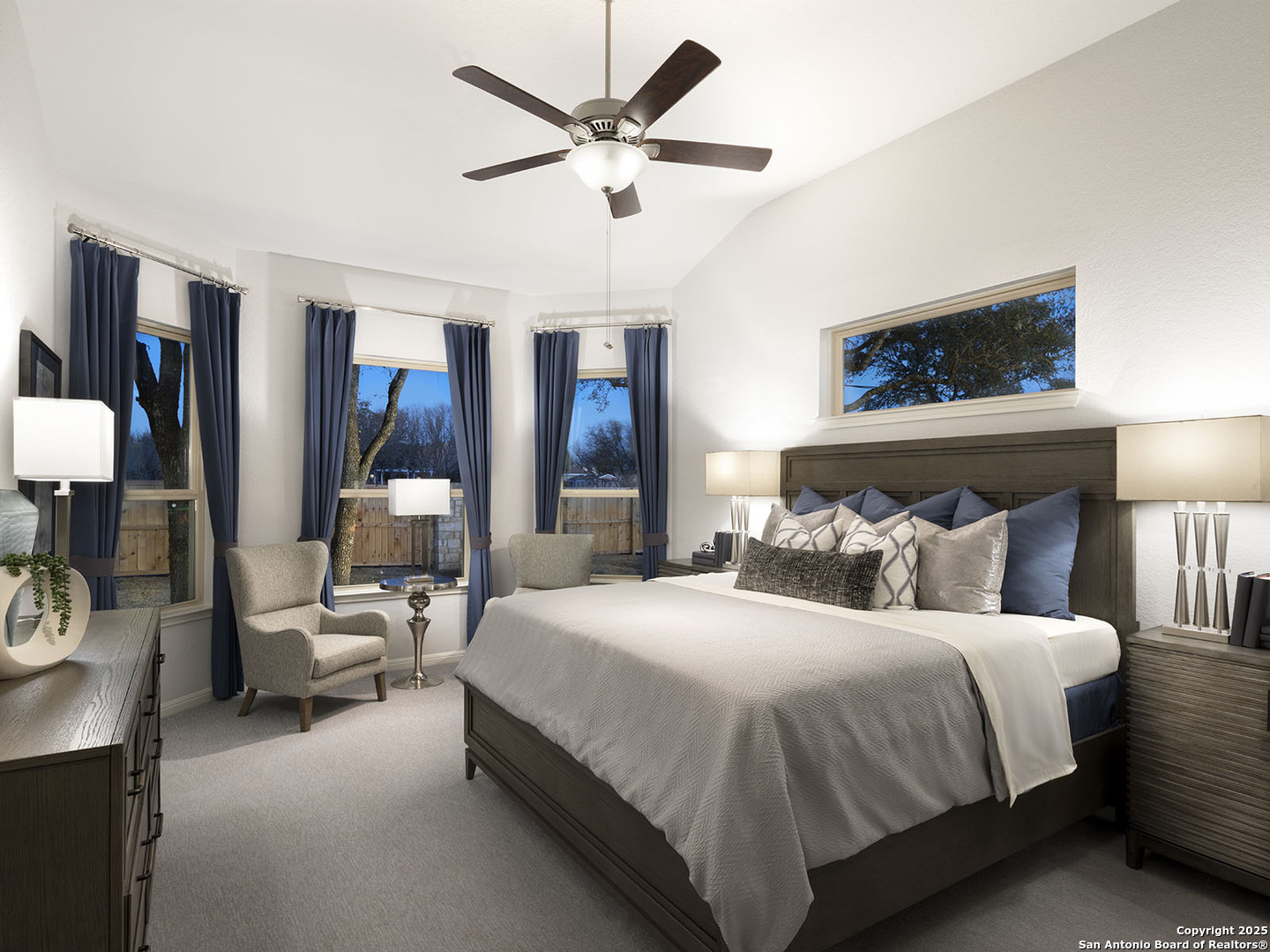 Brand new, energy-efficient home available by Dec 2025! The Evergreen's front flex space and living room with volume ceiling make a striking impression. Tucked in the rear of the home, the primary suite is secluded from the secondary bedrooms and game room upstairs. Starting in the $300s, Carmel Ranch is located in southern Schertz, just northeast of San Antonio. This prime location offers quick access to I-10 and Loop 1604 and is served by the highly acclaimed, 'A'-rated Schertz-Cibolo-Universal City ISD. Residents can embrace nature with nearby parks and scenic trails, creating the ideal balance between convenience and outdoor living. Discover a better way of life at Carmel Ranch-stake your claim today! Each of our homes is built with innovative, energy-efficient features designed to help you enjoy more savings, better health, real comfort and peace of mind. Photos are of similar model but not that of exact house. Pictures, photographs, colors, features, and sizes are for illustration purposes only and will vary from the homes as built.