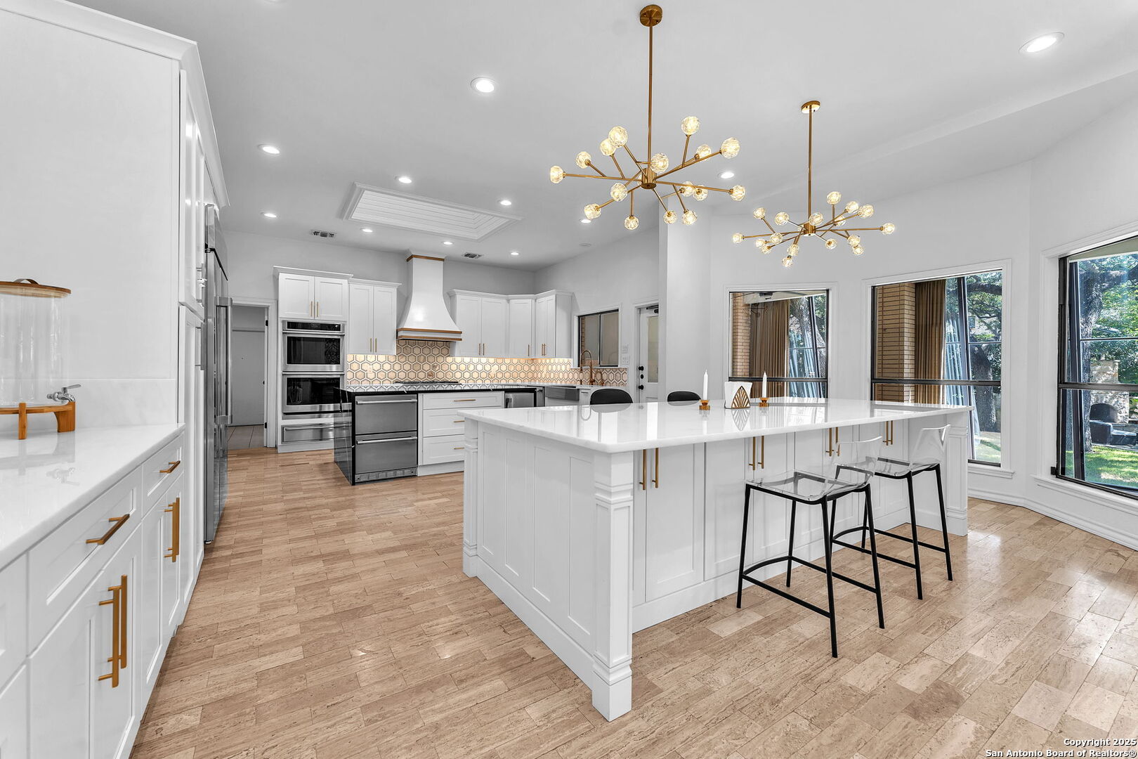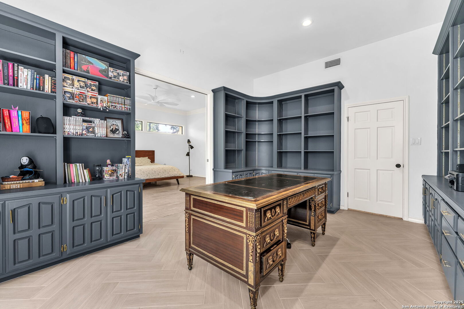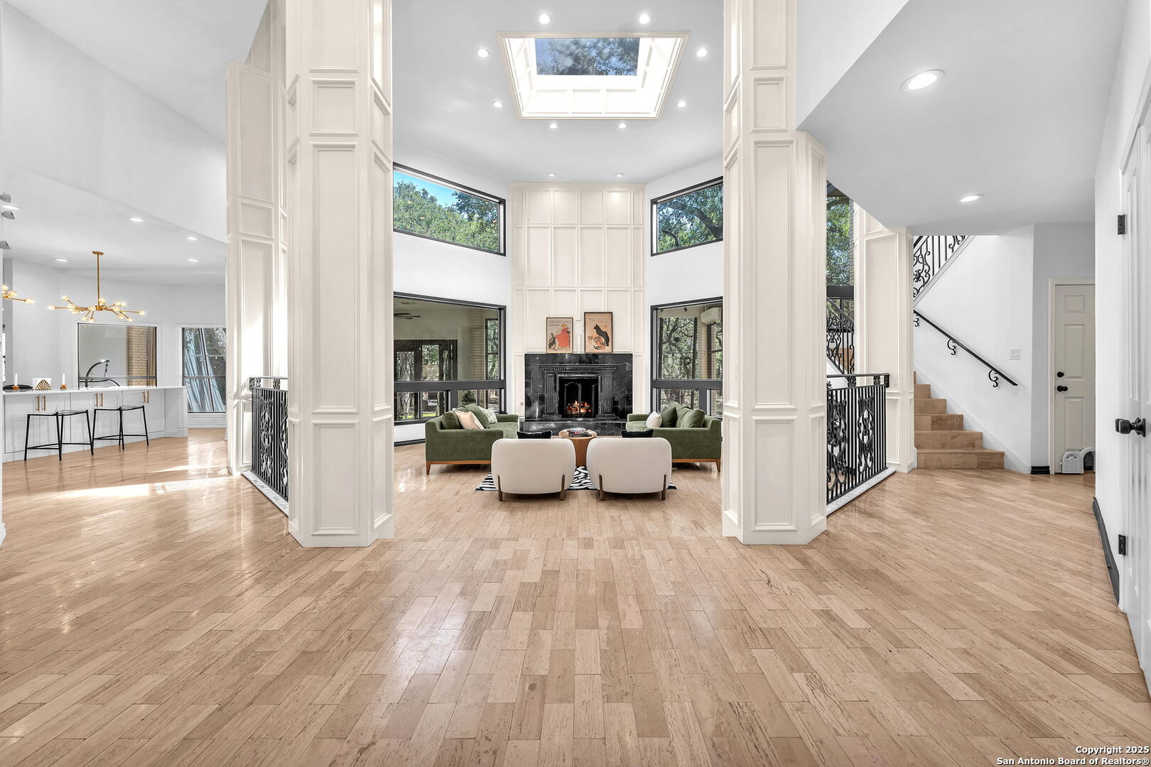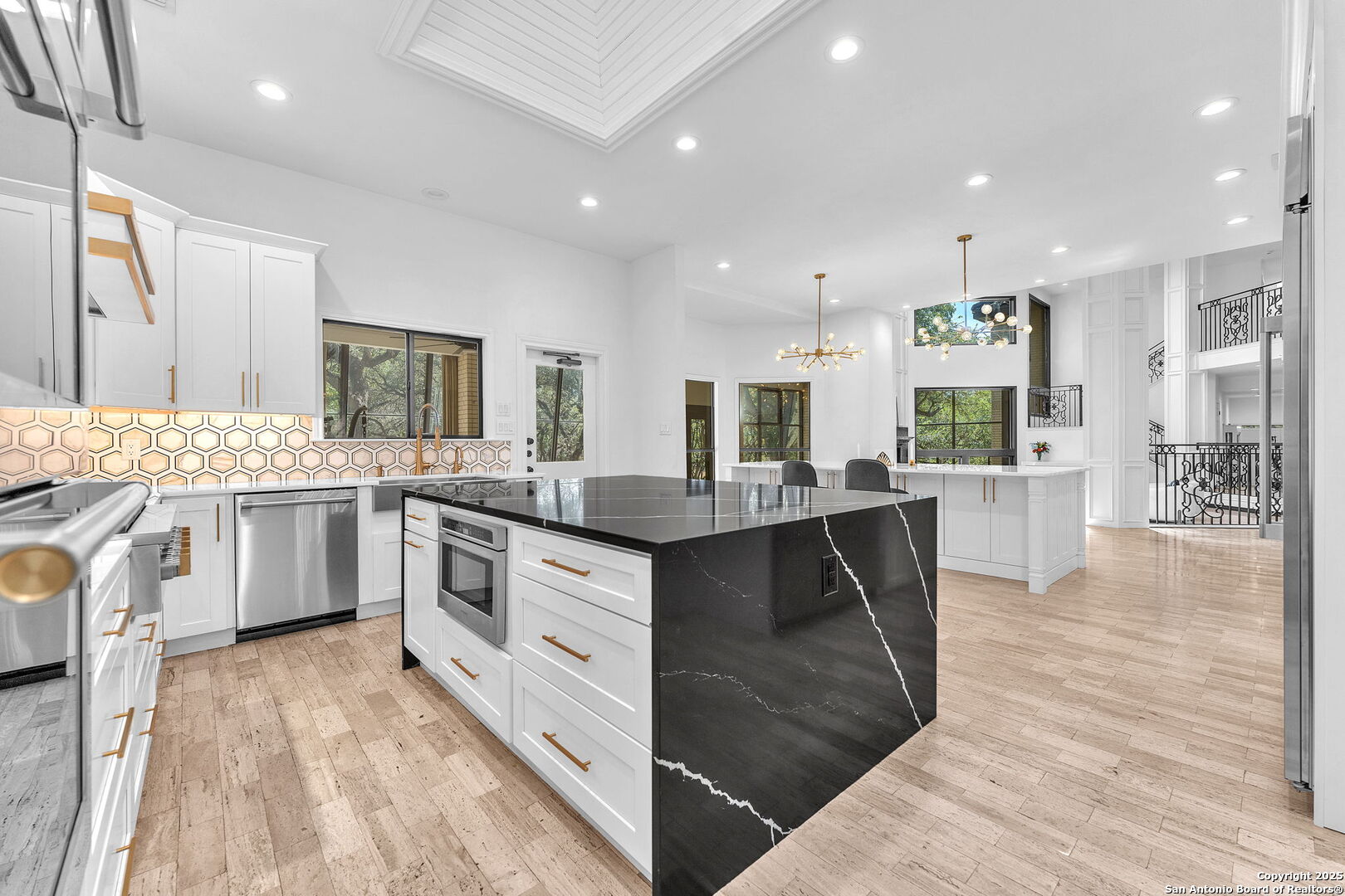 Luxury Living in the Exclusive Elm Creek Community Welcome to an entertainer's paradise in the prestigious gated Elm Creek neighborhood. This beautifully updated 5-bedroom, 4.5-bath estate offers approximately 6,235 sq ft of refined living space on a private 0.62-acre greenbelt lot-the perfect blend of elegance, comfort, and timeless design. Grand, Sophisticated Interiors Step into a stunning foyer with soaring ceilings and an open-concept layout that flows effortlessly between living, dining, and entertainment spaces. The gourmet chef's kitchen features: Quartzite & marble countertops Custom cabinetry Dual oversized islands High-end appliances Perfect for both intimate meals and large-scale gatherings. Multiple living areas-including a formal living room, media/game room, sunroom, and library/study-offer versatility for work, relaxation, or entertainment. Private Main-Level Retreat The spacious primary suite is tucked away on the main floor and includes: A built-in office with direct backyard access A generous walk-in closet A spa-inspired ensuite with garden tub, double vanities & elegant finishes Four secondary bedrooms provide excellent space for family, guests, or multi-generational living, each featuring thoughtful built-ins and flexible layouts. Resort-Style Outdoor Oasis Your backyard sanctuary awaits with: Sparkling pool Outdoor fireplace Built-in BBQ pit & full outdoor kitchen Lush greenbelt backdrop for exceptional privacy Mature trees, special lighting & an expansive brick patio Perfect for entertaining or unwinding in total tranquility. Luxury, Comfort & Convenience Additional highlights include: Marble, ceramic, tile & carpet flooring Skylights & wet bar Security system Oversized 3-car side-entry garage Sprinkler system & wrought-iron fencing Prime access to I-10, 410, 1604 & 281, premier shopping, dining, and the Medical Center
