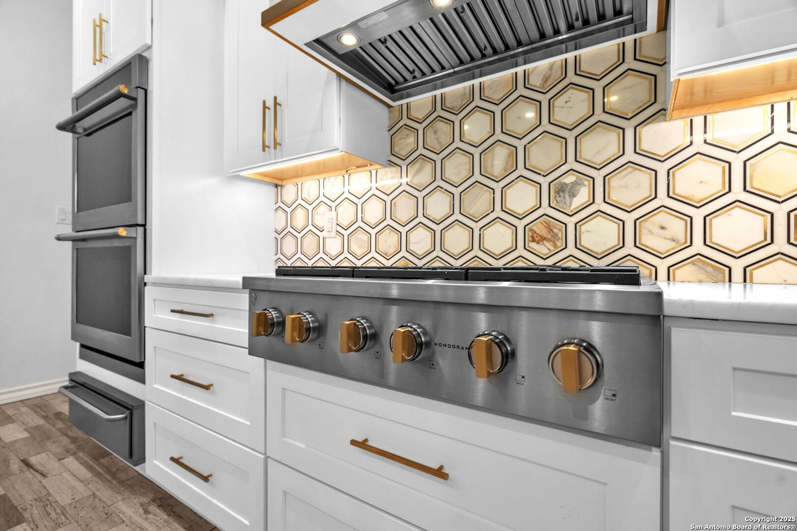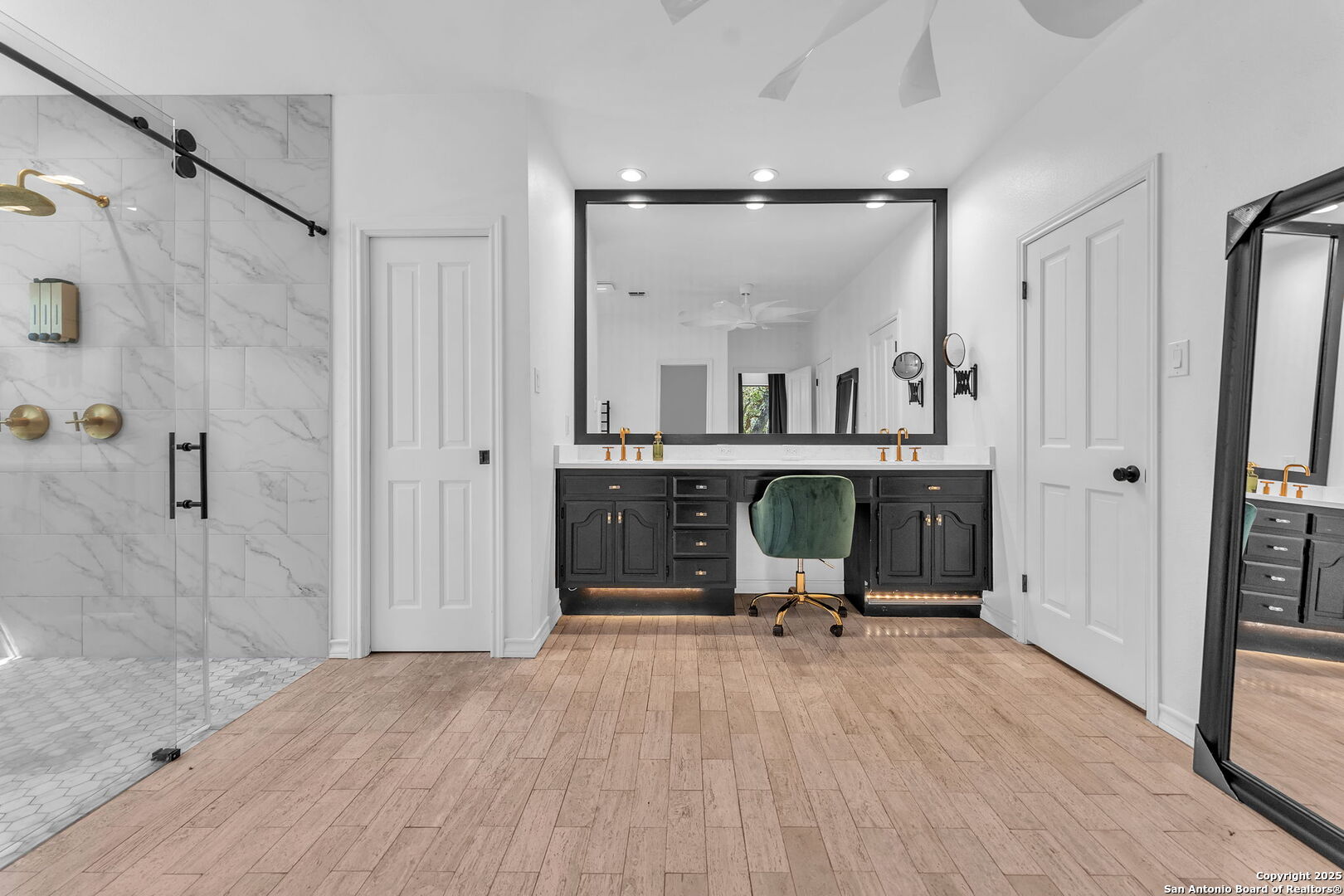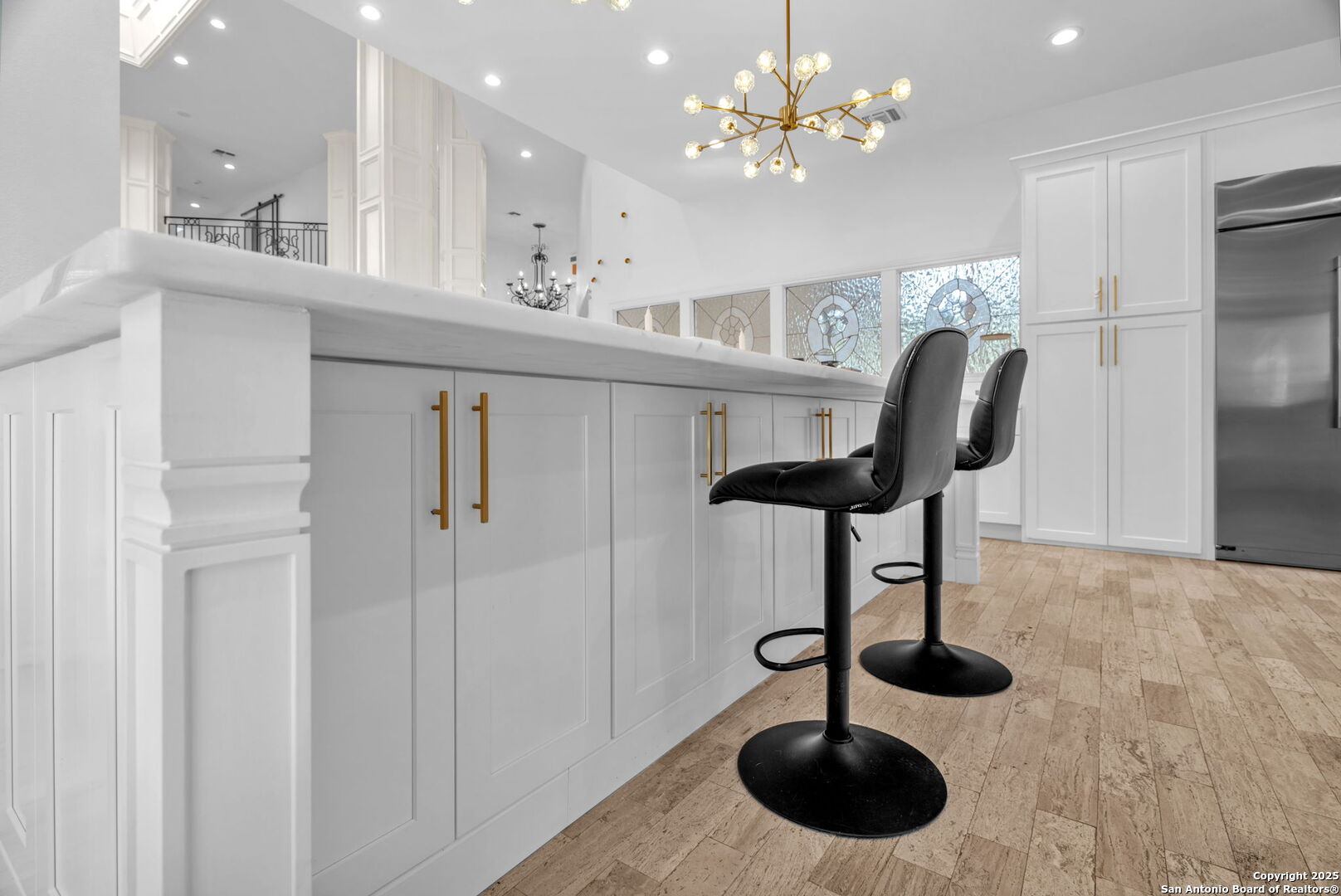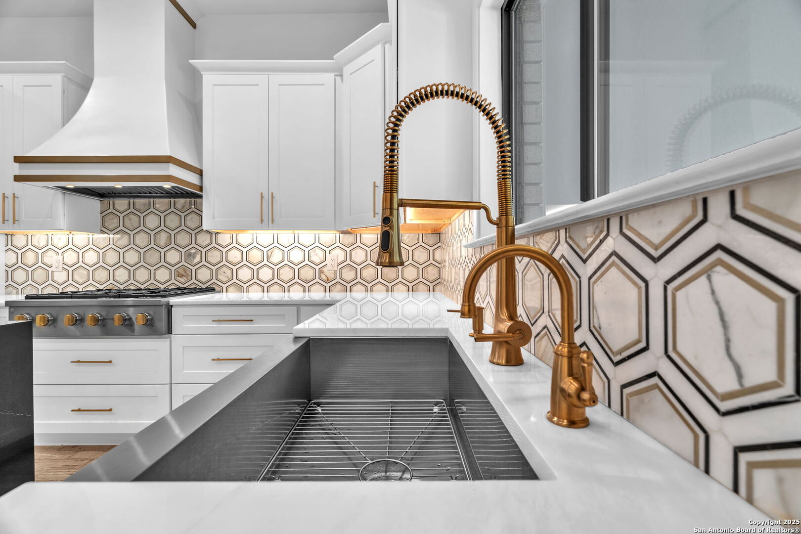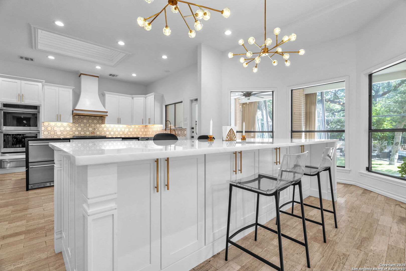 Luxury Living in the Exclusive Elm Creek Community Welcome to an entertainer's paradise in the prestigious gated Elm Creek neighborhood. This beautifully updated 5-bedroom, 4.5-bath estate offers approximately 6,235 sq ft of refined living space on a private 0.62-acre greenbelt lot-the perfect blend of elegance, comfort, and timeless design. Grand, Sophisticated Interiors Step into a stunning foyer with soaring ceilings and an open-concept layout that flows effortlessly between living, dining, and entertainment spaces. The gourmet chef's kitchen features: Quartzite & marble countertops Custom cabinetry Dual oversized islands High-end appliances Perfect for both intimate meals and large-scale gatherings. Multiple living areas-including a formal living room, media/game room, sunroom, and library/study-offer versatility for work, relaxation, or entertainment. Private Main-Level Retreat The spacious primary suite is tucked away on the main floor and includes: A built-in office with direct backyard access A generous walk-in closet A spa-inspired ensuite with garden tub, double vanities & elegant finishes Four secondary bedrooms provide excellent space for family, guests, or multi-generational living, each featuring thoughtful built-ins and flexible layouts. Resort-Style Outdoor Oasis Your backyard sanctuary awaits with: Sparkling pool Outdoor fireplace Built-in BBQ pit & full outdoor kitchen Lush greenbelt backdrop for exceptional privacy Mature trees, special lighting & an expansive brick patio Perfect for entertaining or unwinding in total tranquility. Luxury, Comfort & Convenience Additional highlights include: Marble, ceramic, tile & carpet flooring Skylights & wet bar Security system Oversized 3-car side-entry garage Sprinkler system & wrought-iron fencing Prime access to I-10, 410, 1604 & 281, premier shopping, dining, and the Medical Center