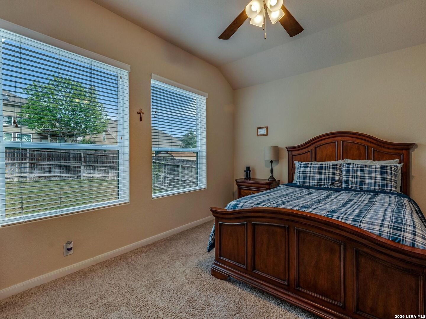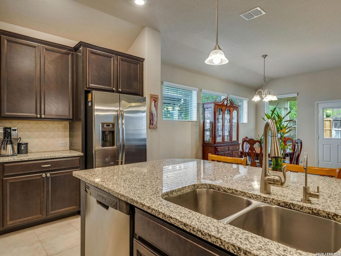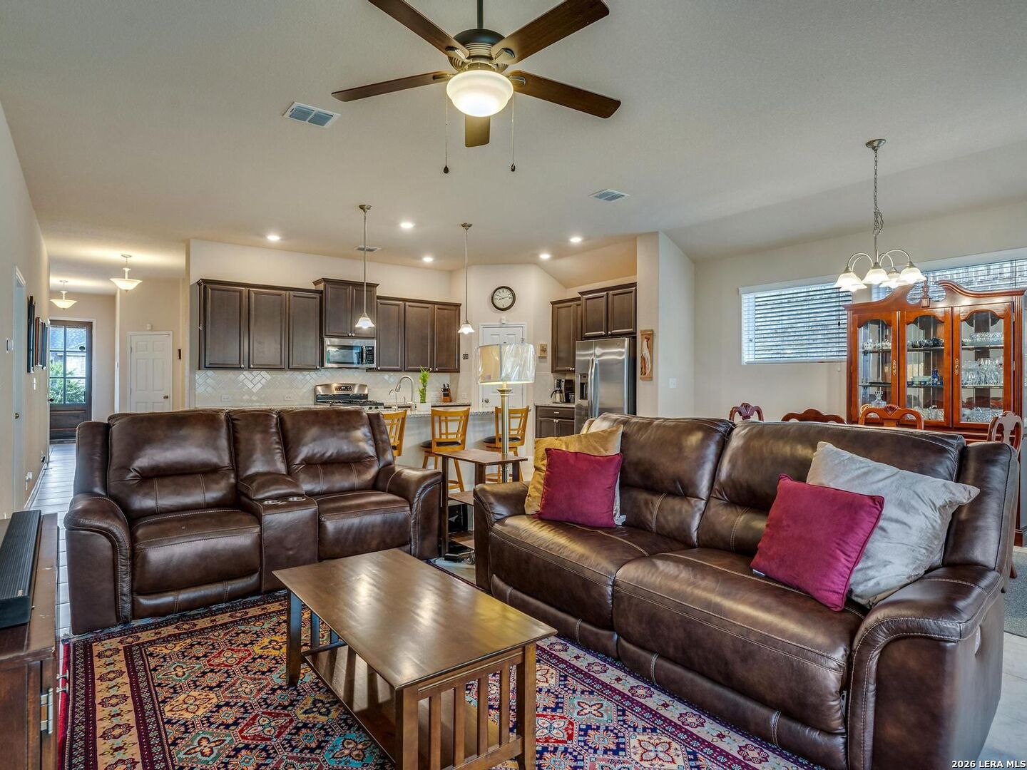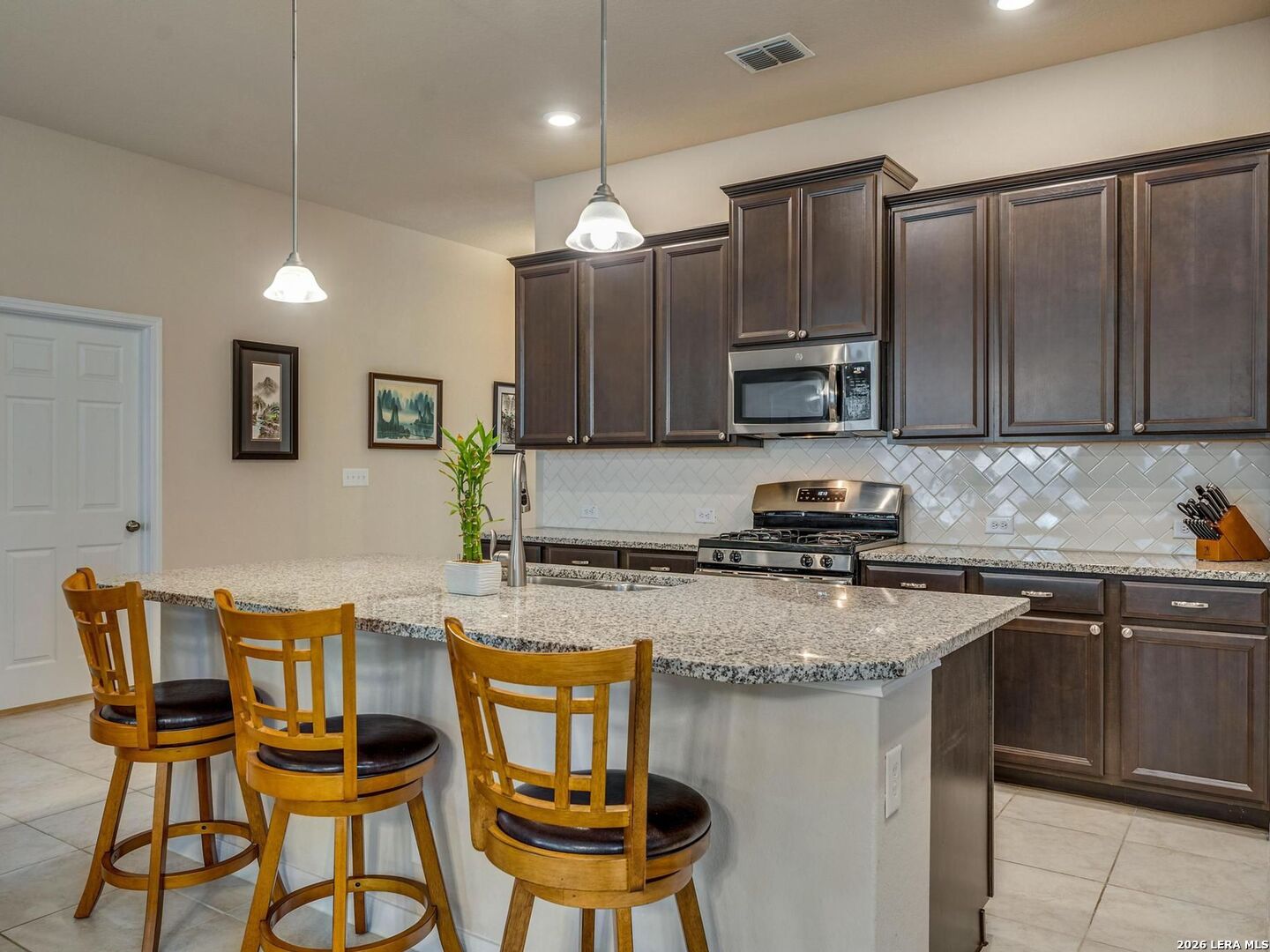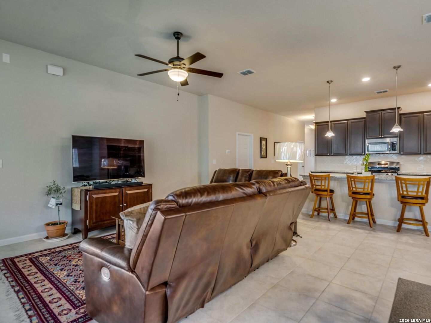 Located in the desirable Weston Oaks community, this beautifully maintained one-story David Weekley home feels like new. Offering 3 bedrooms and 2 full baths, the thoughtfully designed layout combines functionality with modern style. A welcoming front entry opens to a spacious foyer, with secondary bedrooms and a full bath positioned at the front of the home along with additional storage closets. A versatile dining space provides flexibility for entertaining, or can easily function as a home office, second living area, or playroom. The open-concept kitchen is designed for both everyday living and entertaining, featuring a gas cooktop, stainless steel appliances, upgraded cabinetry, and an oversized granite island that flows seamlessly into the living and breakfast areas. Large windows fill the space with natural light and overlook the expansive covered patio. Privately situated at the rear of the home, the primary suite offers a peaceful retreat with views of the fenced backyard. The ensuite bath includes a spacious walk-in shower, dual vanities with granite countertops, and a large walk-in closet. Enjoy outdoor living on the oversized covered patio with a gas hookup-perfect for grilling or relaxing. The extended garage includes a sprinkler system and water softener for added convenience. Ideally located for easy access to Lackland AFB, shopping, dining, and major highways. Residents of Weston Oaks enjoy fantastic amenities, including a community pool and playground.