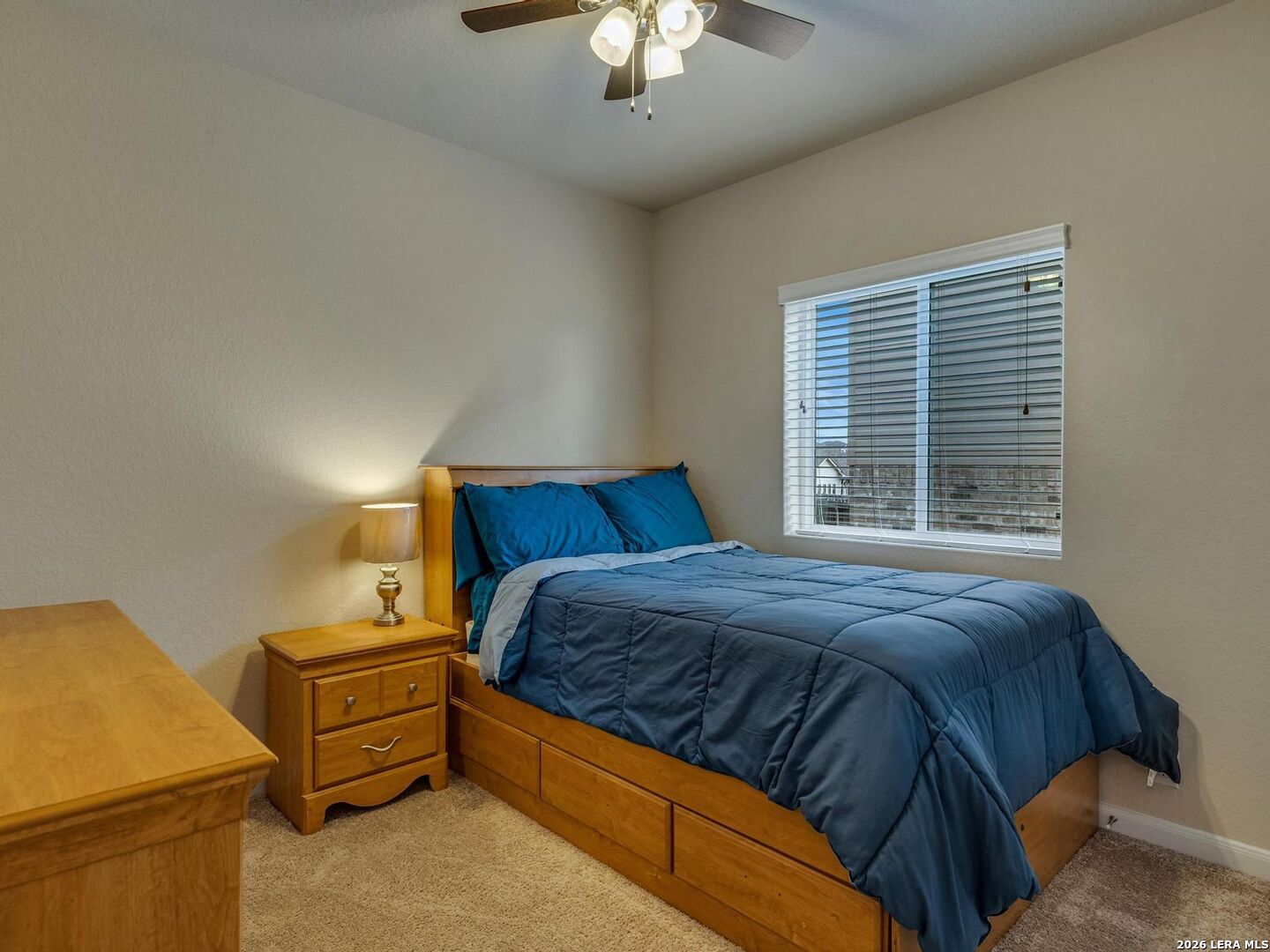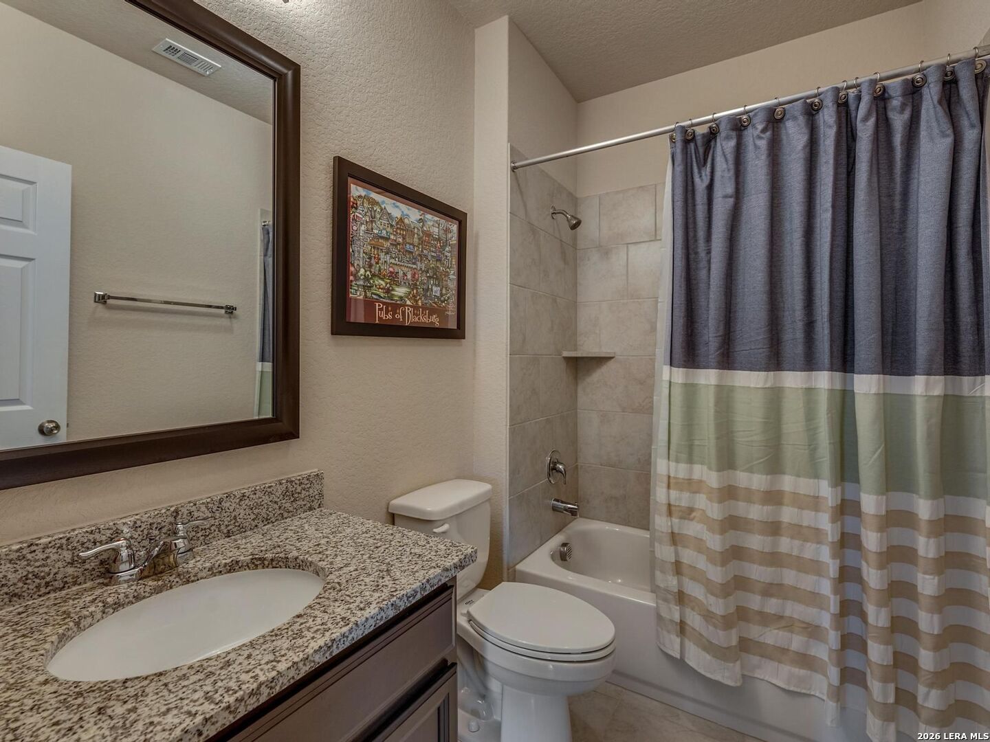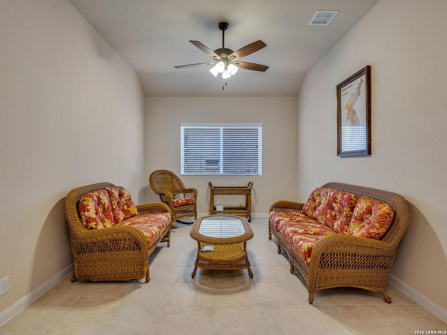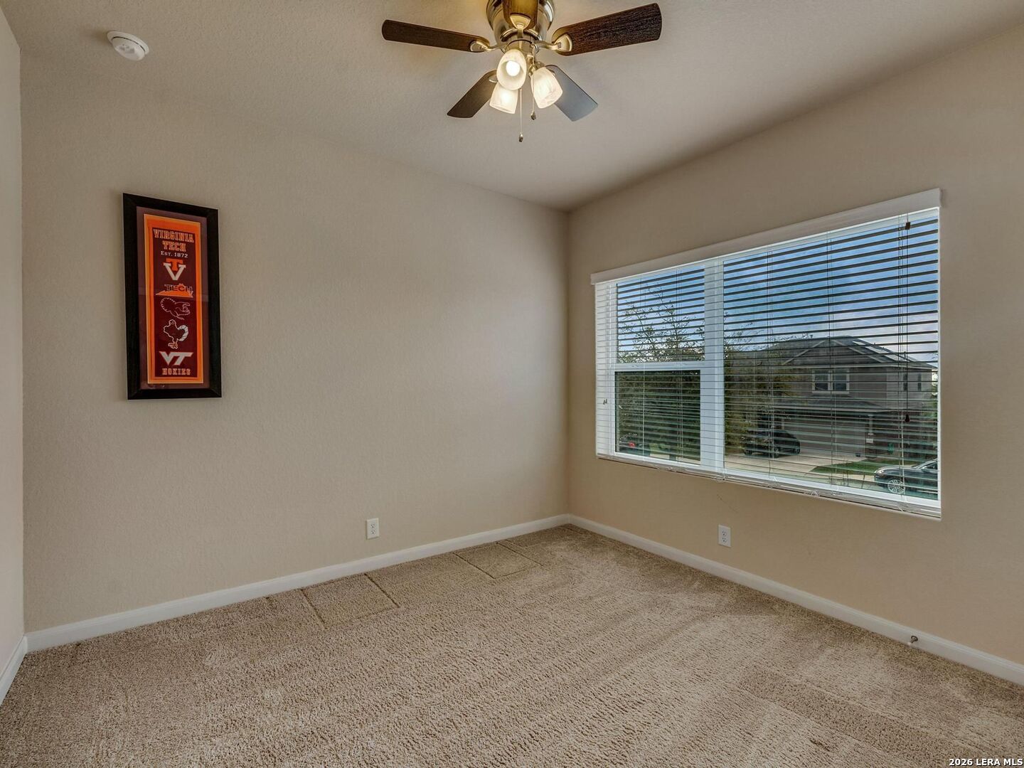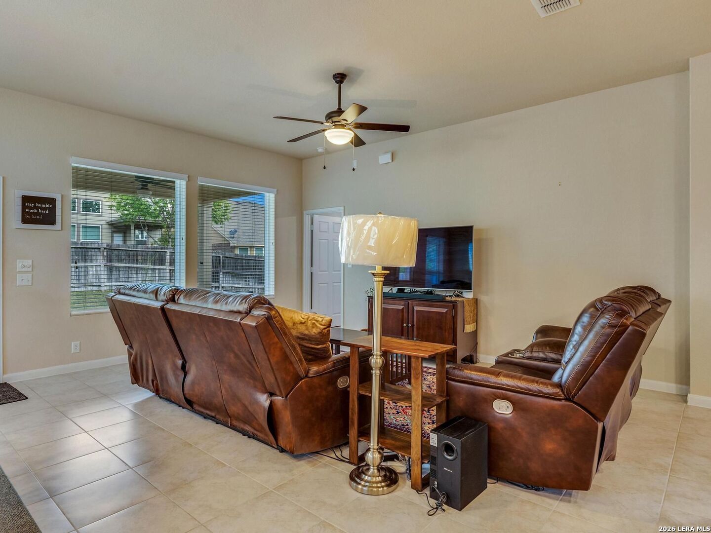 Located in the desirable Weston Oaks community, this beautifully maintained one-story David Weekley home feels like new. Offering 3 bedrooms and 2 full baths, the thoughtfully designed layout combines functionality with modern style. A welcoming front entry opens to a spacious foyer, with secondary bedrooms and a full bath positioned at the front of the home along with additional storage closets. A versatile dining space provides flexibility for entertaining, or can easily function as a home office, second living area, or playroom. The open-concept kitchen is designed for both everyday living and entertaining, featuring a gas cooktop, stainless steel appliances, upgraded cabinetry, and an oversized granite island that flows seamlessly into the living and breakfast areas. Large windows fill the space with natural light and overlook the expansive covered patio. Privately situated at the rear of the home, the primary suite offers a peaceful retreat with views of the fenced backyard. The ensuite bath includes a spacious walk-in shower, dual vanities with granite countertops, and a large walk-in closet. Enjoy outdoor living on the oversized covered patio with a gas hookup-perfect for grilling or relaxing. The extended garage includes a sprinkler system and water softener for added convenience. Ideally located for easy access to Lackland AFB, shopping, dining, and major highways. Residents of Weston Oaks enjoy fantastic amenities, including a community pool and playground.